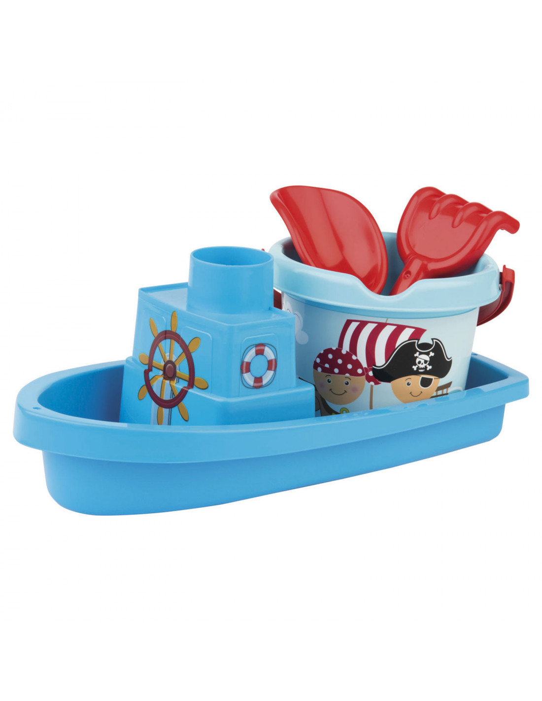 Deze complete strandset bevat alles wat jonge piraten nodig hebben voor een geweldig avontuur. De boot is gevuld met een emmer die is versierd met stoere piratenopdruk, een rode schep en een rode hark. Of ze nu op zoek zijn naar verborgen schatten, zandkastelen bouwen of gewoon plezier maken in het zand, deze set staat garant voor eindeloos speelplezier.