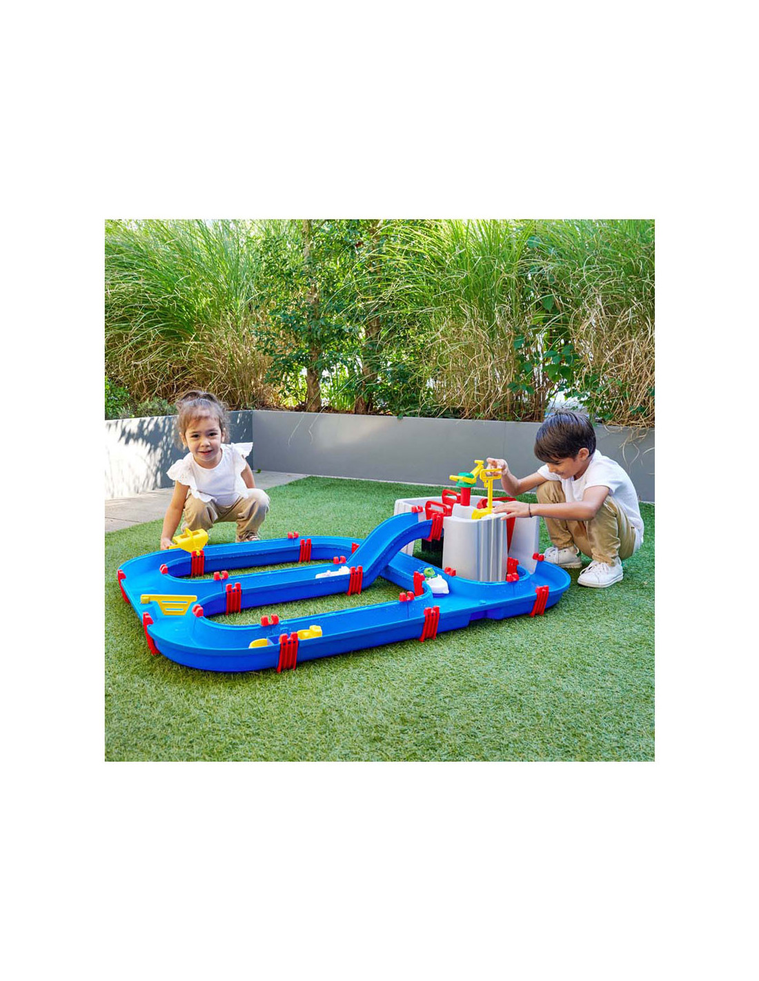 • Eenvoudig insteeksysteem - Met de bevestigingsclips en zelfklevende rubberen afdichtingen is het waterspeelstation in een handomdraai opgezet en kan het worden uitgebreid met andere AquaPlay-banen.