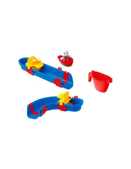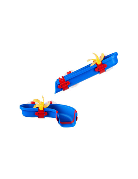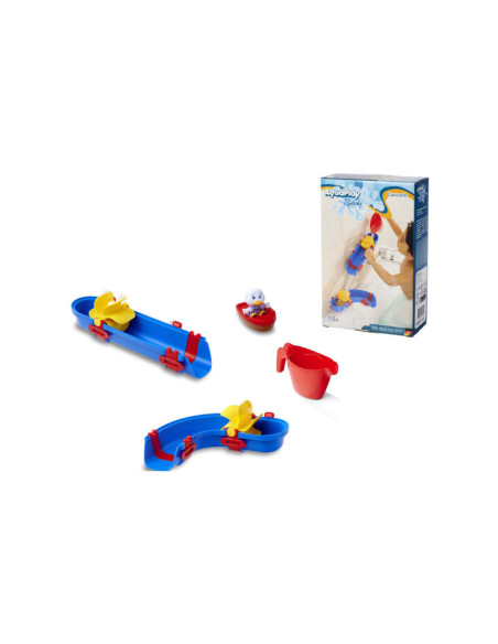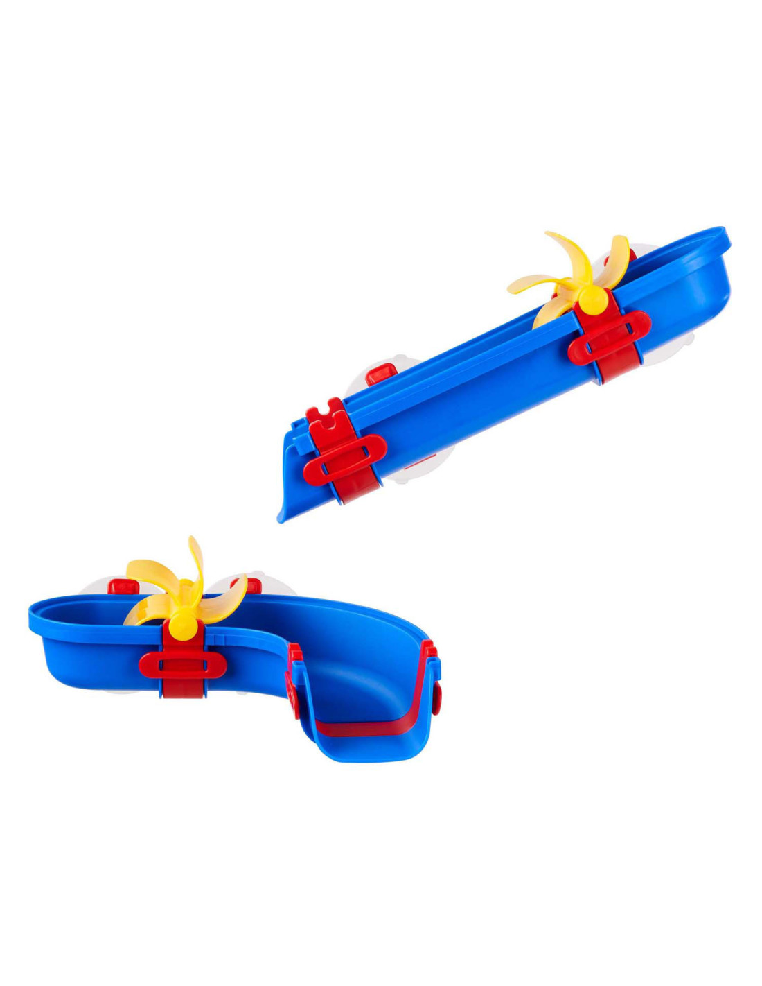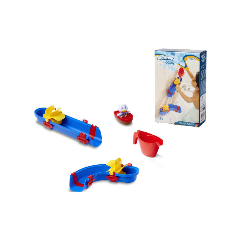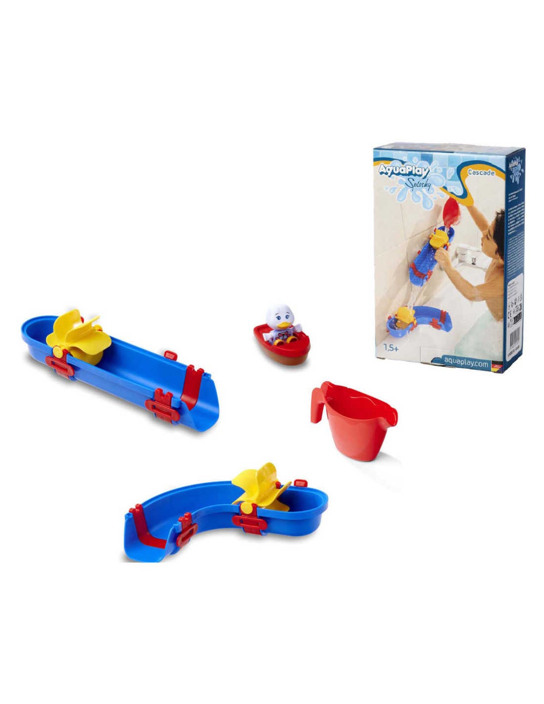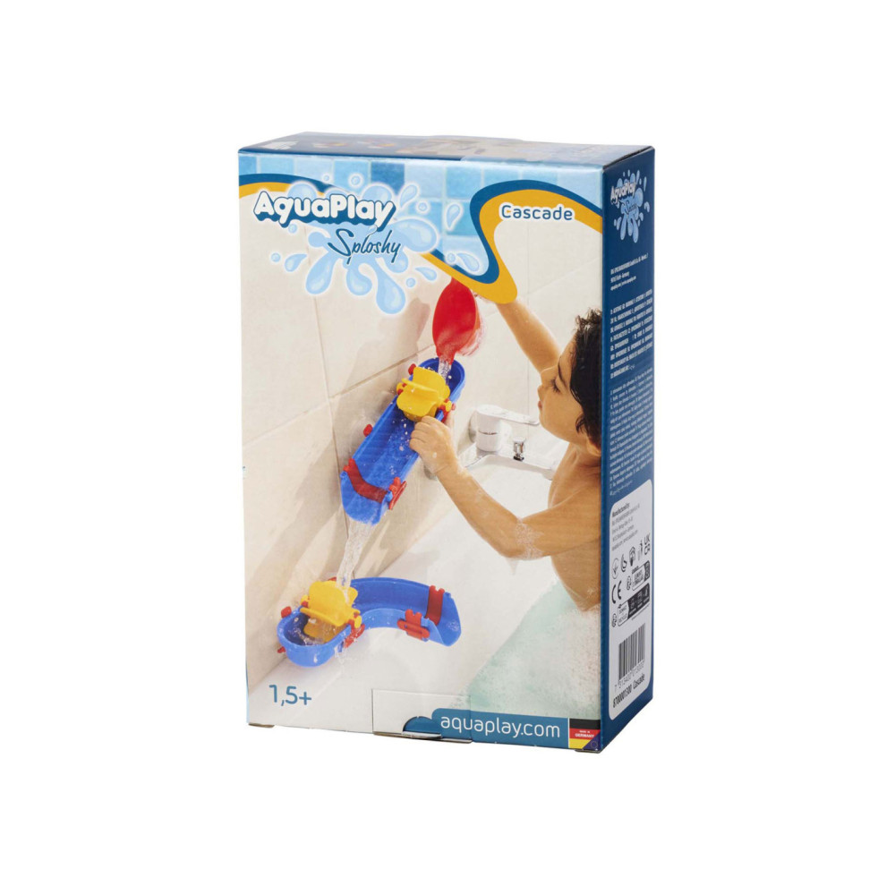 De AquaPlay Sploshy Cascade is een 2-delige waterbaan van 29 x 8 x 8 cm, geschikt voor kinderen vanaf 18 maanden. De set van 24 onderdelen bevat onder meer een waterglijbaan, gieter, figuur, boot en waterwielen, en is gemaakt van uv-bestendig kunststof. Dankzij de zuignappen is de baan eenvoudig te bevestigen aan bad of douchewand voor veelzijdig speelplezier.