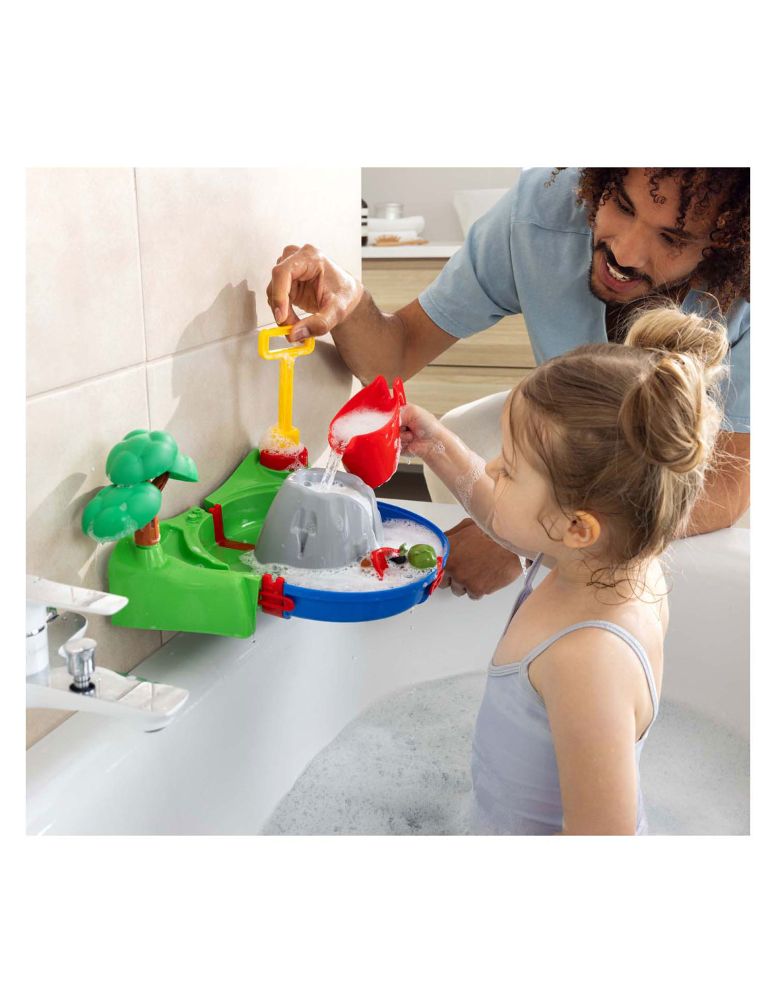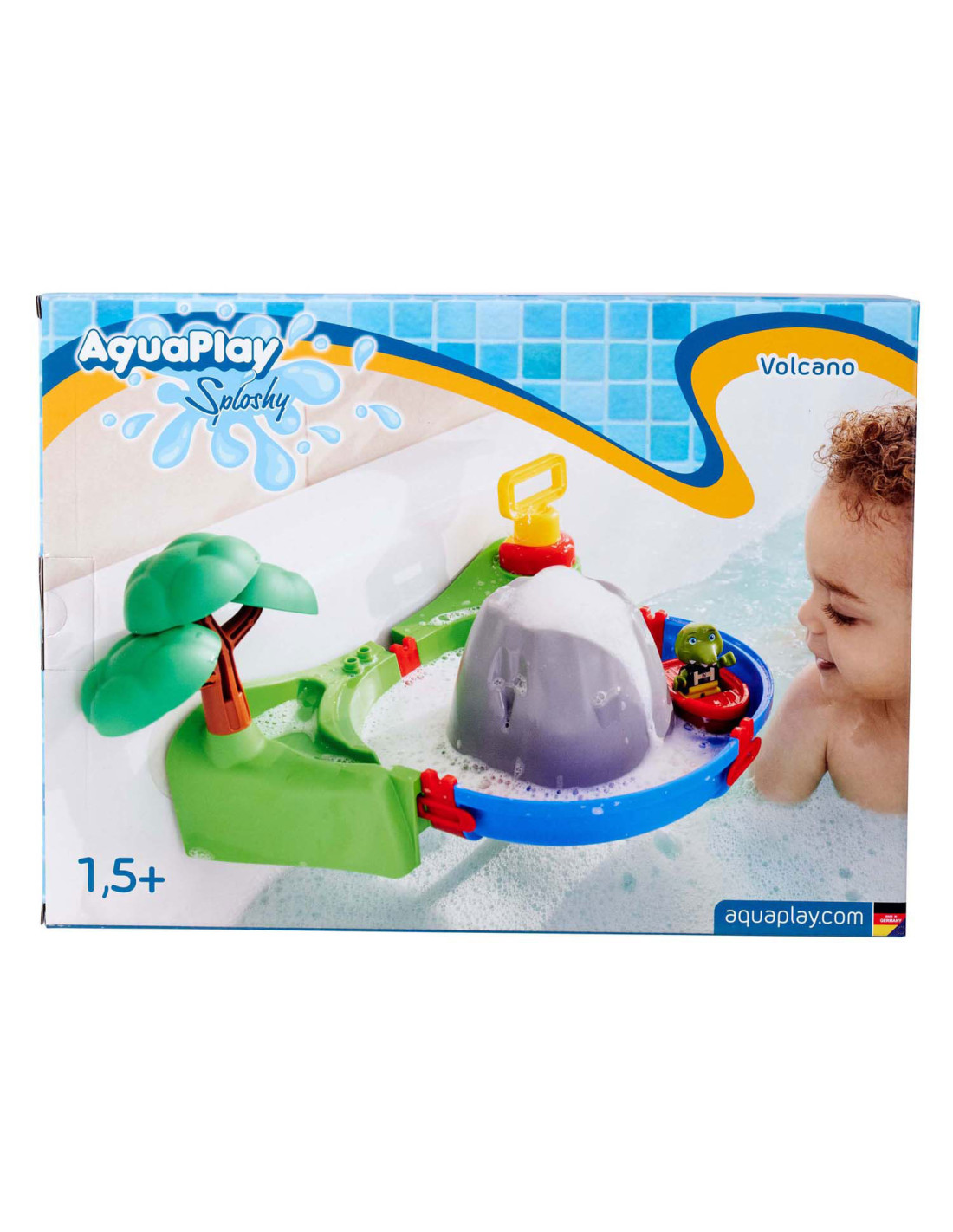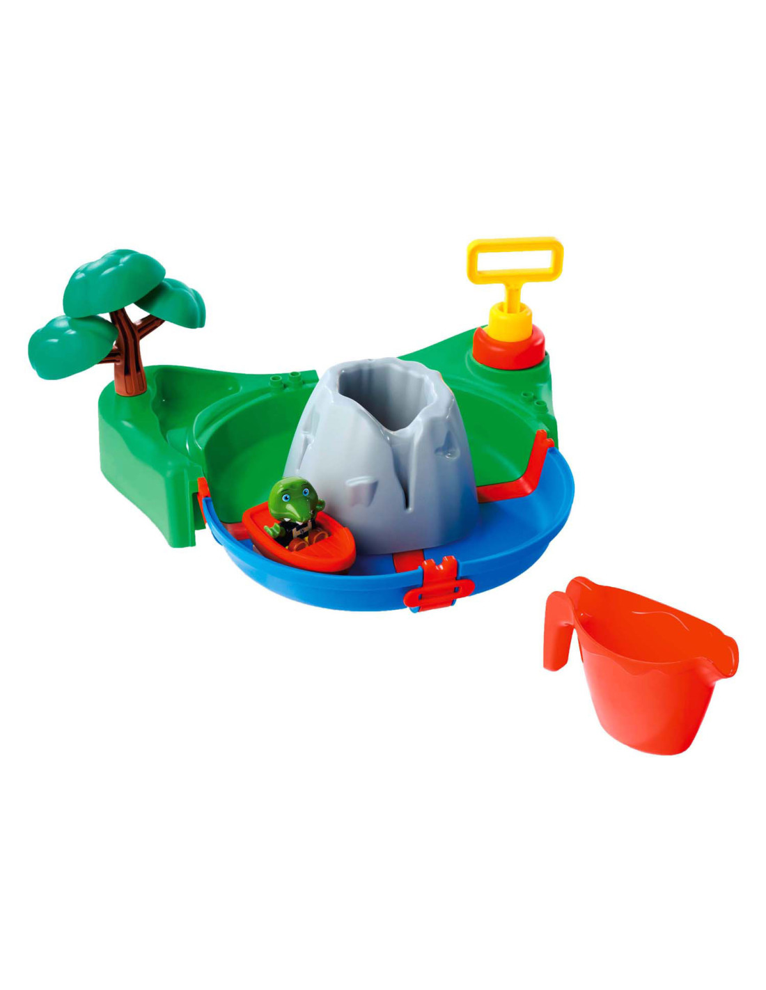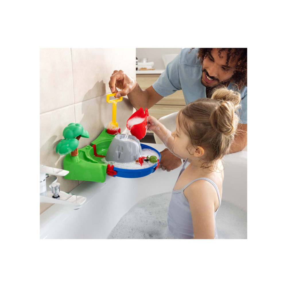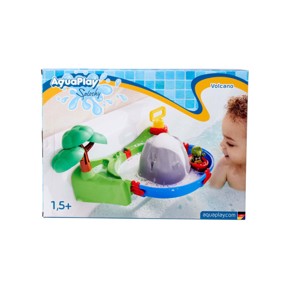 De AquaPlay Sploshy Vulkaan is een kleurrijke waterspeelset van 27 x 29 x 20 cm met schuimmachine, luchtpomp, waterbaan en meertje. Kinderen vanaf 18 maanden maken zelf schuimlava en laten het water stromen in de meegeleverde baan. De set van uv-bestendig kunststof bevat accessoires zoals een gieter, boom, boot en Sven de krokodil.