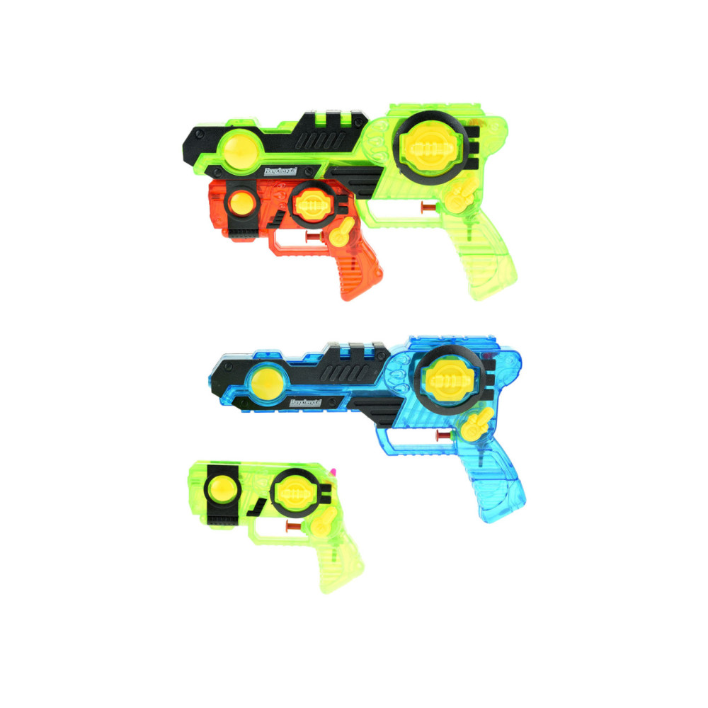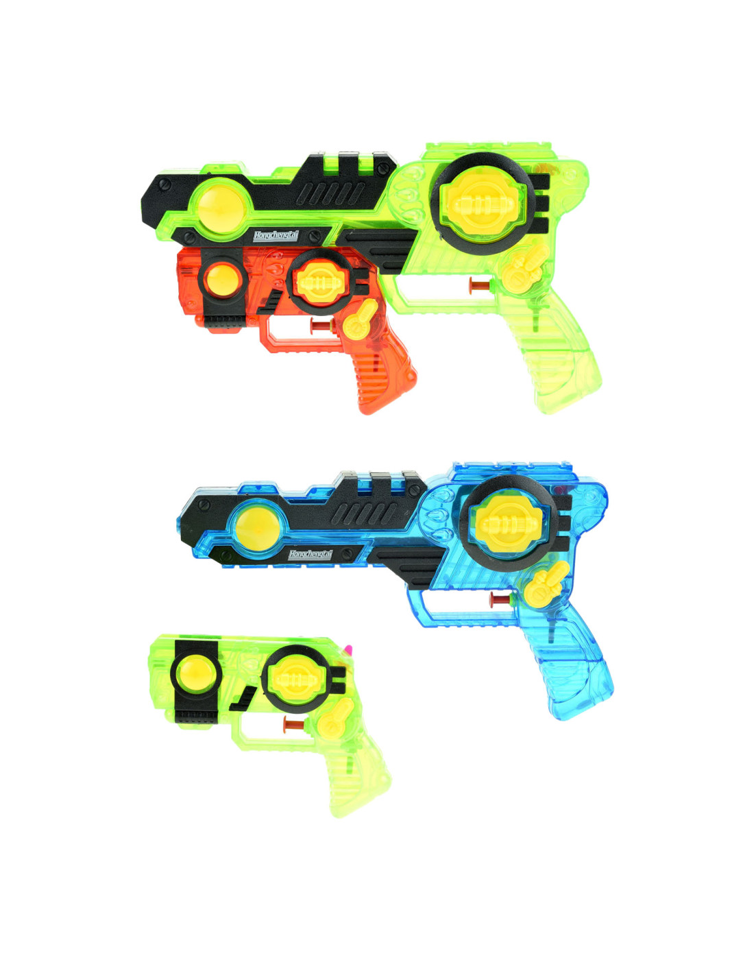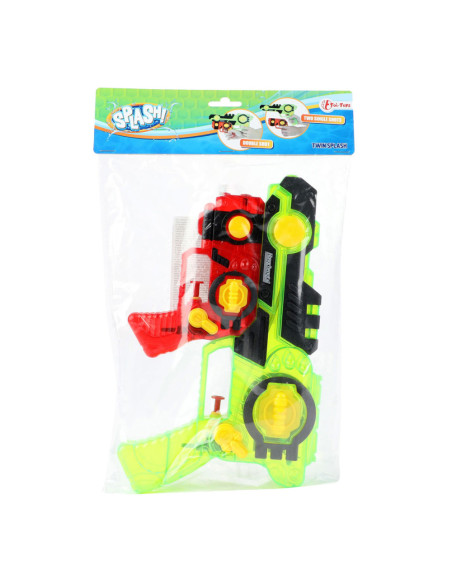 Duo waterpistool set met een groot waterpistool en een klein waterpistooltje, die zowel in 2 handen als 1 hand te gebruiken zijn.