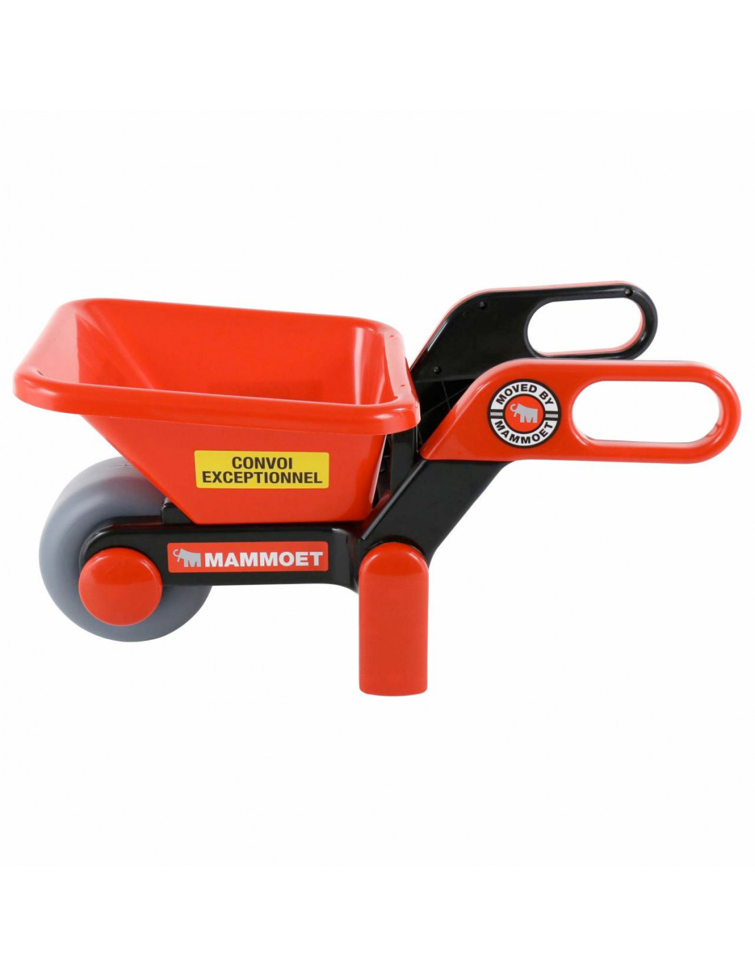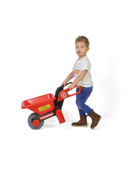 Vervoer in deze stevige Mammoet kruiwagen diverse spulletjes zoals je speelgoed, maar ook zand of stenen. Het grote wiel zorgt voor een stabiele wegligging en met de handvatten houd je de kruiwagen stevig vast. De rood/zwarte kleur zorgt voor een stoer uiterlijk!