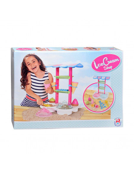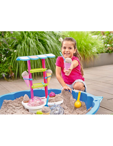 Inclusief verschillende accessoires zoals vier hoorntjes, twee bakjes, een ijslepel, twee ijs-zandvormen en vier lepeltjes, biedt deze ijskraam alles wat je nodig hebt om de lekkerste zandijsjes te maken. Laat je kinderen hun eigen creaties bedenken en zich een echte ijsverkoper voelen terwijl ze spelen en verkopen aan hun vrienden en familie.