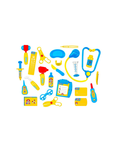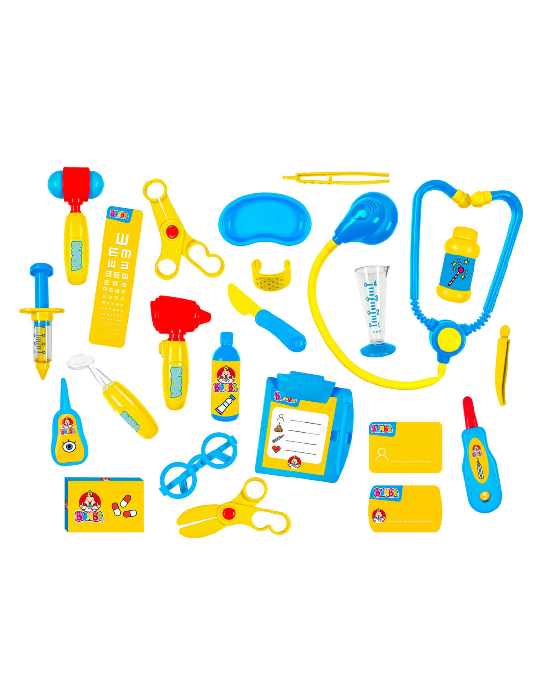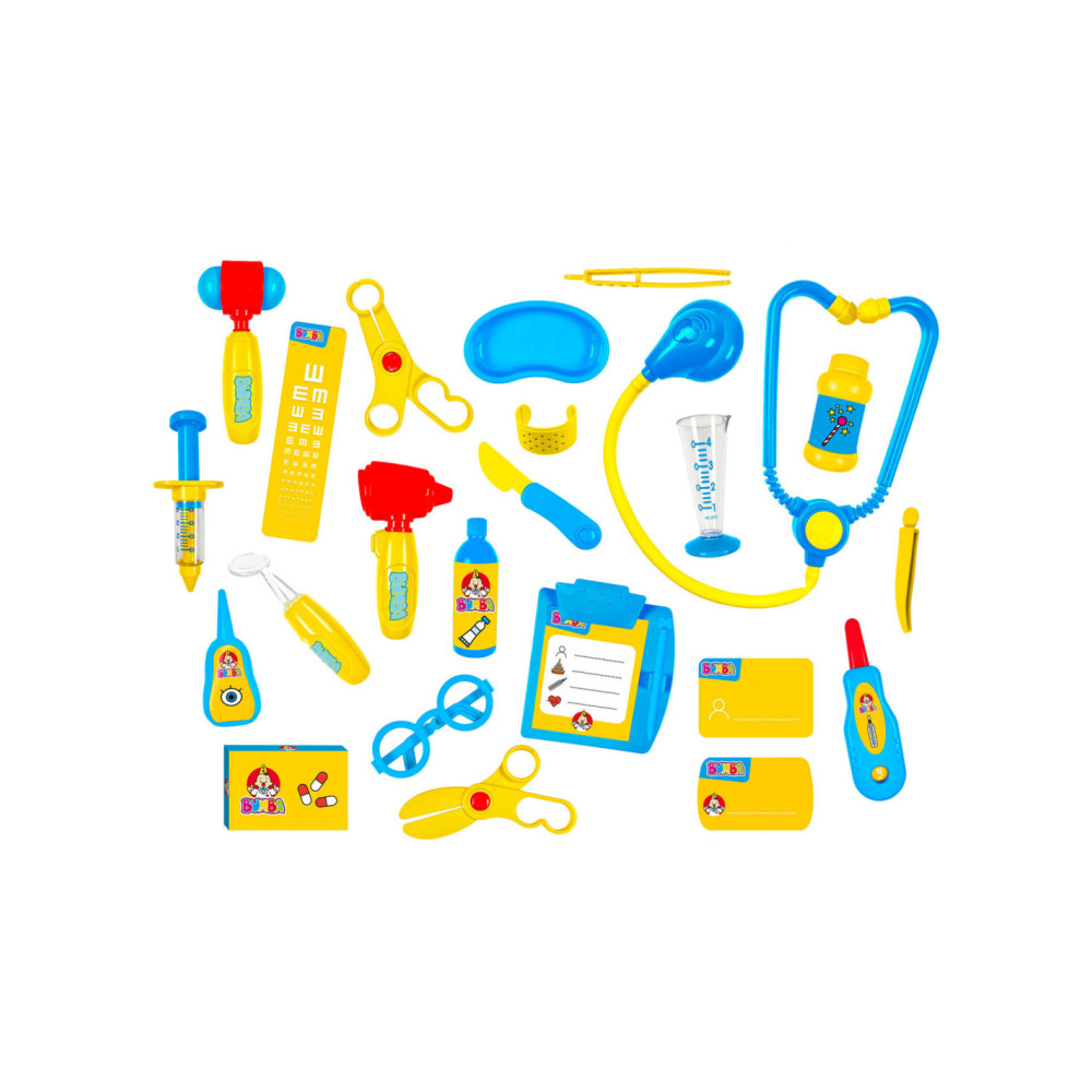 De 23-delige dokterskoffer van Bumba bevat alles wat een kleine dokter nodig heeft om de spannende wereld te ontdekken van een fantasierijk rollenspel: een stethoscoop, thermometer, een spuitje, reflexhamer, pillendoosjes, een dokterspasje en zoveel meer! Dit handige dokterskoffertje is ideaal om overal mee naartoe te nemen en stimuleert de ontwikkeling van essentiële vaardigheden, waaronder creativiteit, empathie en probleemoplossend denken. Bovendien is dit speelgoed gemaakt van kwalitatief en duurzaam materiaal dat voldoet aan de strengste veiligheidsnormen.