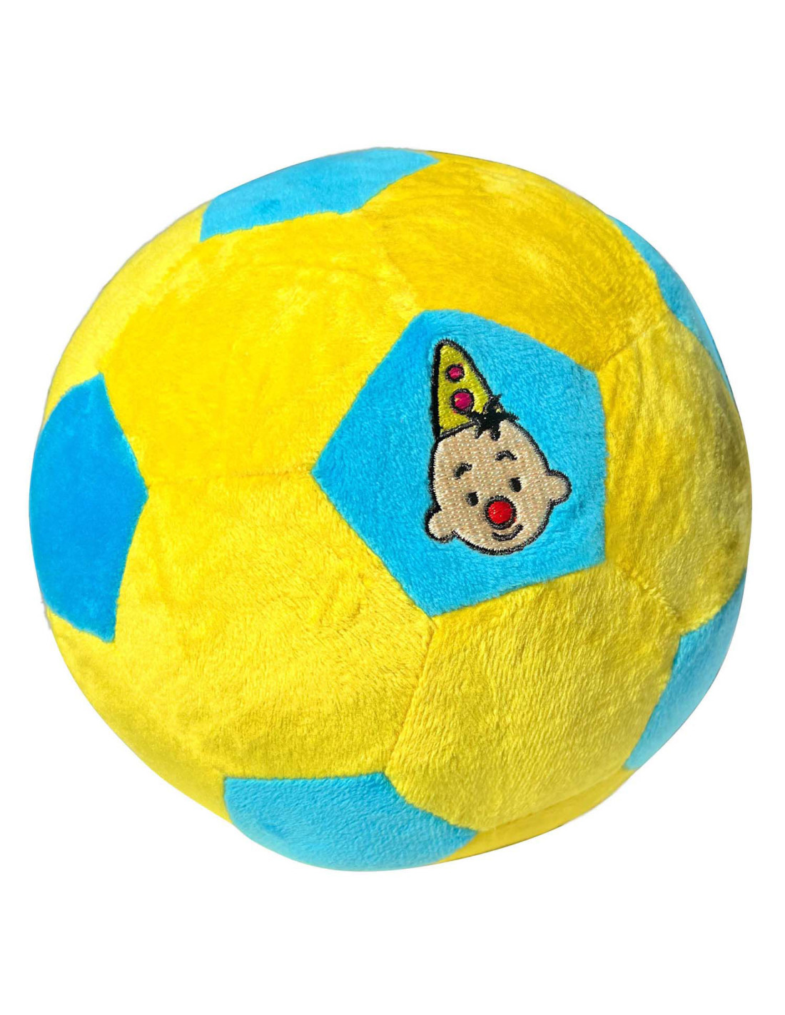 Pluche Bumba voetbal in geel en blauw.