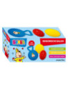 Deze unieke set van drie sensorische ballen bevordert de fijne en grove motoriek en werkt in op de zintuigen. De bal met handvat stimuleert het grijpen en de balletjes met uitdagende texturen zorgen voor de ontwikkleing van motorische en manuele vaardigheden.