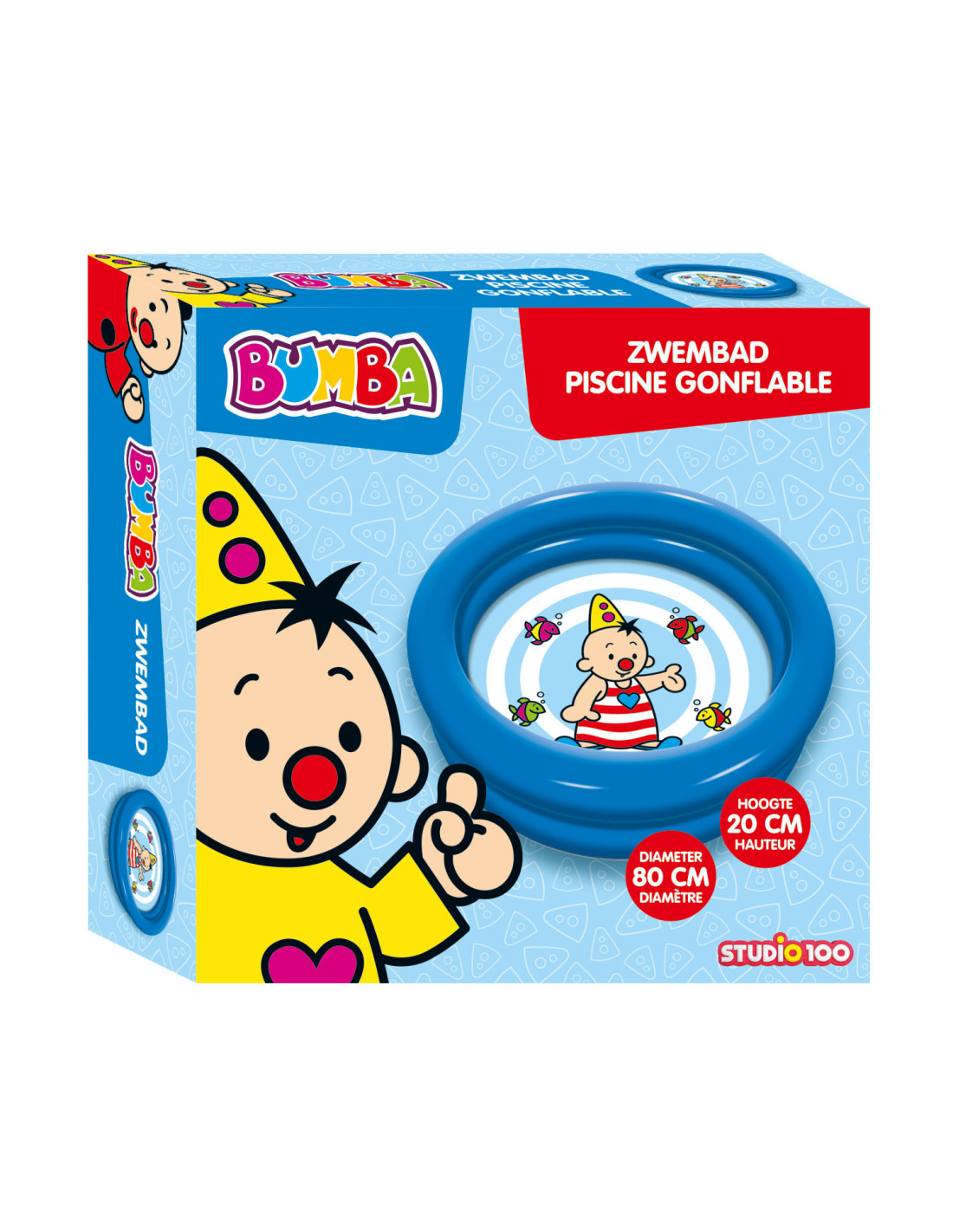 In het Bumba zwembad wordt spetteren en spatteren een echt feestje. Deze 2-rings zwembad heeft een diameter van 80 cm en is 20 cm hoog. Op de bodem van het zwembad staat Bumba afgebeeld met rondom hem visjes. Het maximale draaggewicht van het zwembad is 25 kg. Het Bumba zwembad kan opgeblazen worden met een handpomp (pomp niet inbegrepen) en heeft een veiligheidsventiel. Inclusief reparatiemateriaal.