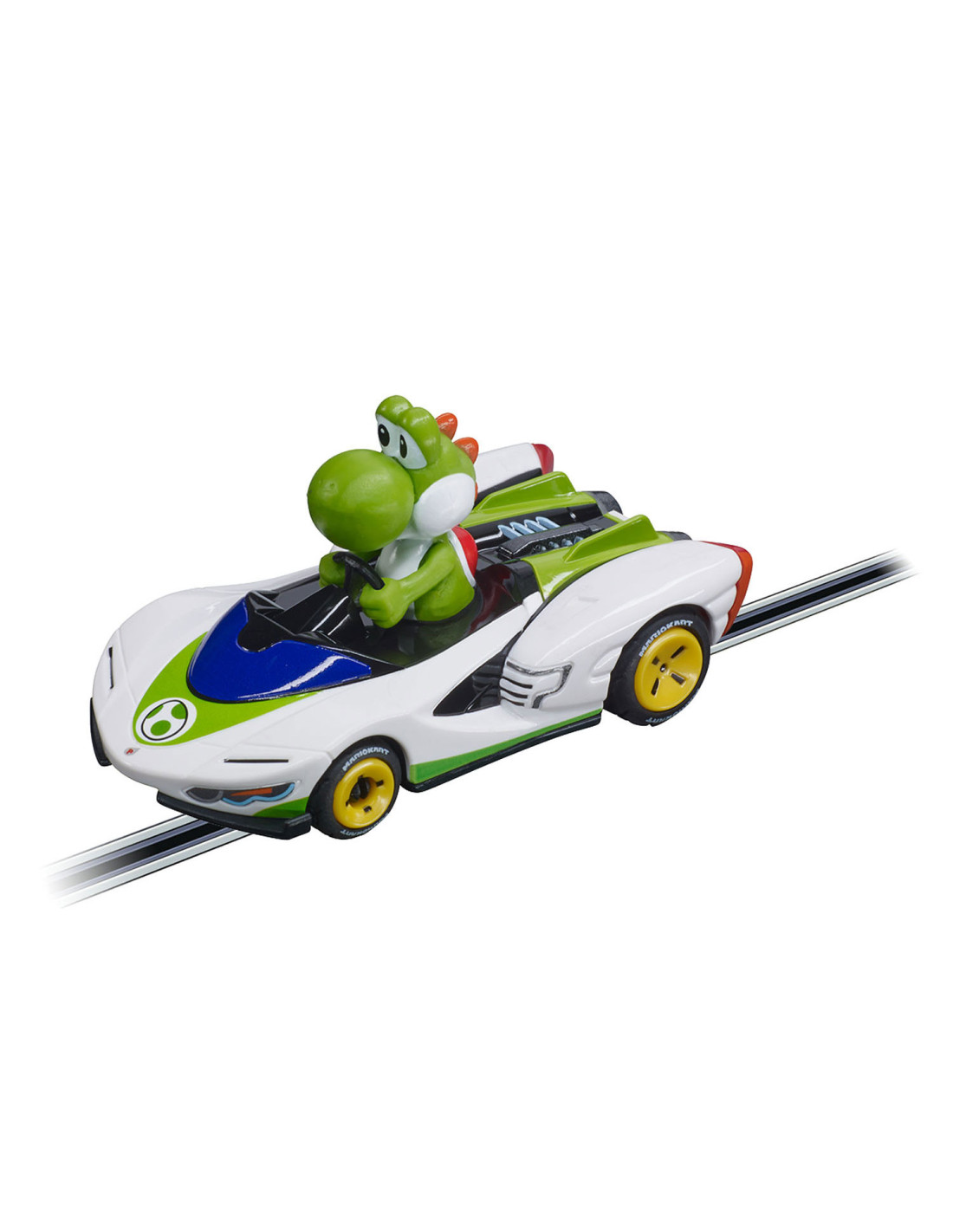 P-Wing Yoshi Kart van Carrera. De klassieke auto van Yoshi is omgetoverd tot een supersnelle raceauto. De raceauto is geschikt voor alle Carrera GO!!! racebanen.