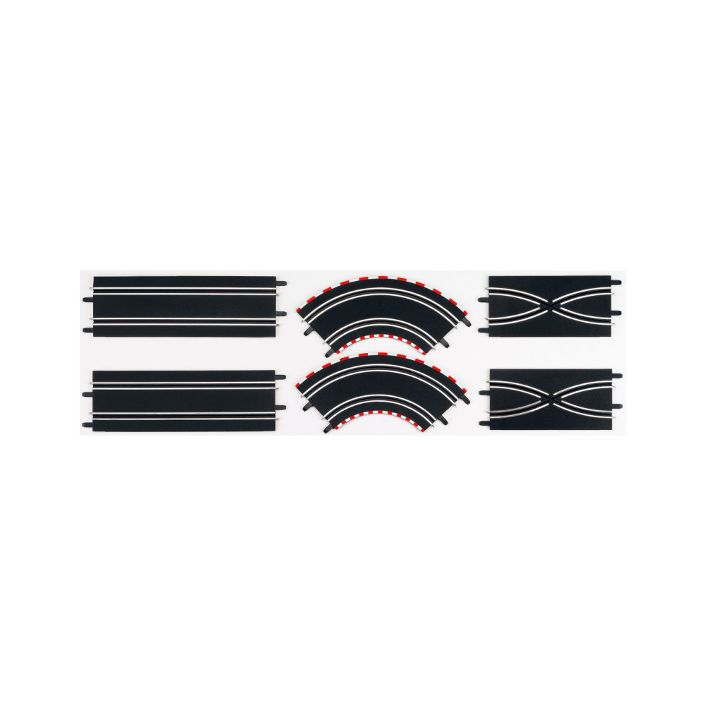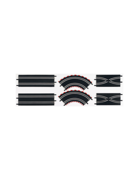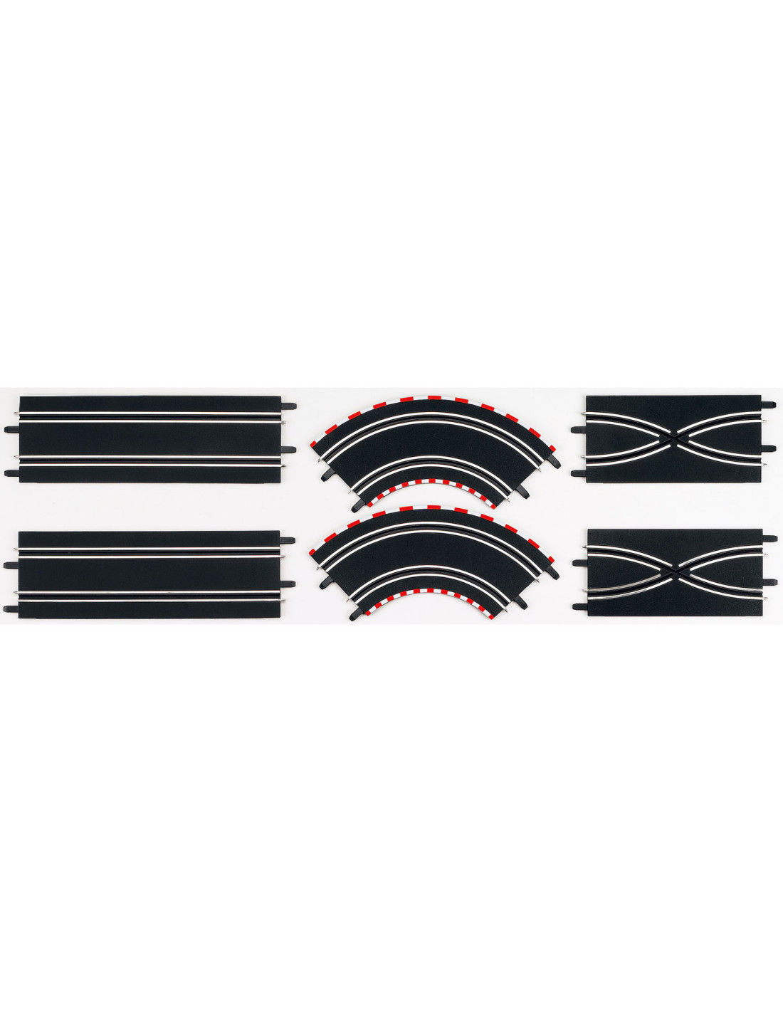 Uitbreidingsset 1 voor Carrera GO Racebaan. Compleet met 2 standaard rechten van elke 34,2 cm, 2 spoorwissels van elk 23 cm en 2 bochten van 90 graden. Totale lengte 182 cm. Geschikt voor Go en Digital 143.