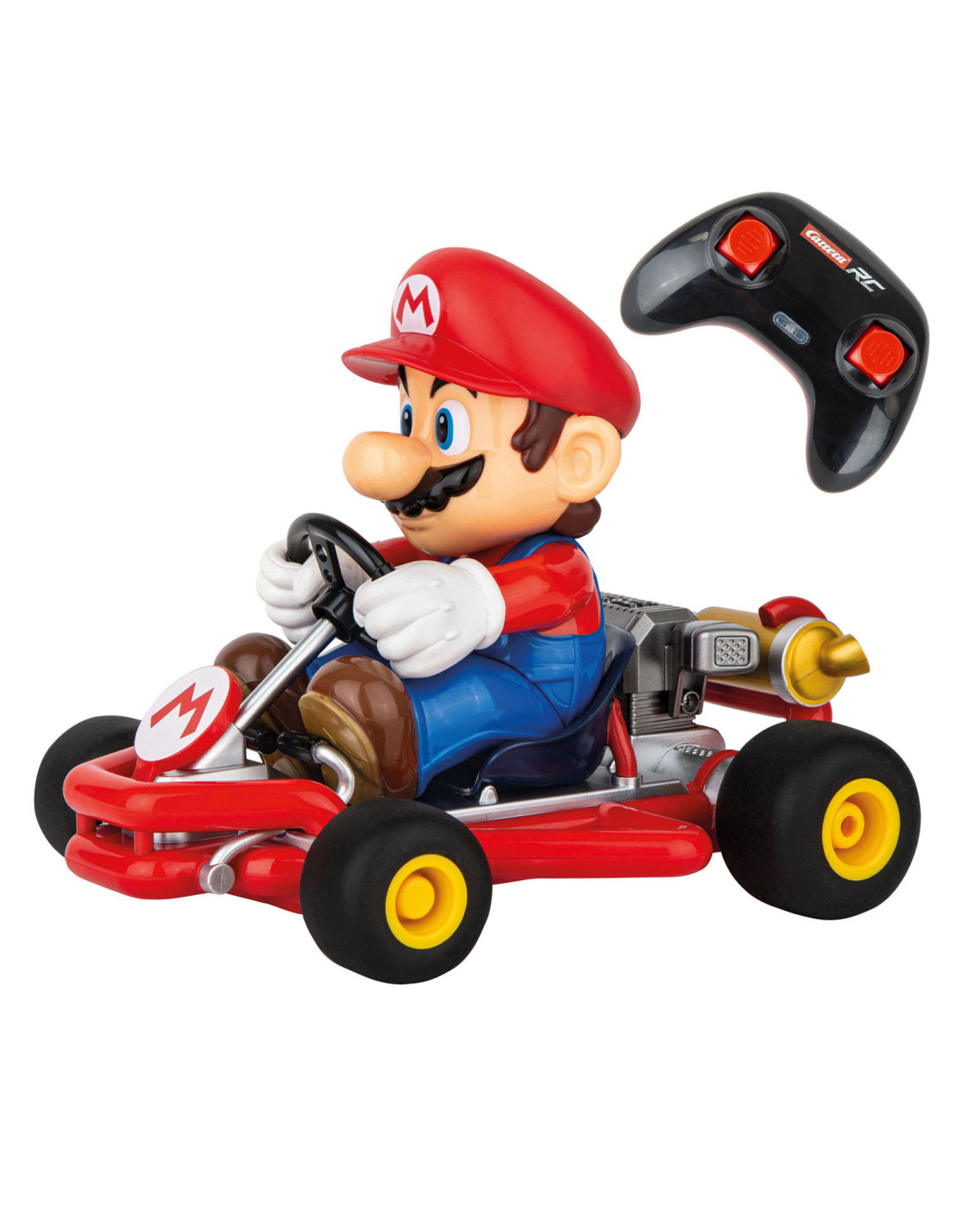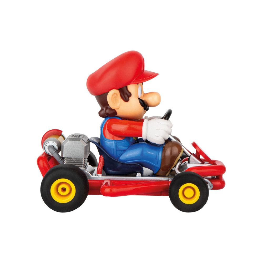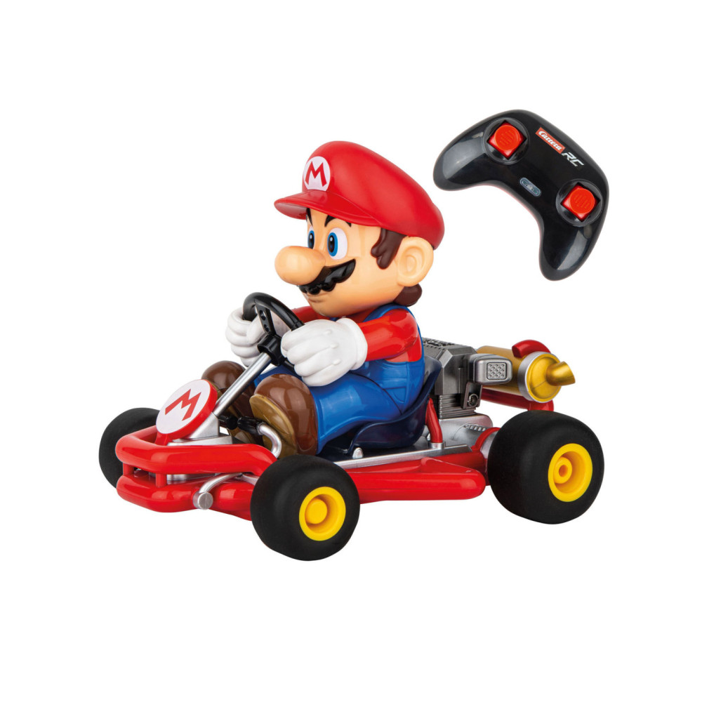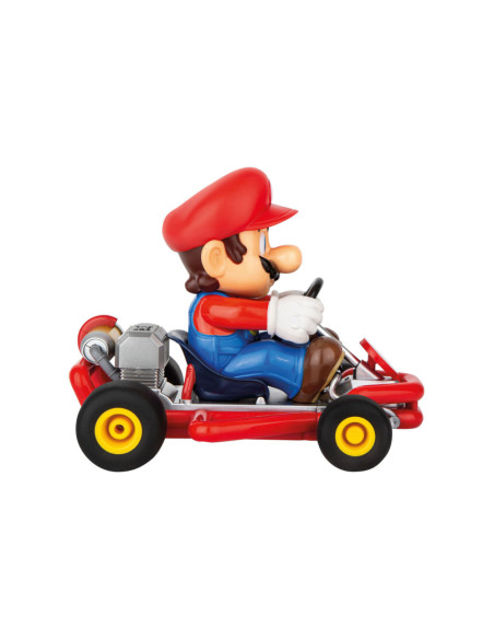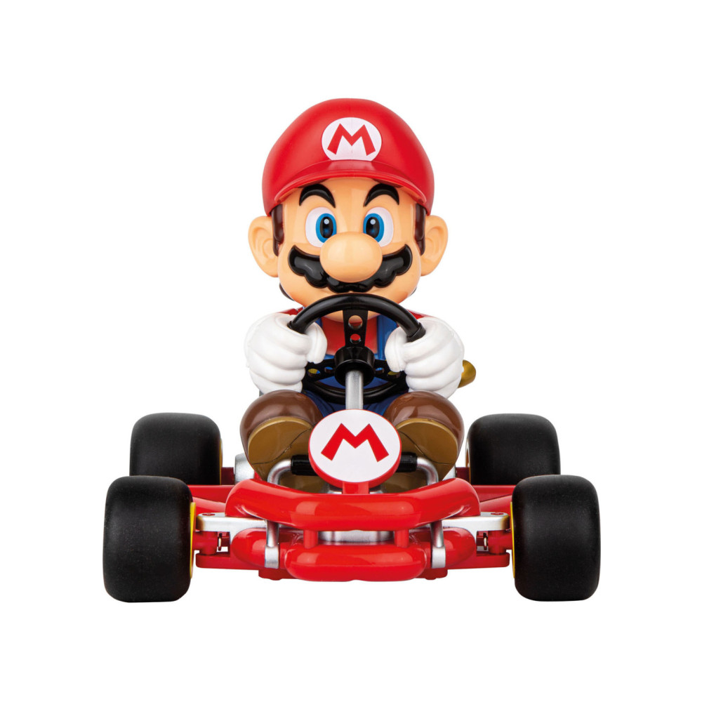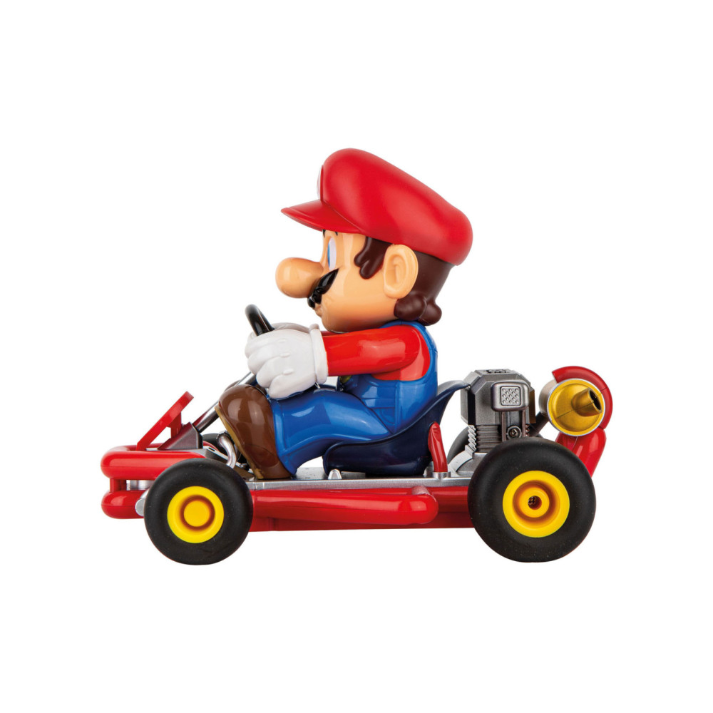 "Mario is klaar om te racen in zijn gestroomlijnde 2,4 GHz Pipe Kart. De radiografisch bestuurbare auto op een schaal van 1:18 heeft pneumatische banden, volledige stuurfuncties, en kan tot 9 km/u versnellen op verschillende parcoursen en terreinen. Geef gas en race nonstop met Mario tot wel 30 minuten op een enkele batterijlading van 50 minuten met de meegeleverde 3,2V oplaadbare LiFePO4-batterij. Mario is klaar om te racen met de inbegrepen batterijen voor de afstandsbediening. Geschikt voor kinderen vanaf 6 jaar, zullen zowel kinderen als volwassenen eindeloos plezier en opwinding beleven met deze RC-auto."