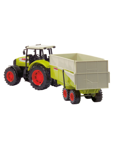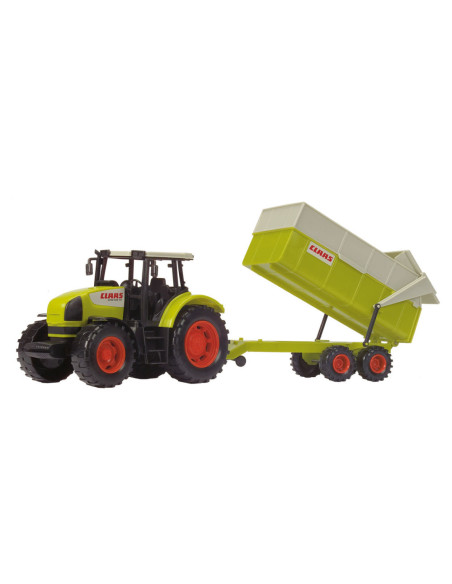 Stoere CLAAS Ares tractor met aanhanger. De beweegbare kiepbak kan op en neer bewogen worden.