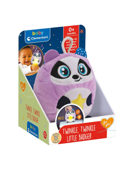 Deze kleine das is een nachtlampje en knuffel om het kind te helpen ontspannen en in te slapen. Alle personage van de lijn Twinkle Twinkle lichten op en activeren ontspannende melodieën en witte ruis die ontwikkeld zijn om het inslapen van het kind te bevorderen. Het warme licht creëert een plezierige omgeving voor het kind, terwijl geluiden en melodieën aanmoedigen tot ontspanning. Speelgoed voor baby's vanaf 0 maanden, maar ook voor kinderen vanaf 6 maanden wanneer ze zelfstandig gaan inslapen. Wasbaar in de wasmachine nadat de elektronische module is verwijderd. Ontdek alle personages van de lijn Twinkle Twinkle van Baby Clementoni for you: Little Sheep, Little Wolf, Little Fox en Little Badger.