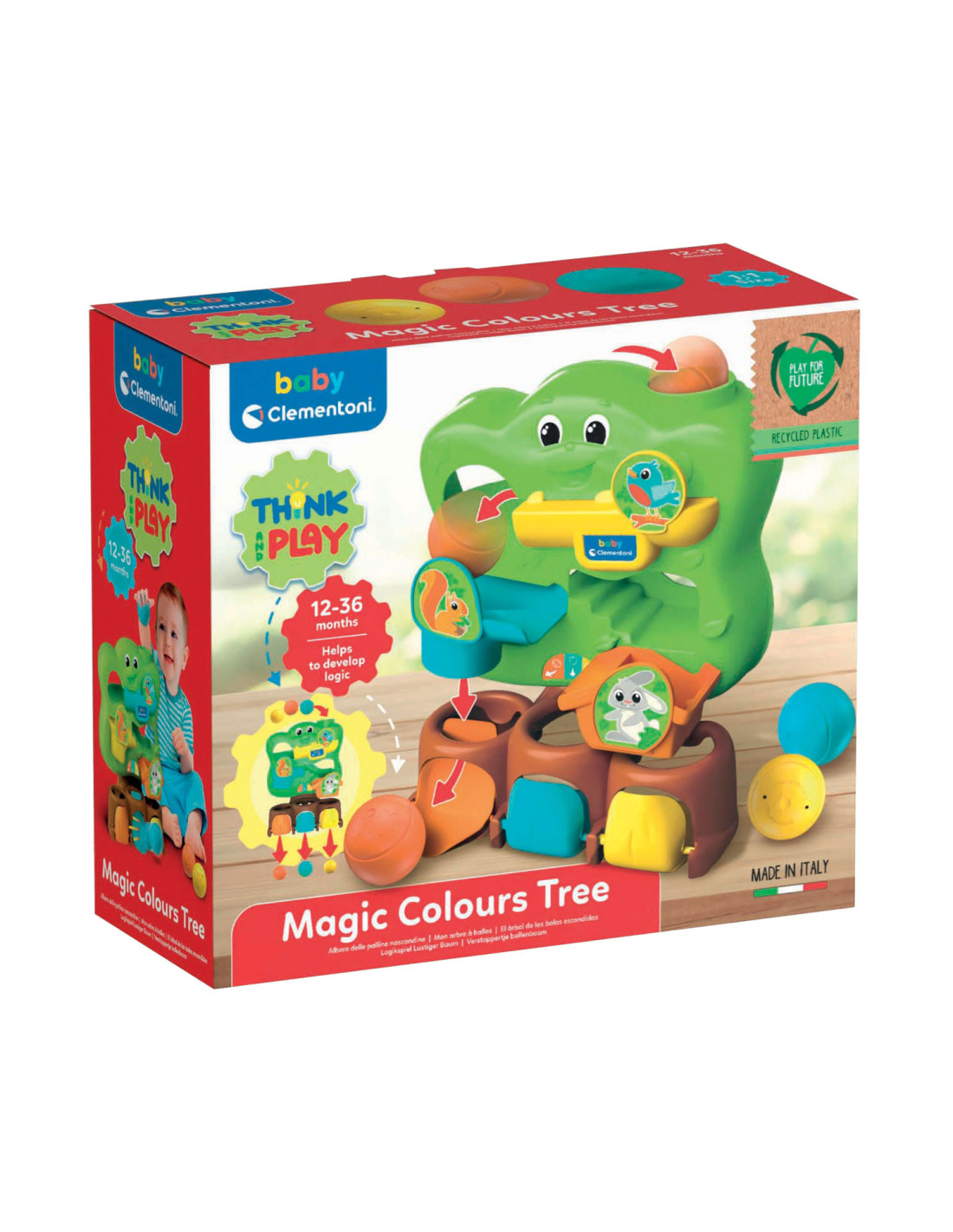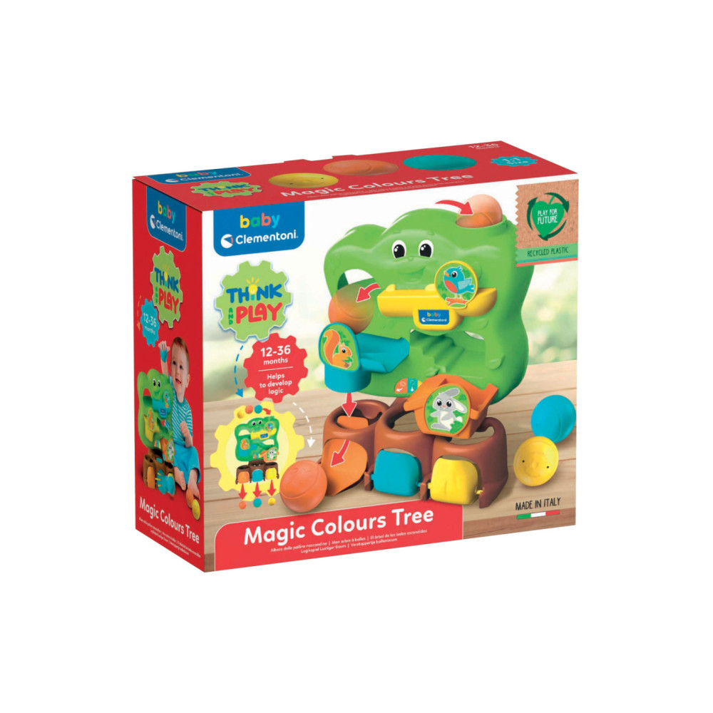 De lijn Think & Play stimuleert het logisch denken! Een mooie ballenbaan, ontworpen in Italië en gemaakt van gerecycled plastic in lijn met de Play for Future-filosofie. De drie ballen, elk van een andere grootte, komen in de stam en zijn daarna als bij toverslag te vinden achter het deurtje van dezelfde kleur. Het traint de fijne motoriek (de bal pakken, de deurtjes openen), de oog-handcoördinatie (de ballen in het gat doen) en het logisch denkvermogen. Een vrolijk, kleurrijk en levendig ontwerp, dankzij de vriendelijk uitziende boom en zijn blije vriendjes, de vogeltjes.