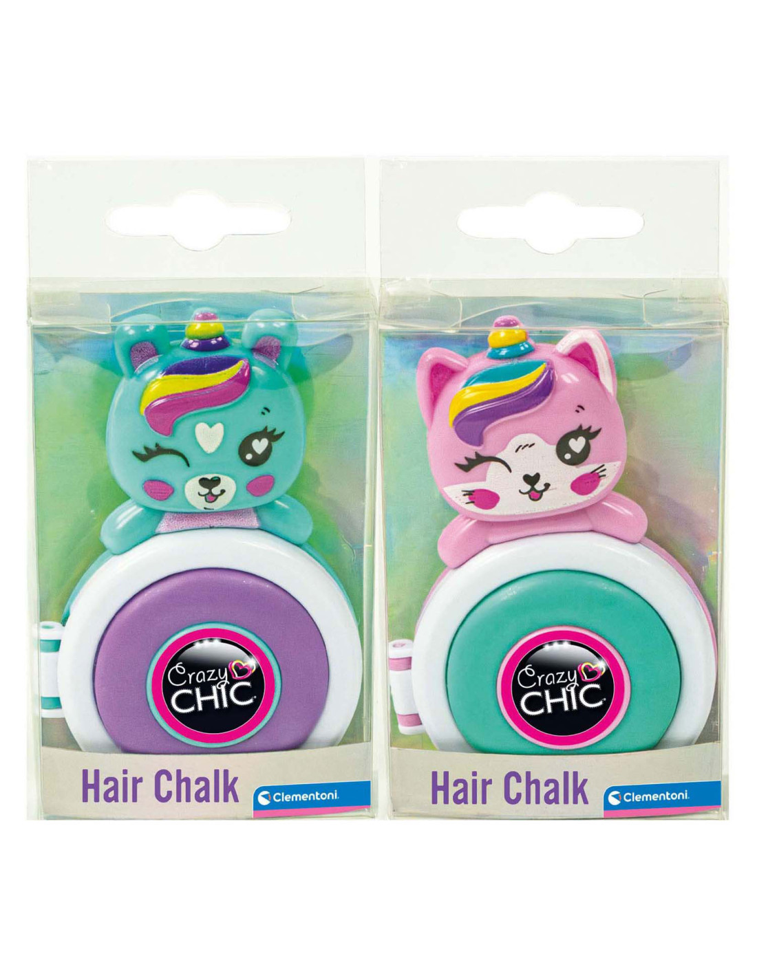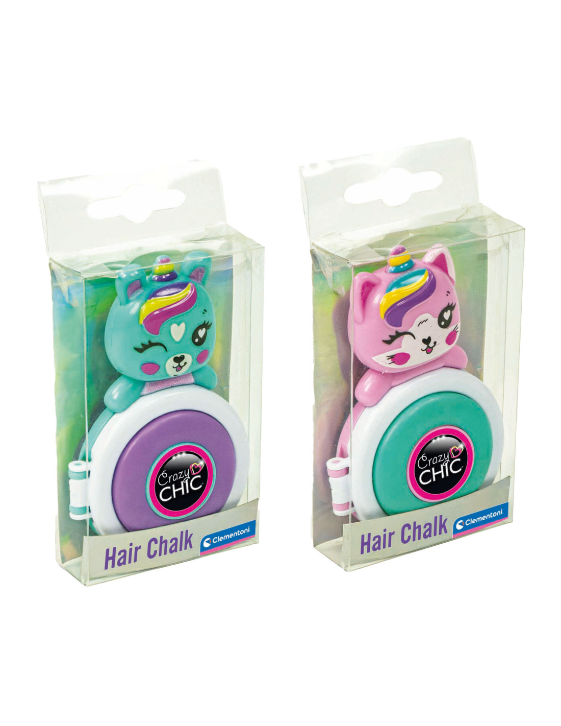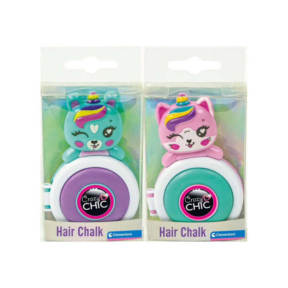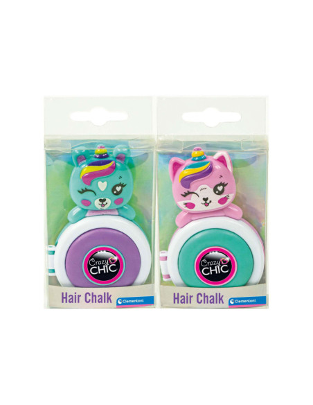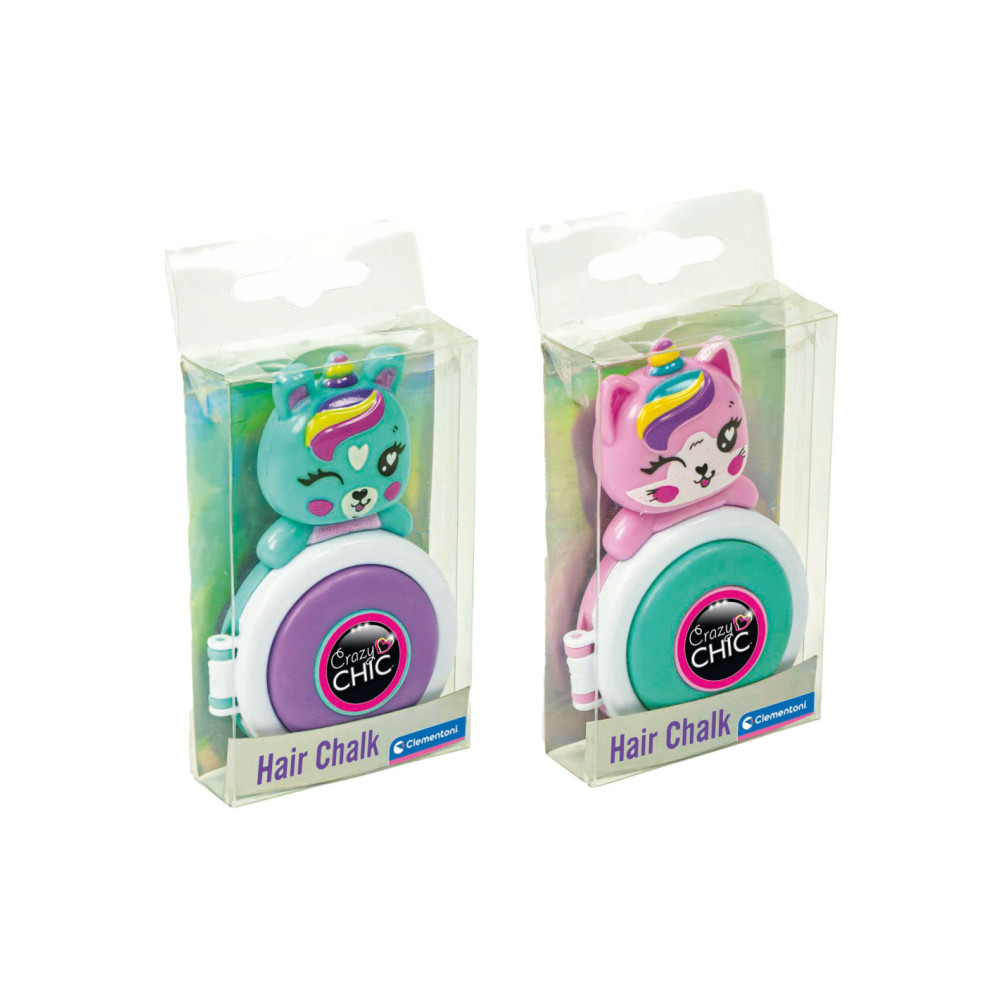 Kleur je haar met het nieuwe Crazy Chic-speelgoed: gekleurd poeder om op je lokken aan te brengen voor perfecte highlights. Steek een haarlok in het schijfje van de basis tot de punt. Het schijfje en het poeder kleuren je haar. Donkerblauw, paars, helblauw en roze zijn de verschillende kleuren van de verschillende eenhoorns die kenmerkend zijn voor de Lovely-lijn. De make-up is getest en veilig, niet allergeen en niet giftig, zodat kinderen veilig kunnen spelen. Ze is gemakkelijk te verwijderen met water. Creatief speelgoed met producten voor het haar, aanbevolen voor kinderen vanaf 6 jaar.