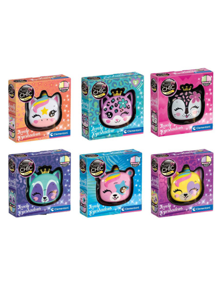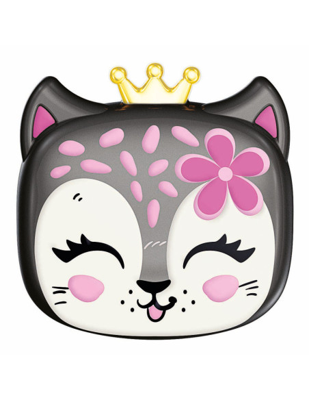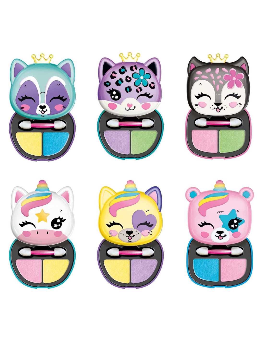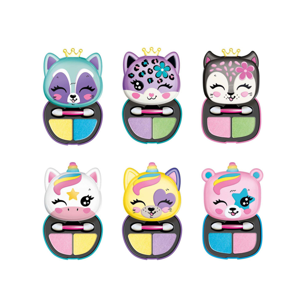 Een mini make-updoosje in de vorm van een schattige puppy, met een compact formaat om altijd mee te kunnen nemen. Het doosje bevat twee kleuren oogschaduw en een applicator. Elke schattige puppy draagt een gouden kroontje of een kleurige hoorn, net als de andere puppy's van de serie, leuk om allemaal te verzamelen. Het doosje is ontworpen om kleine meisjes te veroveren! De make-up in het doosje is getest om volkomen veilig te kunnen spelen en is eenvoudig met water schoon te maken Ideaal vanaf 6 jaar