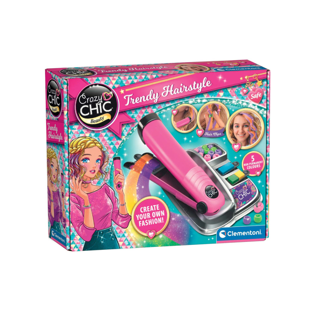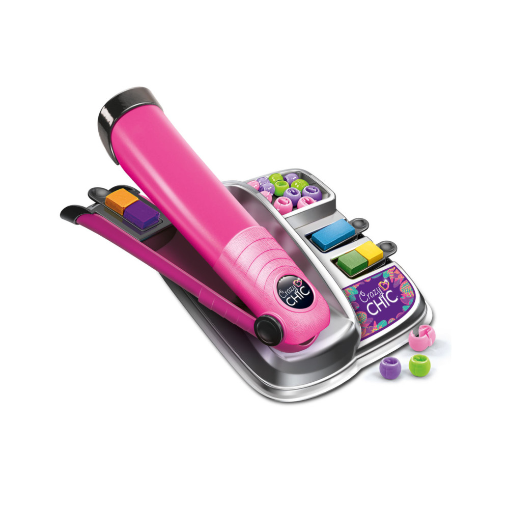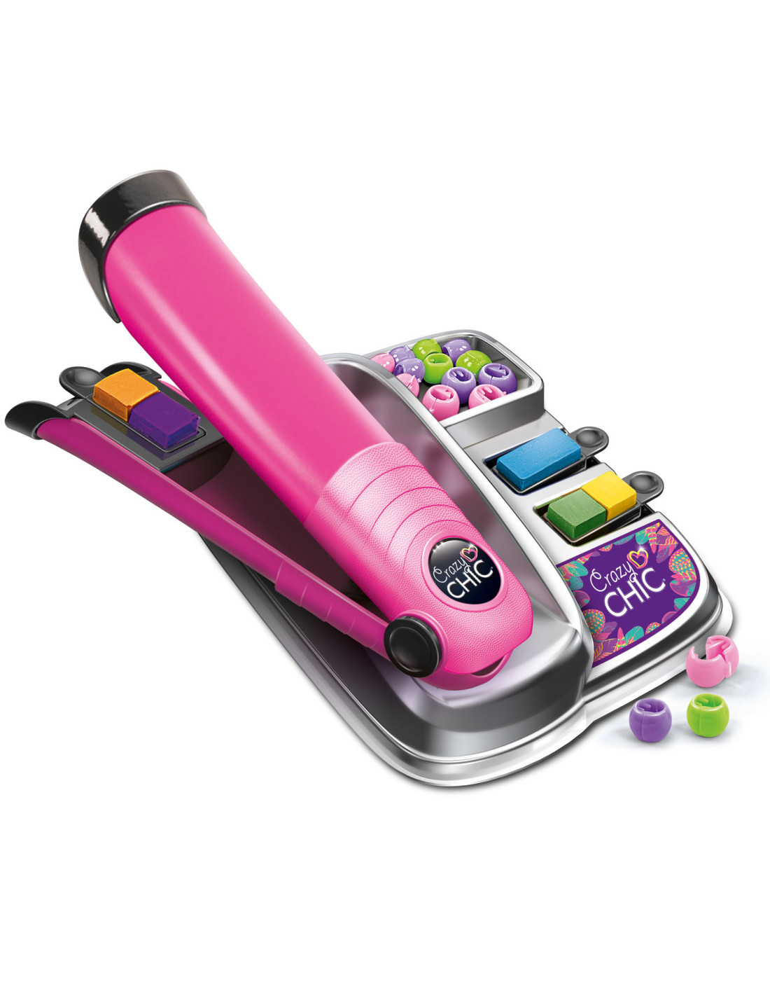 Met de nieuwe haarverfkit van Crazy Chic kun je regenbooglokken creëren en een echte hairstylist zijn! De stijltang, met zijn moderne design en professionele uitstraling, is uitgerust met een gemakkelijk verwisselbare behuizing voor kleurpatronen. Het resultaat is een steeds nieuwe look, dankzij het eenvoudige gebruik en een groot scala aan kleuren en tinten. De kit bevat ook een set kralen om alle stijlen te versieren! Ontwikkeld en ontworpen in Italië.
