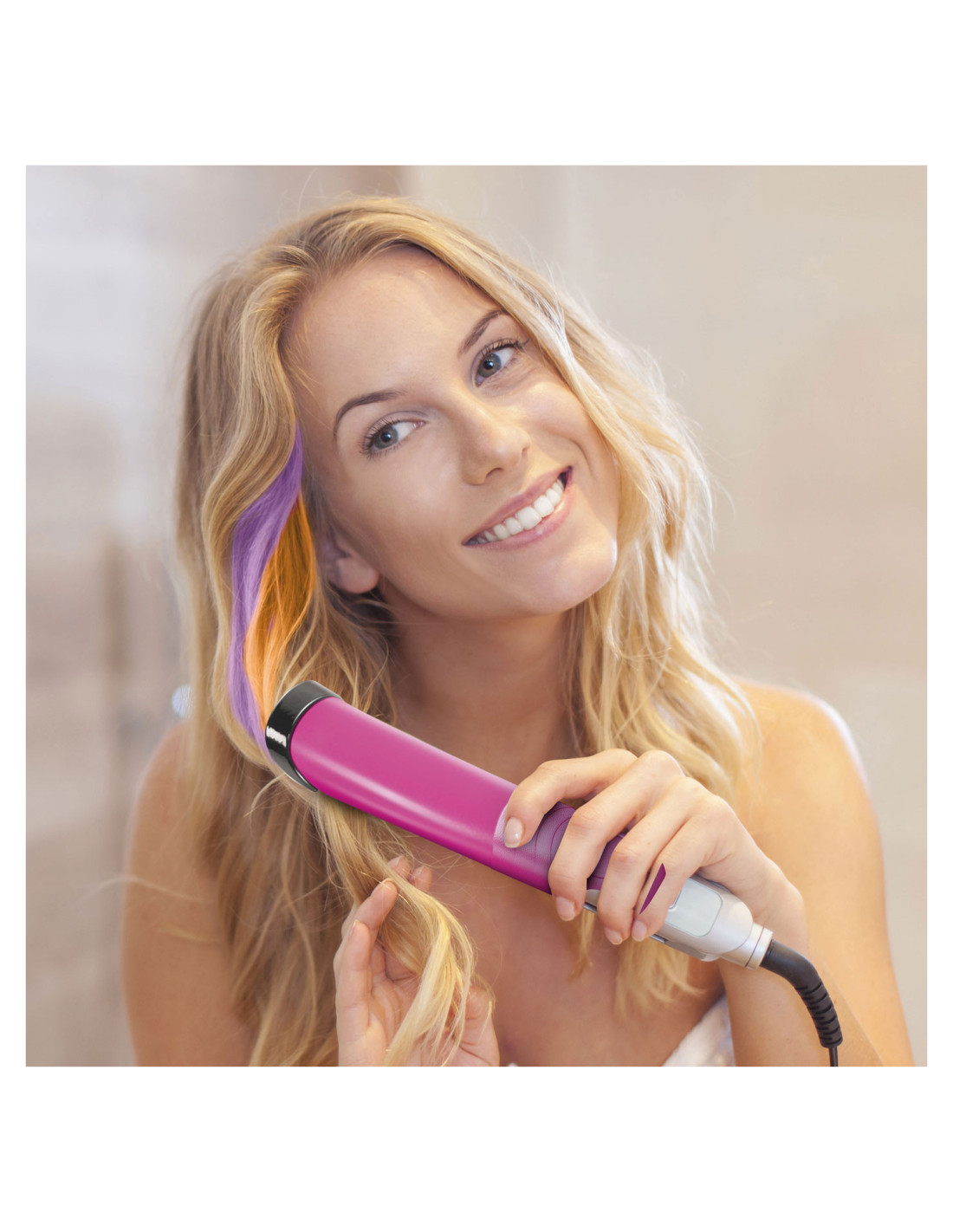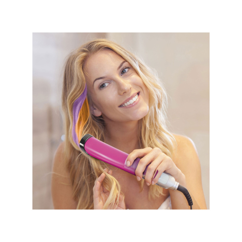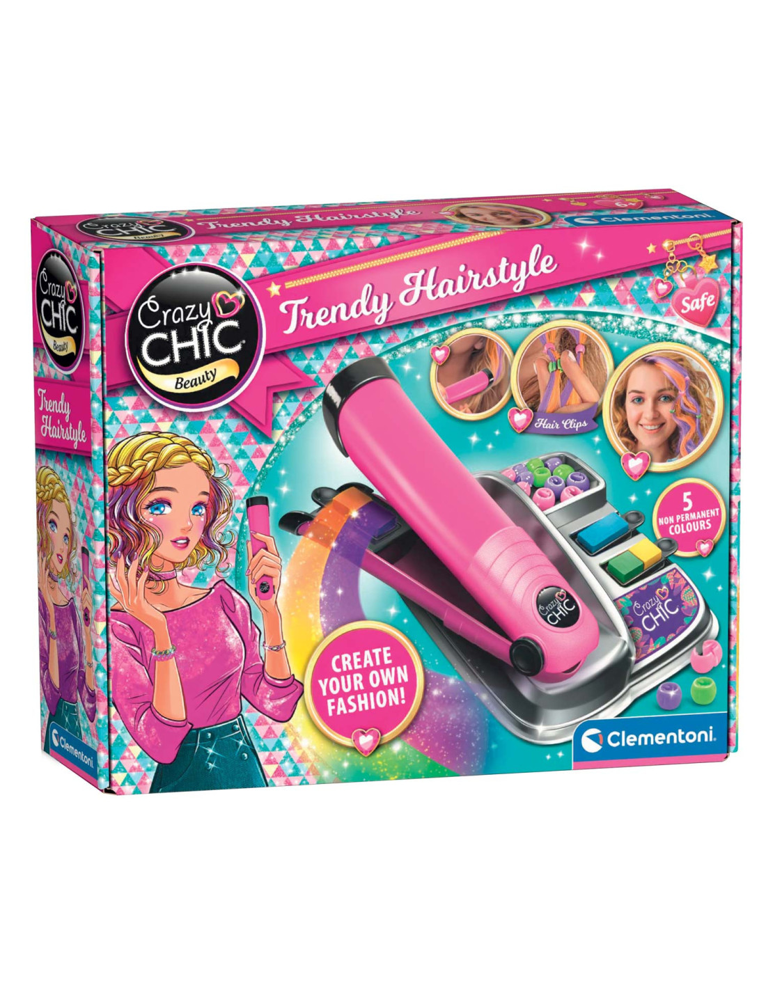 Met de nieuwe haarverfkit van Crazy Chic kun je regenbooglokken creëren en een echte hairstylist zijn! De stijltang, met zijn moderne design en professionele uitstraling, is uitgerust met een gemakkelijk verwisselbare behuizing voor kleurpatronen. Het resultaat is een steeds nieuwe look, dankzij het eenvoudige gebruik en een groot scala aan kleuren en tinten. De kit bevat ook een set kralen om alle stijlen te versieren! Ontwikkeld en ontworpen in Italië.