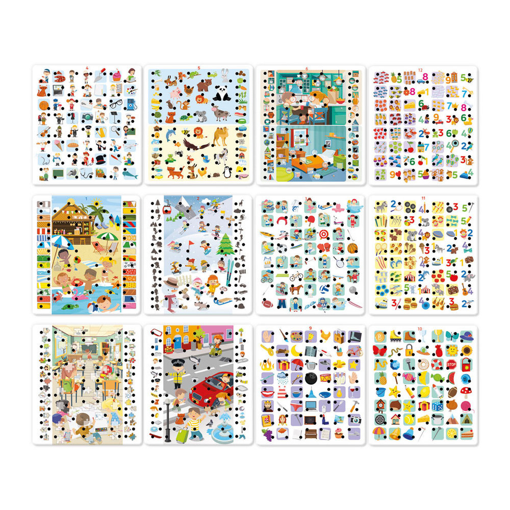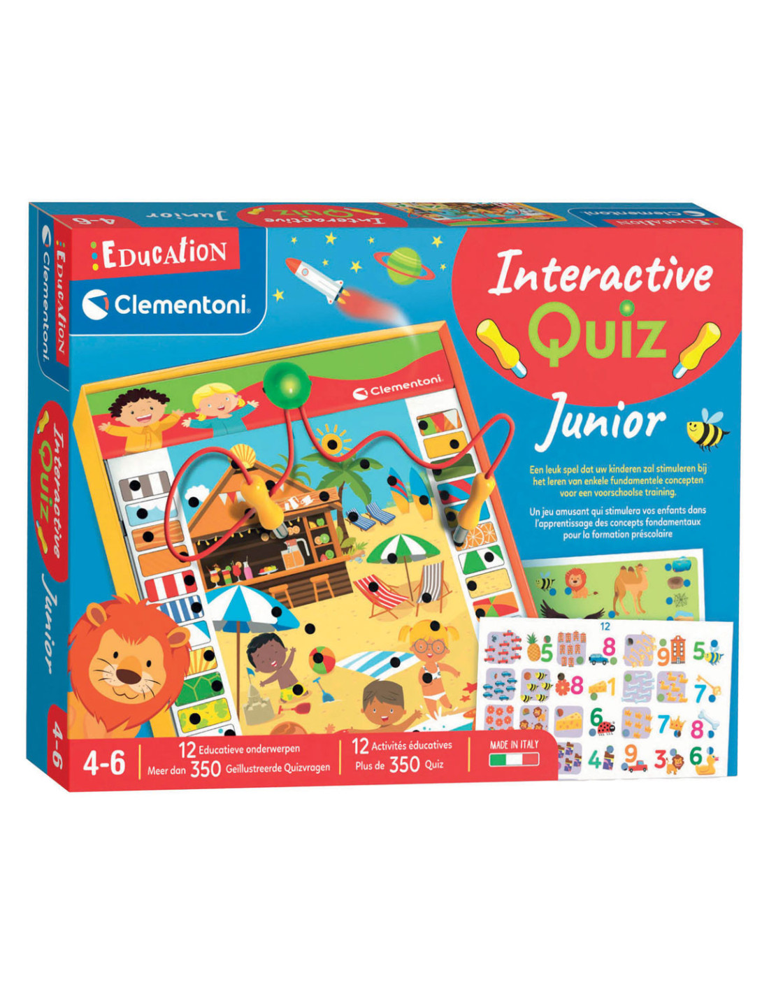 12 educatieve activiteiten Meer dan 1000 geïllustreerde quizzen Een klassiek spel dat het kind helpt het observatie- en associatievermogen te ontwikkelen. Dit spel is ontwikkeld voor kinderen in voorschoolse leeftijd, van 4 tot 6 jaar. Design en product ontwikkeld in Italië.