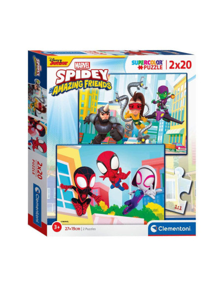 Clementoni puzzels. In deze doos zit een set van twee 20-delige legpuzzels van Spidey and his Amazing Friends! Gemaakt van stevig karton en met heldere kleuren.