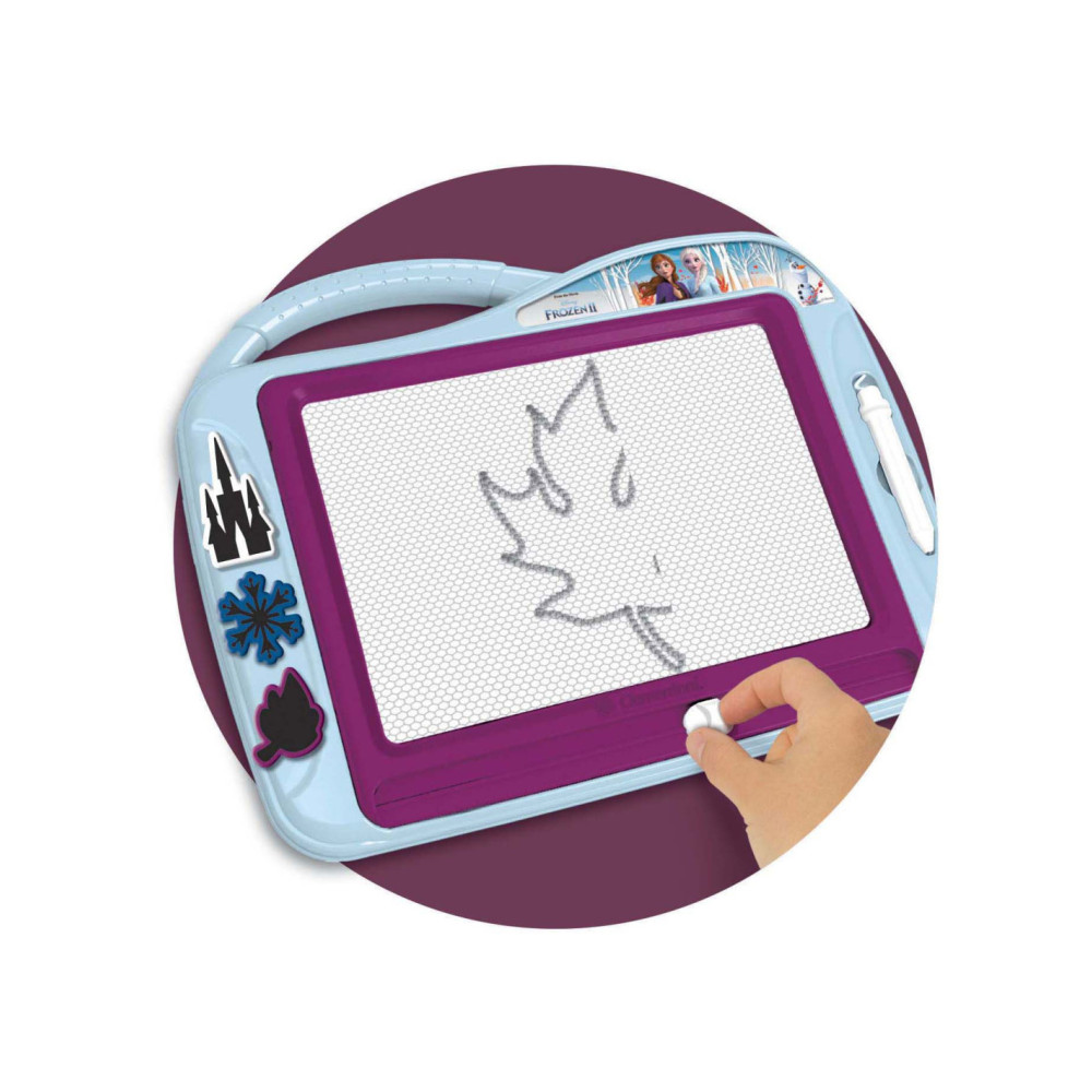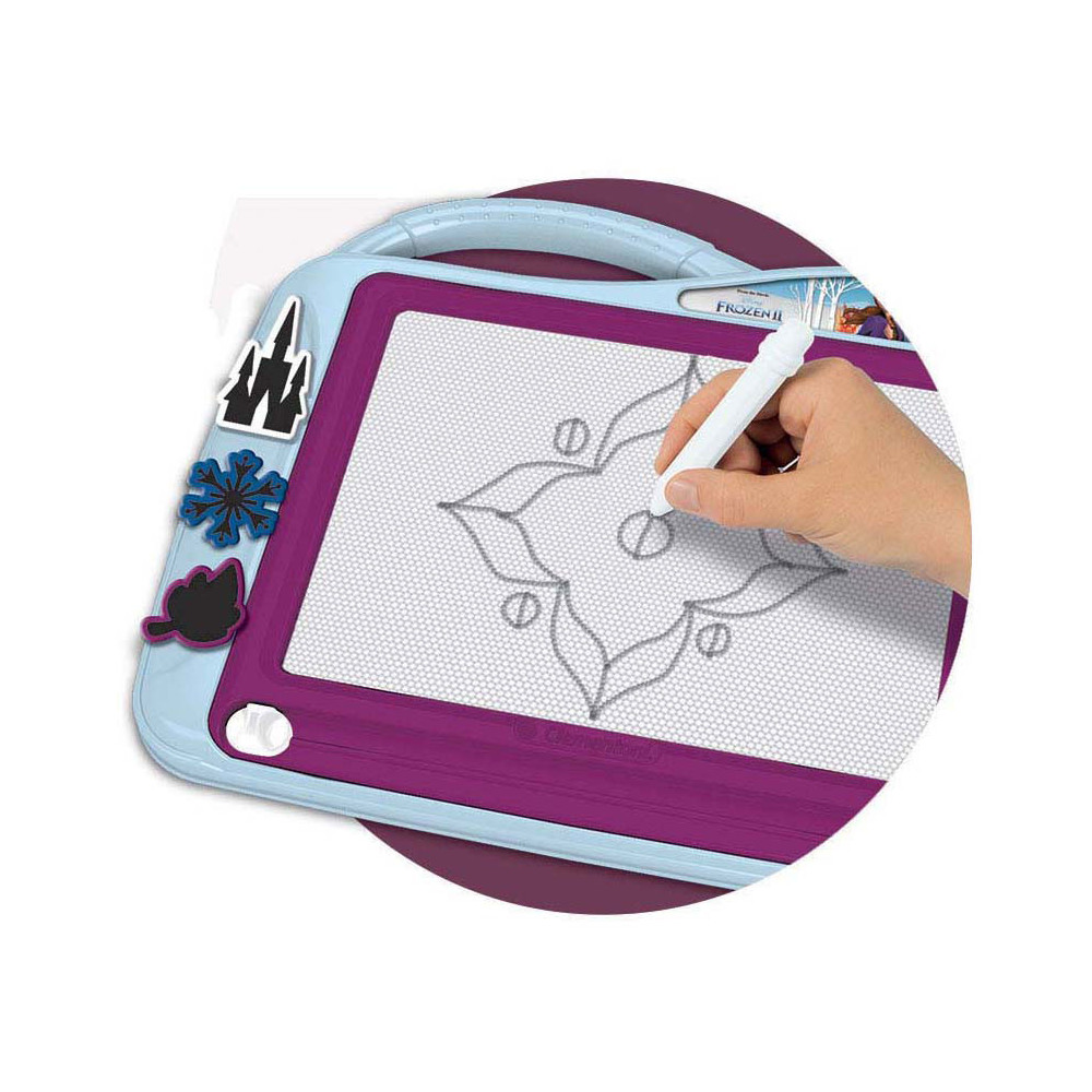 Een echt "magische" tekentafel om oneindig te tekenen en plezier te hebben met de personages van de Frozen wereld . Schrijf, teken en wis zoveel als je wilt! Met een praktische handgreep om het te dragen waar je maar wilt en drie mallen om je creaties te verrijken. Een ideaal speeltje om de creativiteit en verbeeldingskracht van kinderen te stimuleren.