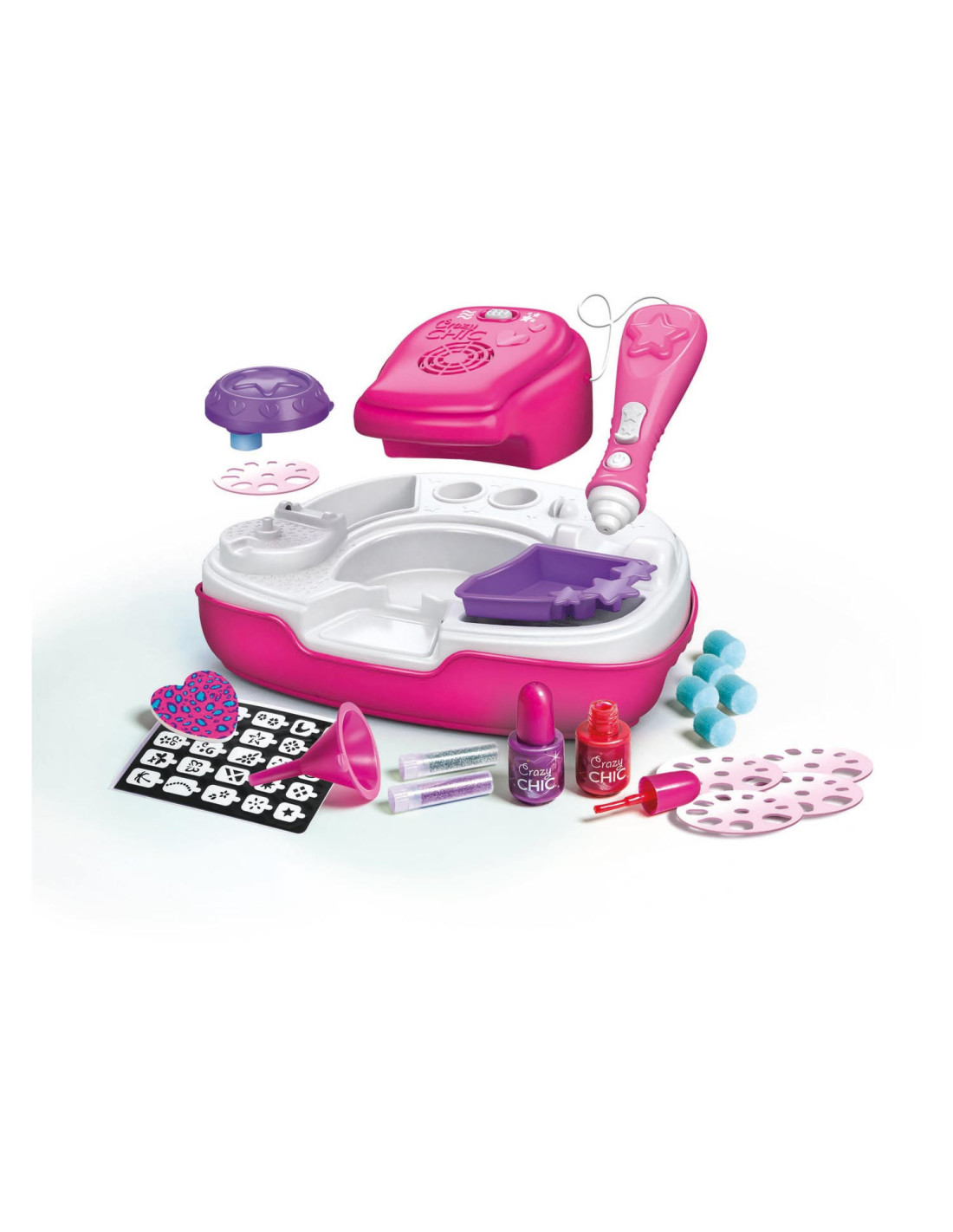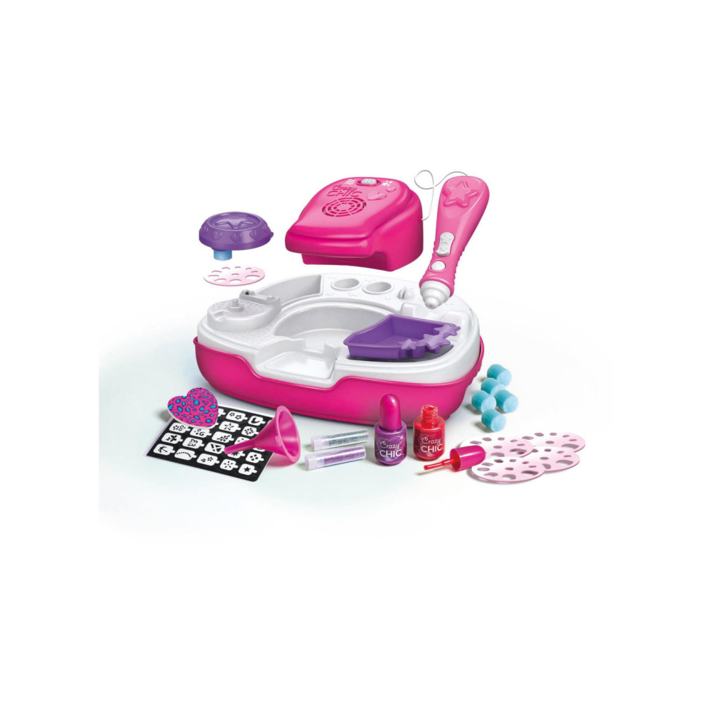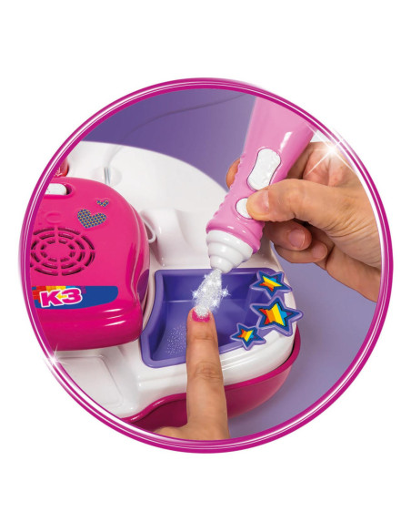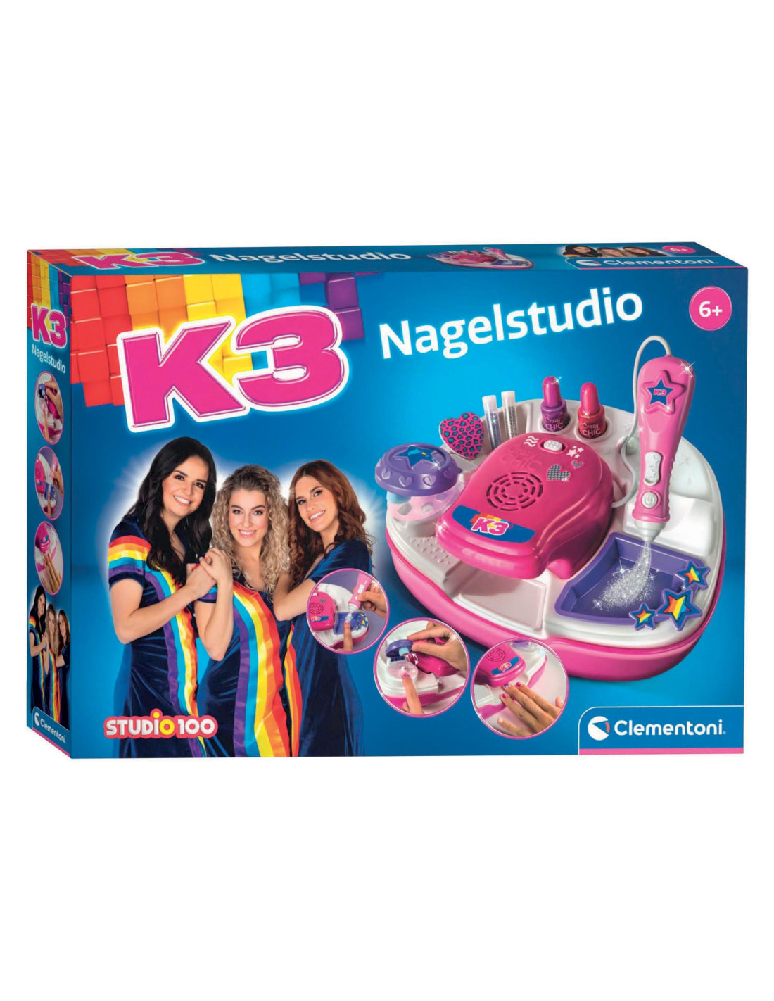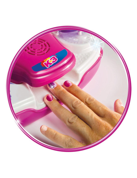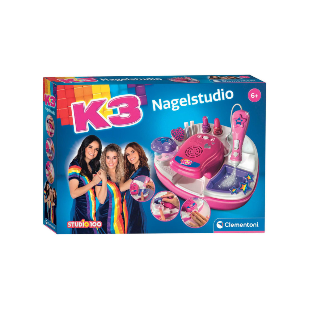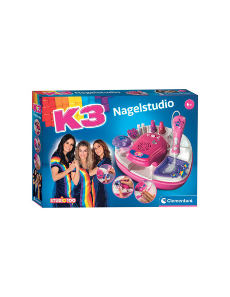 Een nail art studio om een perfecte manicure te creëren, met de kleuren en de stijl van K3! De console beschikt over alles wat je nodig hebt: nagellak, droger, apparaat om glitter aan te brengen, en veel meer! Breng je persoonlijkheid en verbeelding naar voren door het creëren van fantastische en originele nail art looks. K3 wacht op je voor het creëren van hun volgende nail art look! Product ontworpen in Italië. Alle onderdelen zijn veilig en getest.