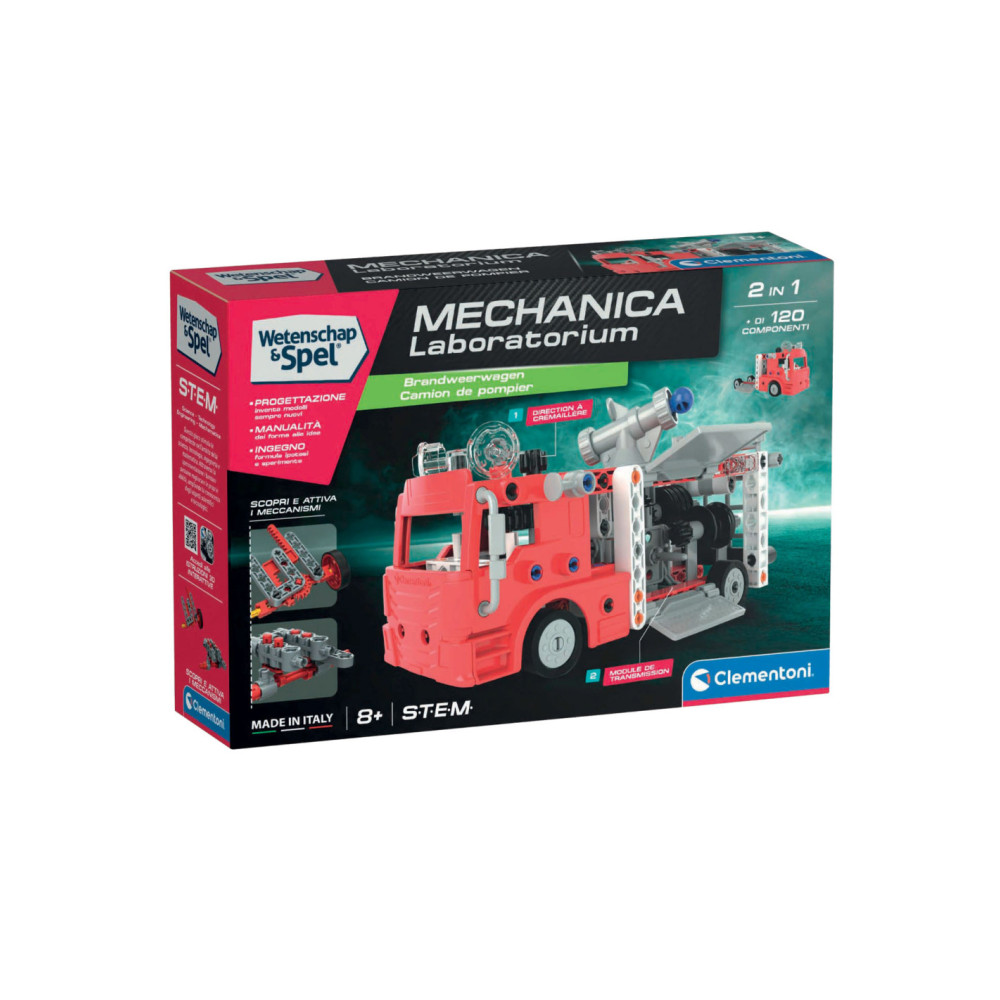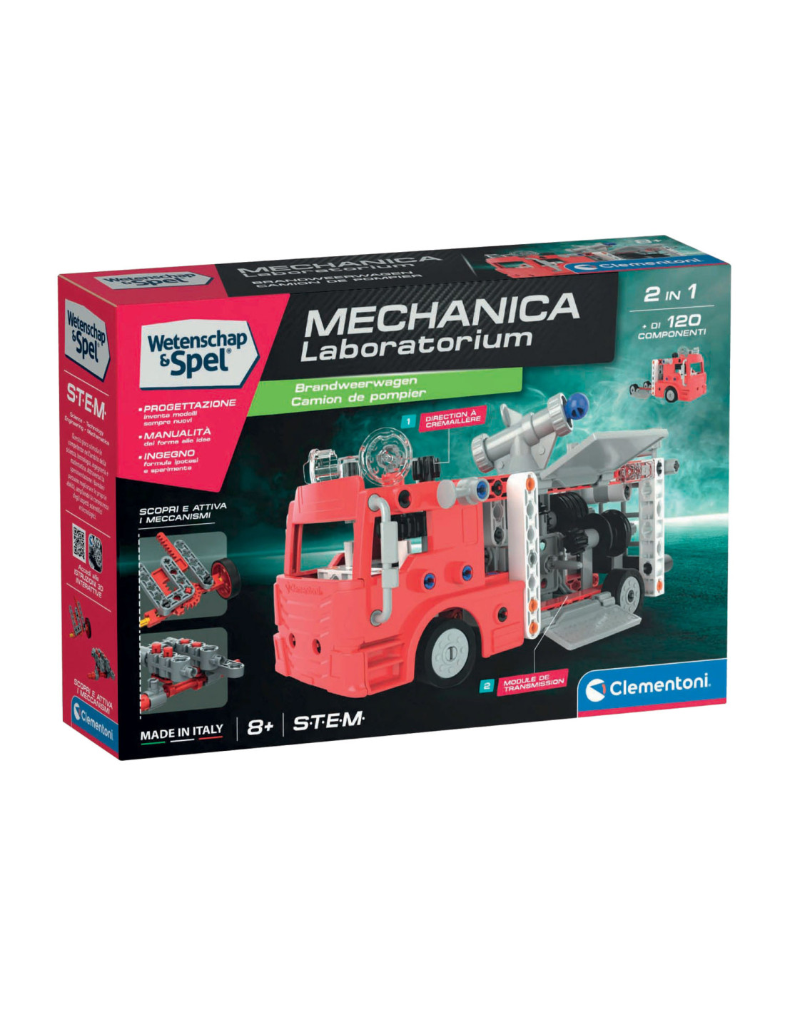Een bouwset om met veel speelplezier een brandweerauto in elkaar te zetten. Het model bevat componenten en tandwielen om een leuke brandweerauto te bouwen, met een stuursysteem en brandspuit, een modulaire reddingsladder, brandblussers en nog veel meer. Dynamisch design, gemakkelijk om mee te spelen. De geïllustreerde handleiding en de instructies in 3D helpen om het model eenvoudig en intuïtief in elkaar zetten. Made in Italy.
