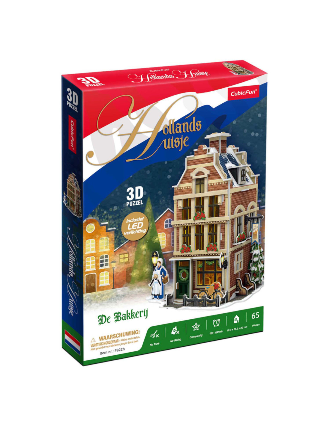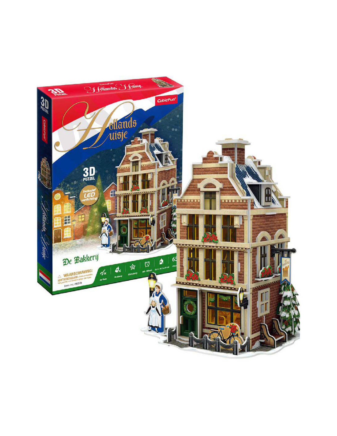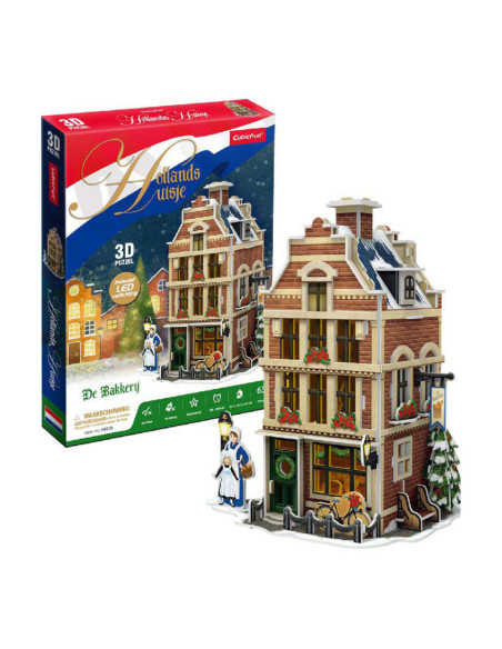 Maak je eigen kerstdorp met deze 3-D Bakkerij puzzel, inclusief Ledverlichting. Geen gereedschap of lijm nodig. Bestaande uit 65 stukjes. Formaat: ca 12,4 x 20 x 16,2 cm. Verpakt in een full color doos. Formaat: Geschikt voor kinderen vanaf 8 jaar.