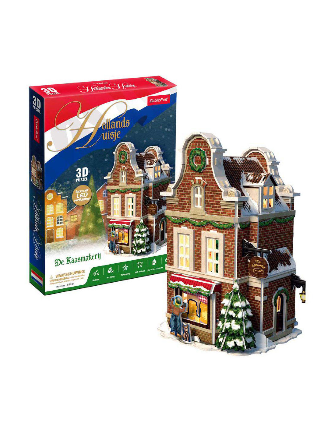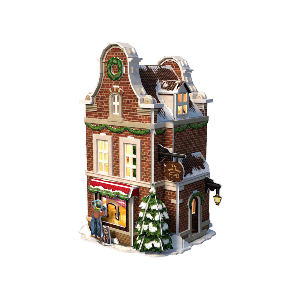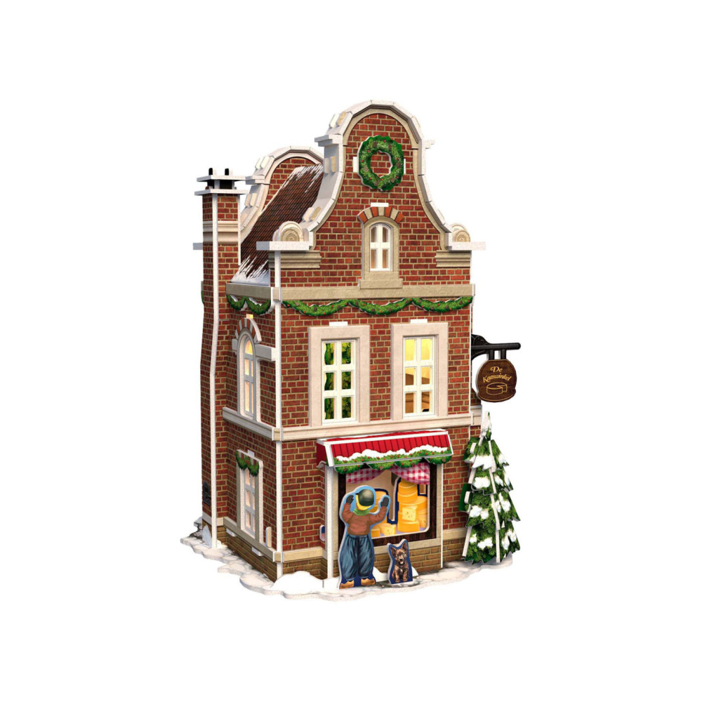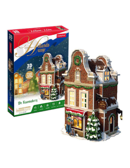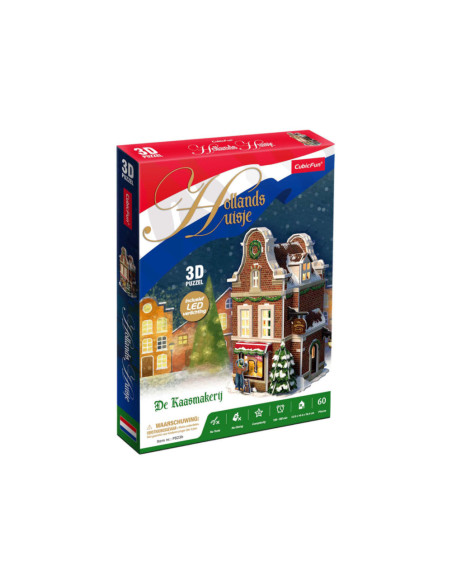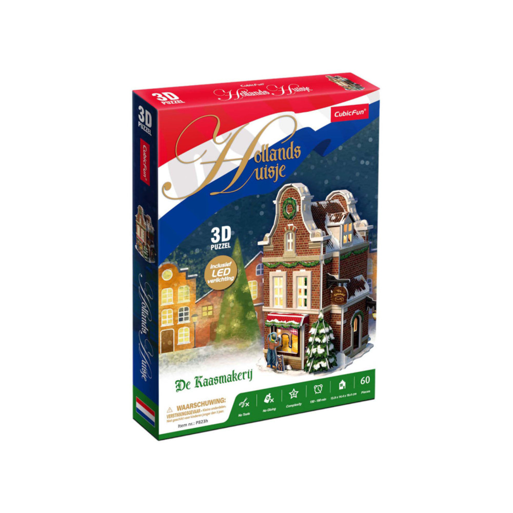 Maak je eigen kerstdorp met deze 3-D Kaasmakerij puzzel, inclusief Ledverlichting. Geen gereedschap of lijm nodig. Bestaande uit 60 stukjes. Formaat: ca. 13,5 x 19,4 x 13,8 cm. Verpakt in een full color doos. Geschikt voor kinderen vanaf 8 jaar