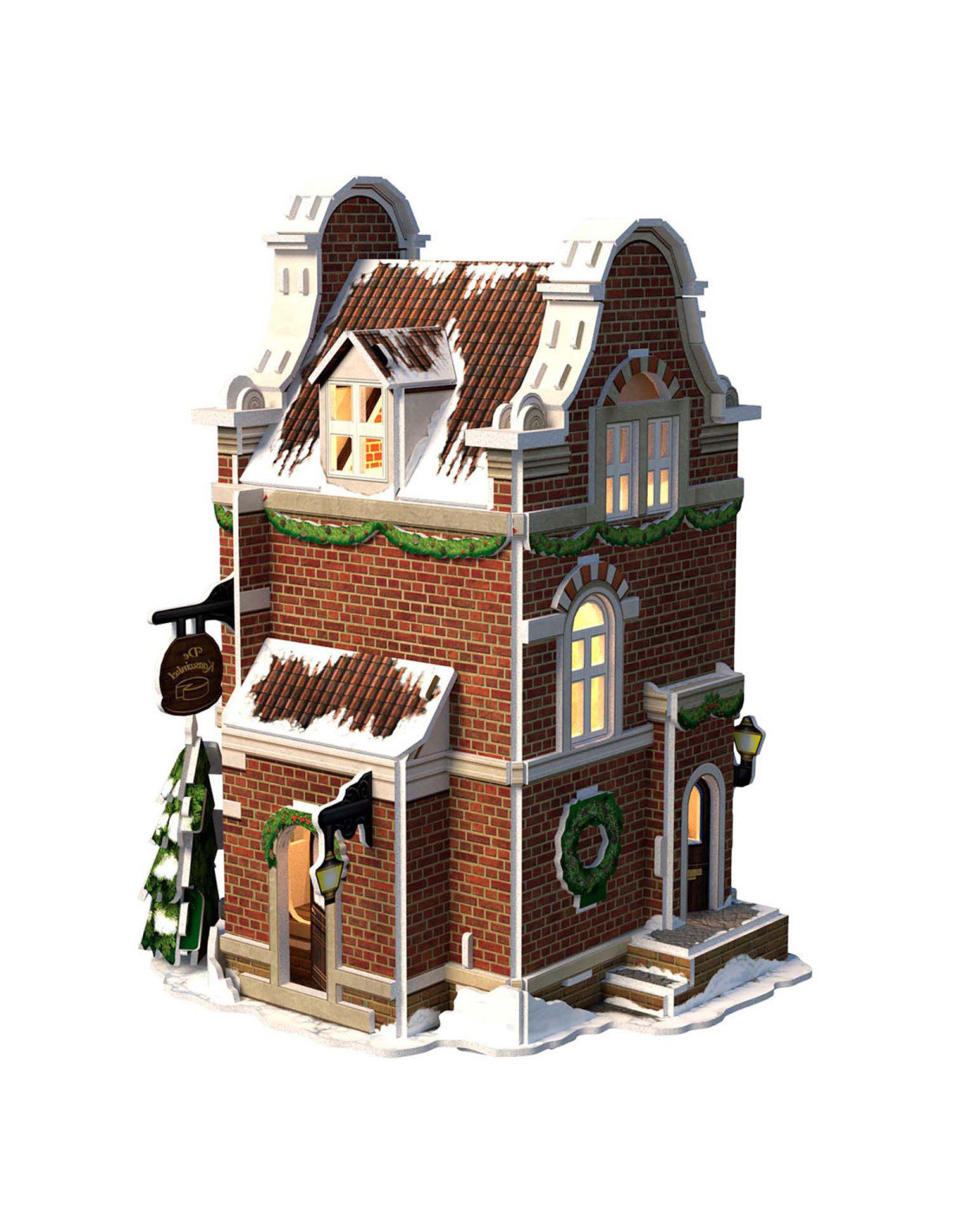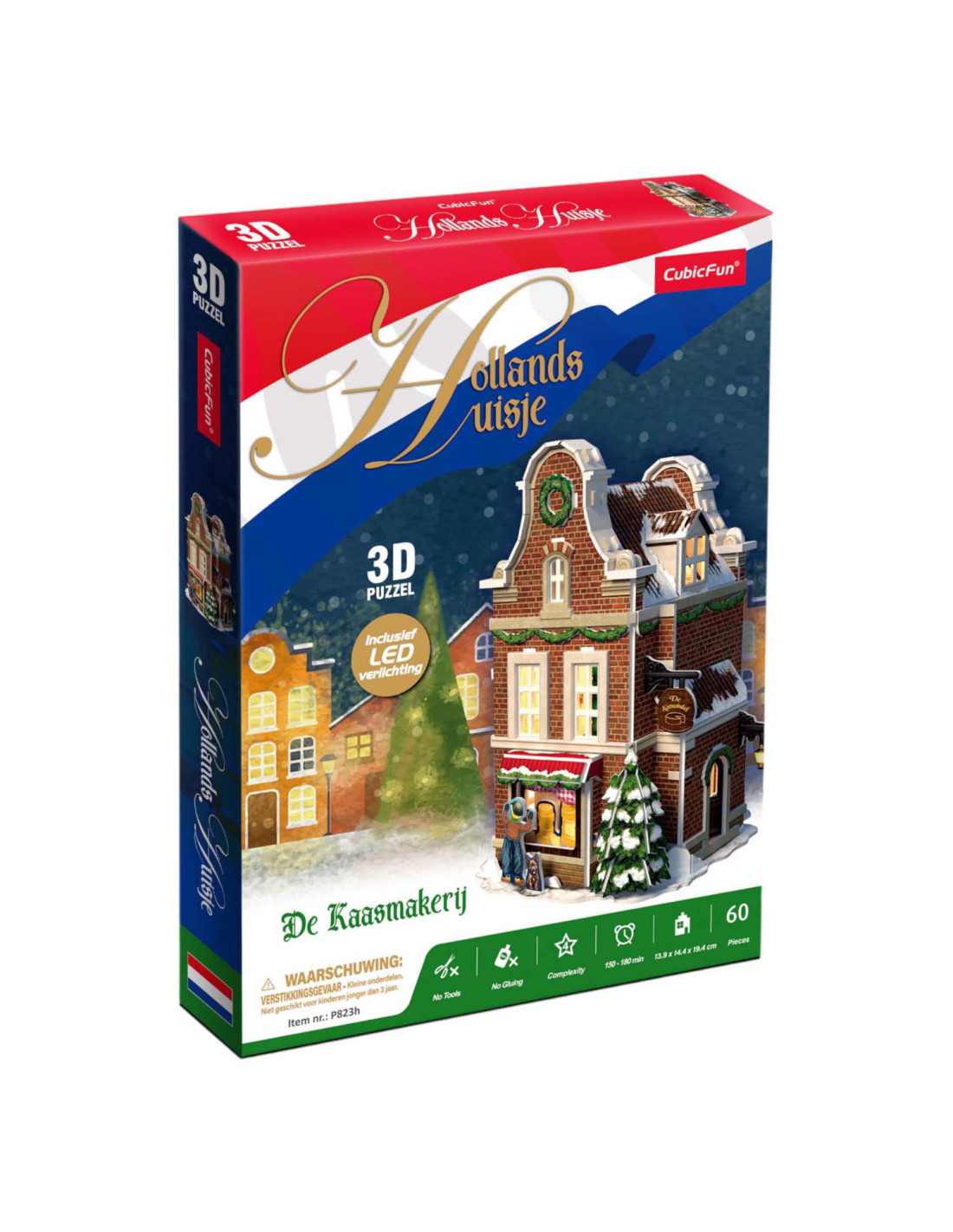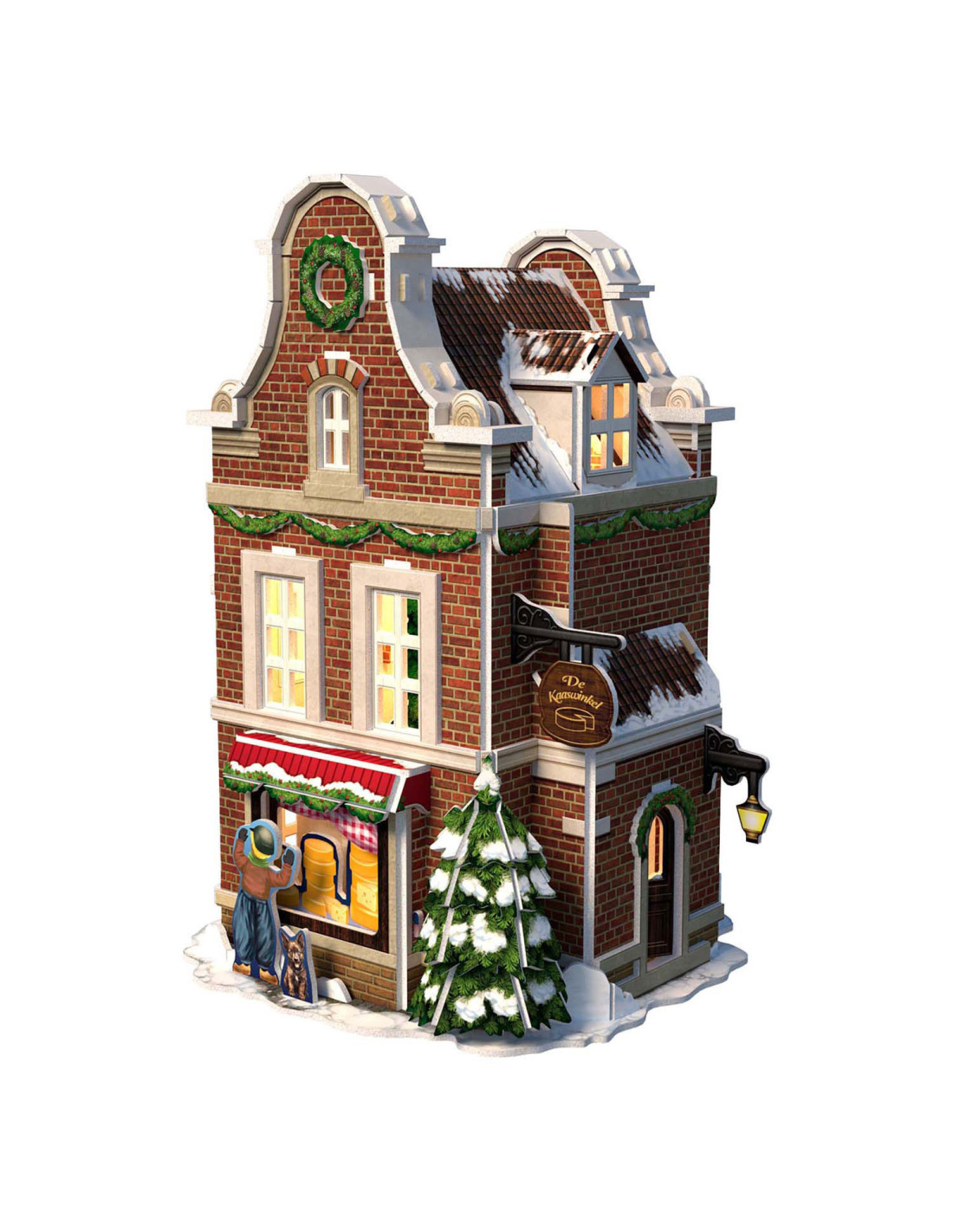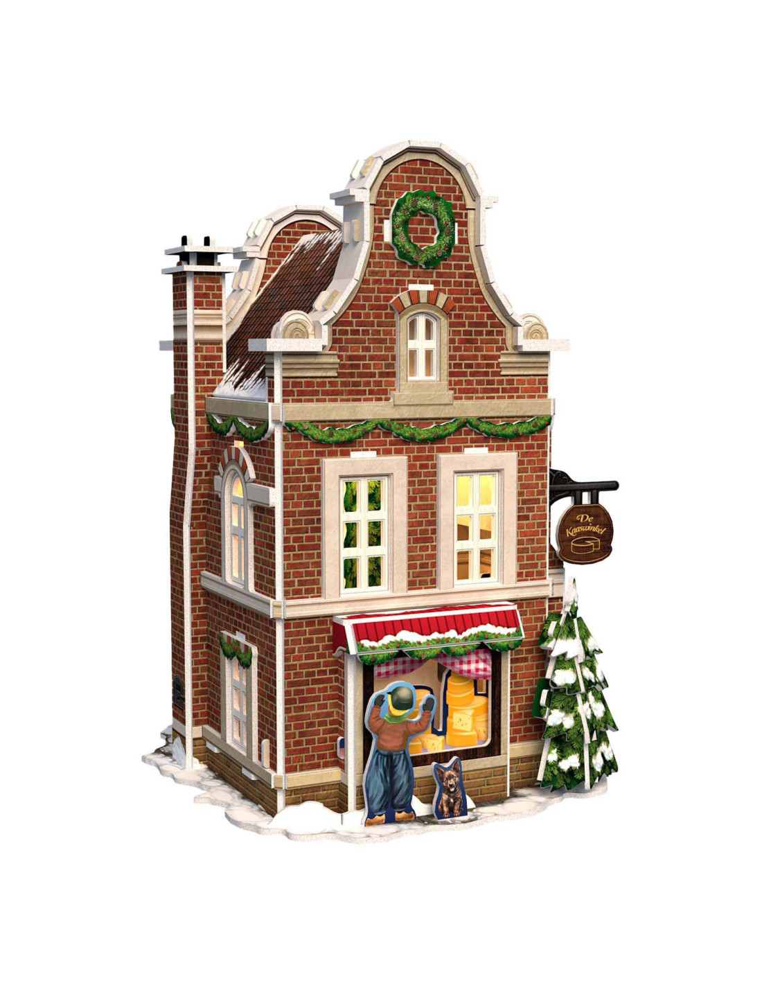 Maak je eigen kerstdorp met deze 3-D Kaasmakerij puzzel, inclusief Ledverlichting. Geen gereedschap of lijm nodig. Bestaande uit 60 stukjes. Formaat: ca. 13,5 x 19,4 x 13,8 cm. Verpakt in een full color doos. Geschikt voor kinderen vanaf 8 jaar
