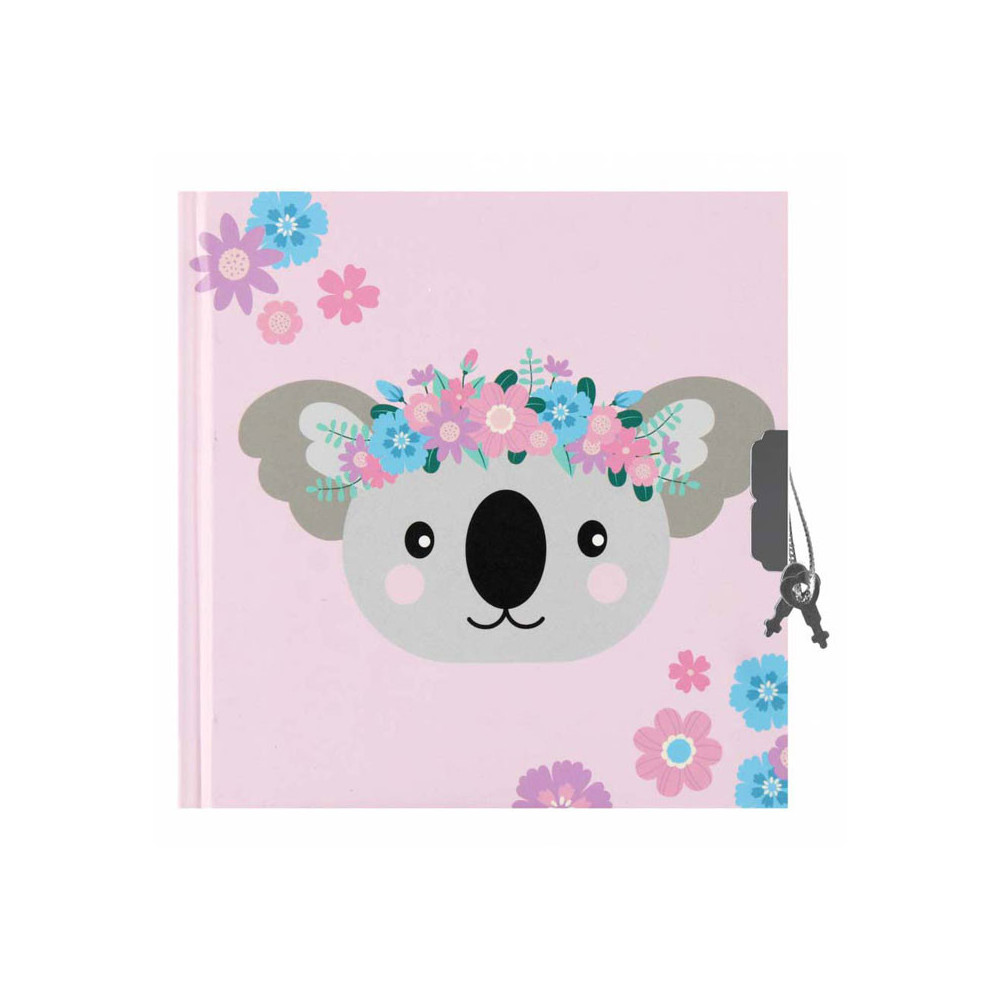 Koala dagboek met slot. Niet geschikt voor kinderen onder de 3 jaar. Het dagboek is 13,5 x 13,5 cm groot.