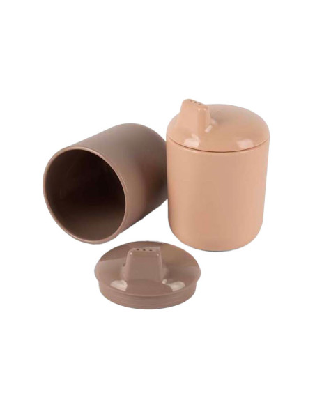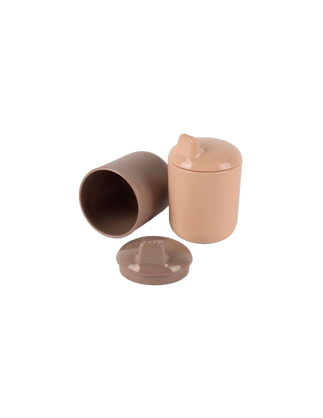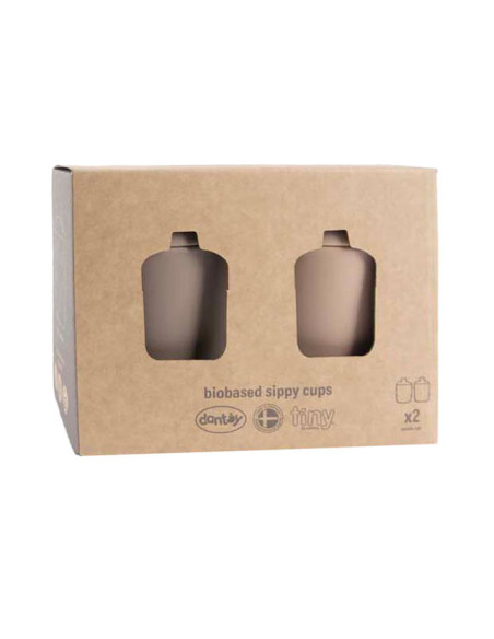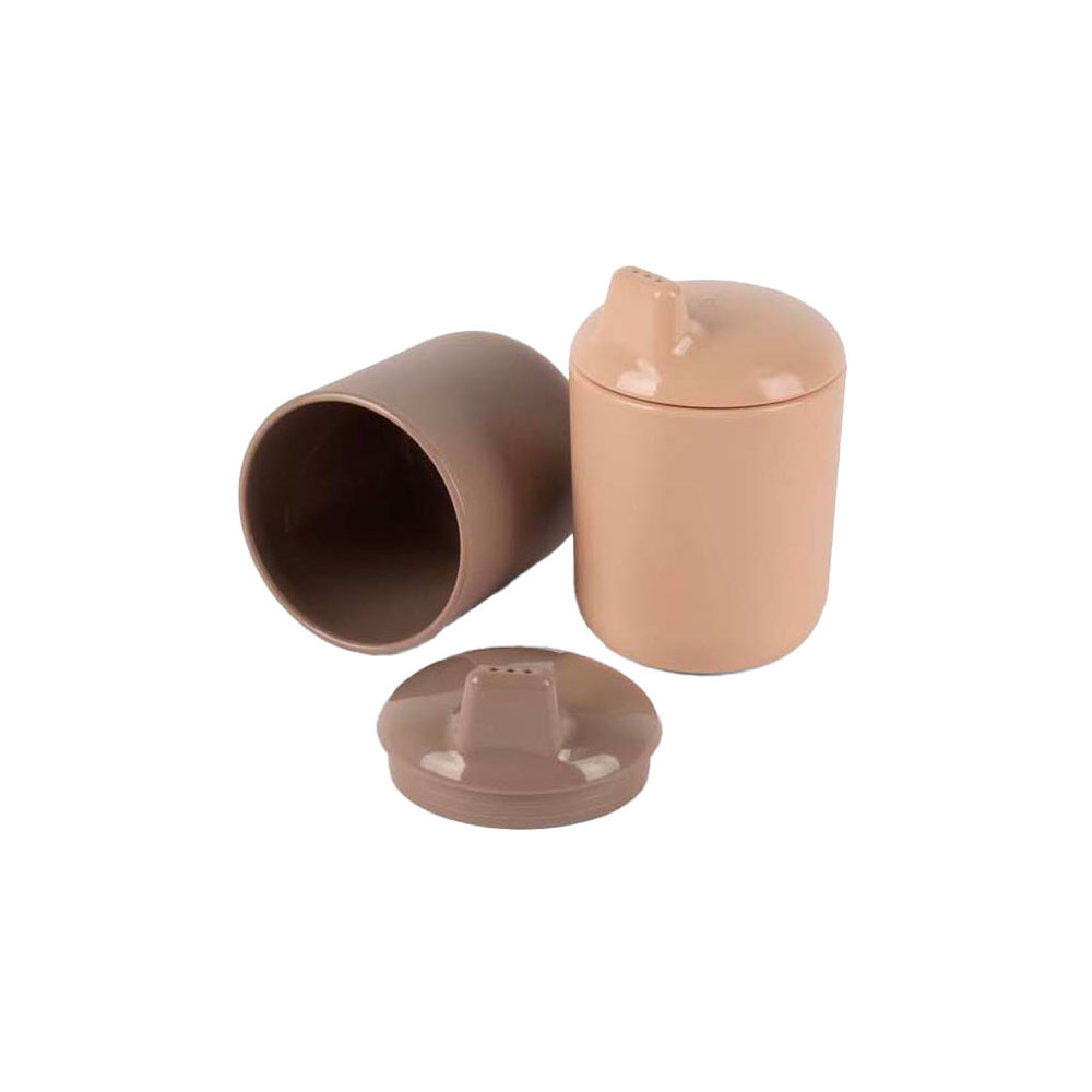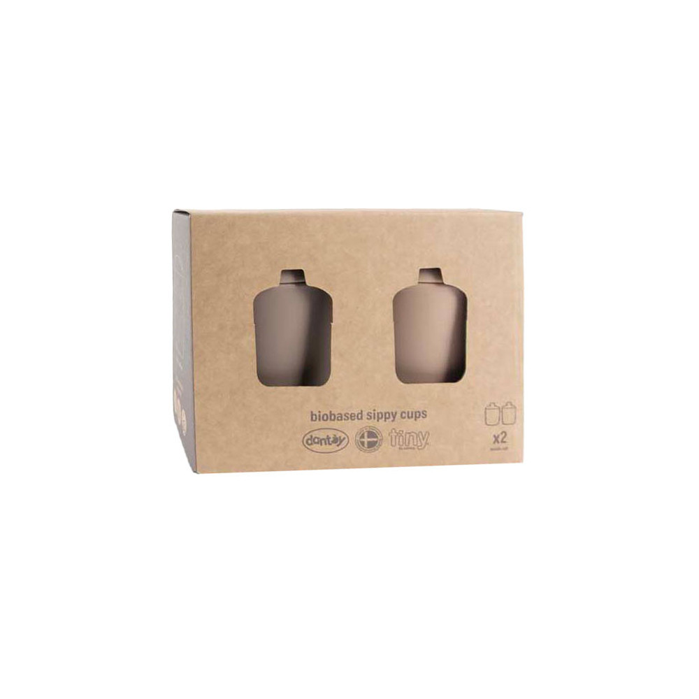 Dantoy anti-knoei drinkbekers beige/mokka, 2-delig. Gemaakt van BIOplastic (suikerriet), ca. 14 × 11 × 7 cm. Vanaf 6 maanden, voedselveilig en vaatwasserbestendig.