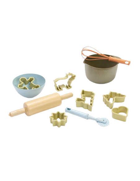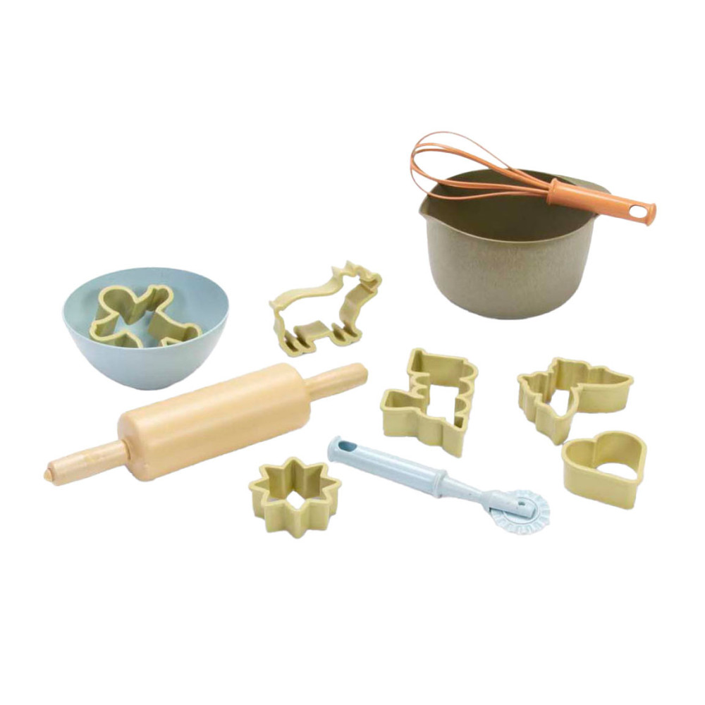 Dantoy baksetje, 11-delig, met beslagkom, deegroller, bakvormpjes en accessoires. Lichtgewicht, stevig en veilig in gebruik, geschikt voor kinderen vanaf 2 jaar.