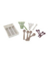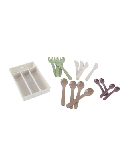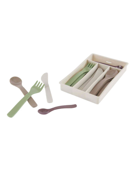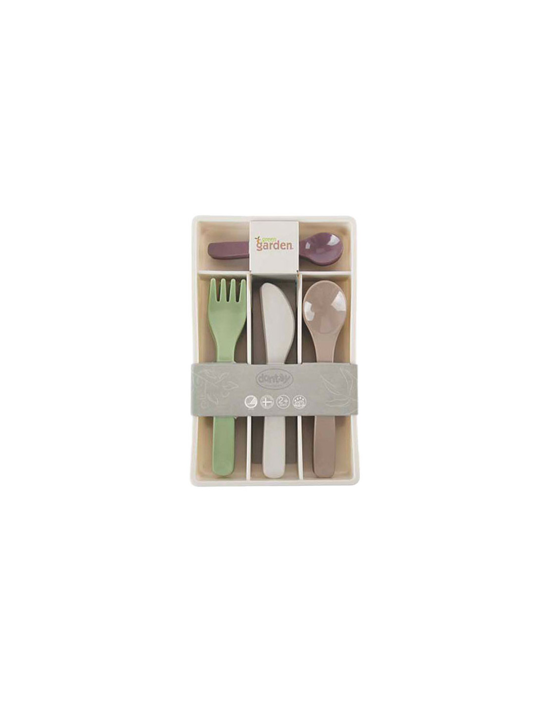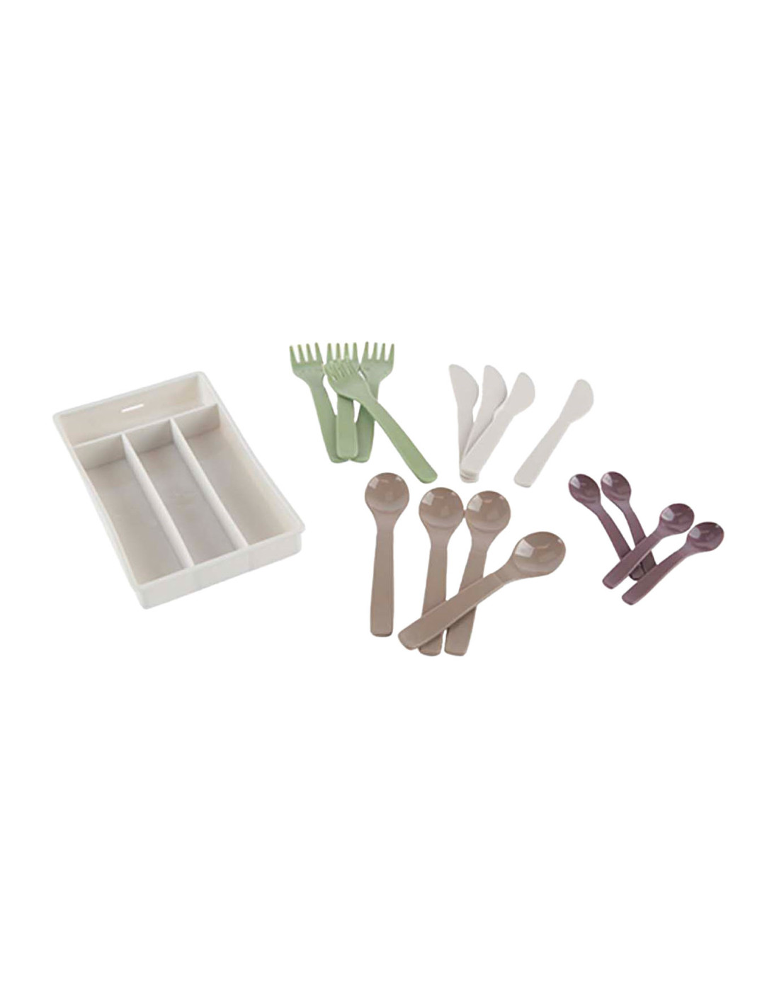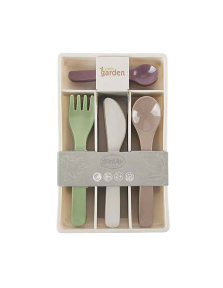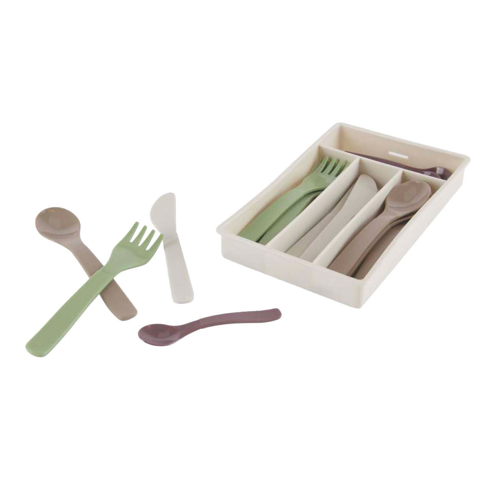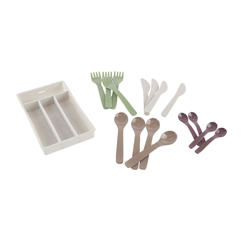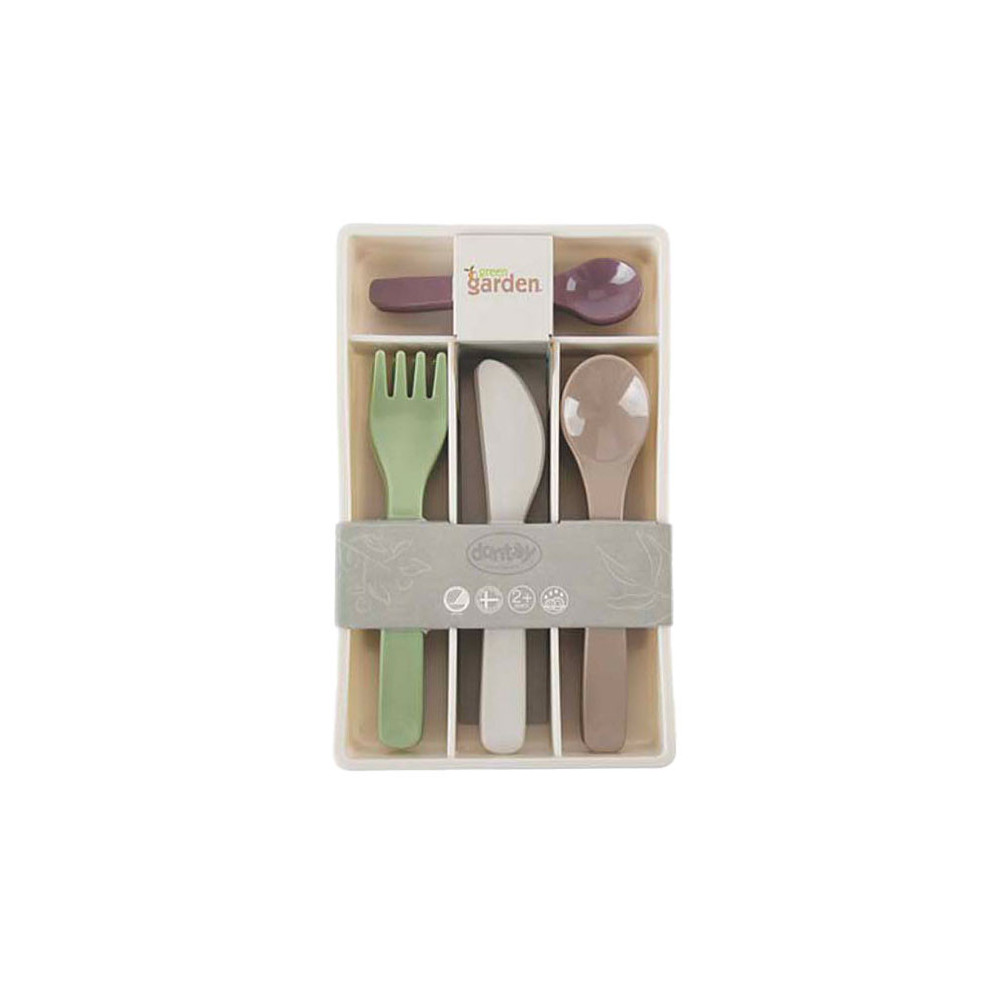 Dantoy bestekset, 17-delig, met vorken, messen, lepels en theelepeltjes. Lichtgewicht, stevig en vrij van PVC en ftalaten, geschikt voor kinderen vanaf 2 jaar.