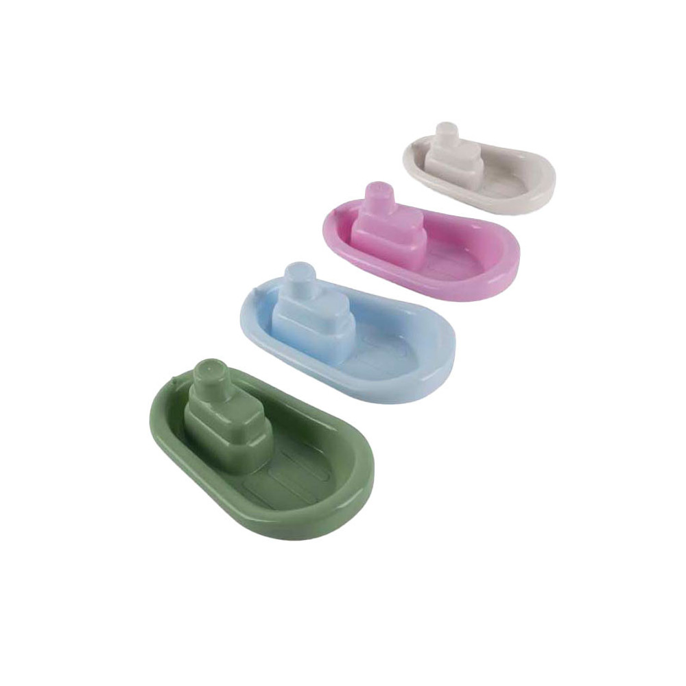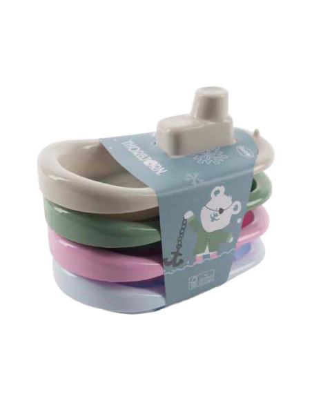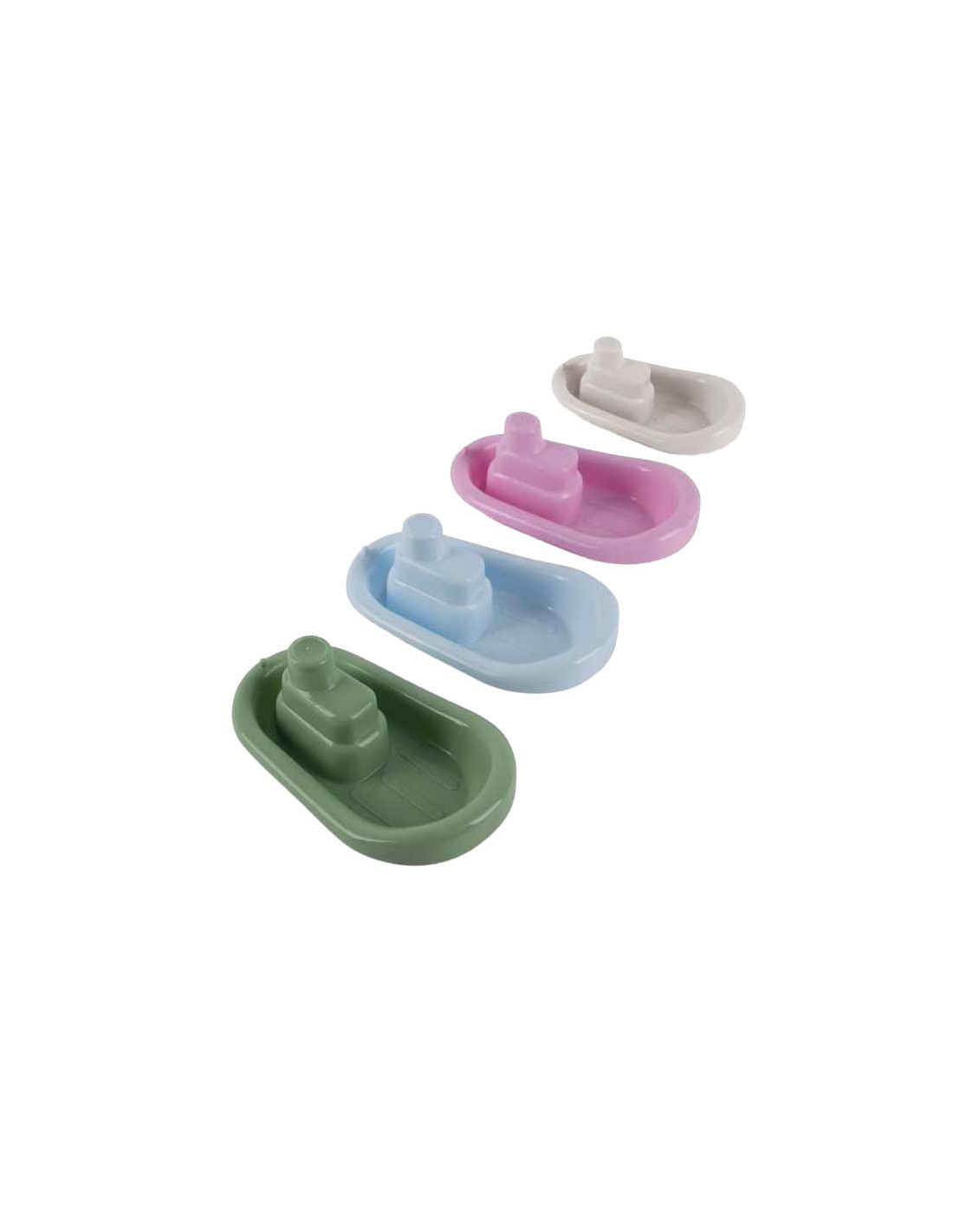 Dantoy bootjesset, 4 stuks, in beige, groen, roze en blauw. Lichtgewicht, stevig en veilig in gebruik, geschikt voor kinderen vanaf 2 jaar.