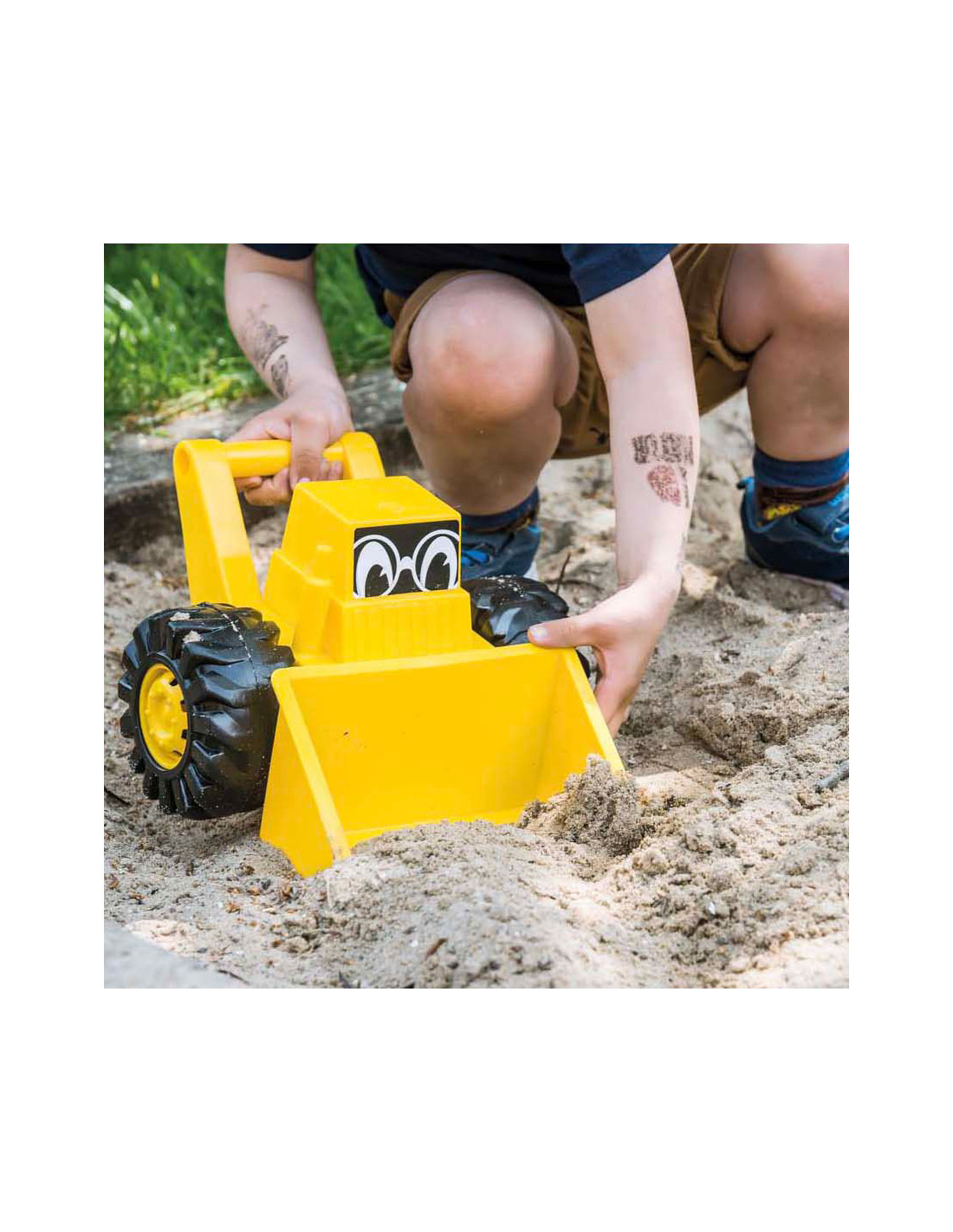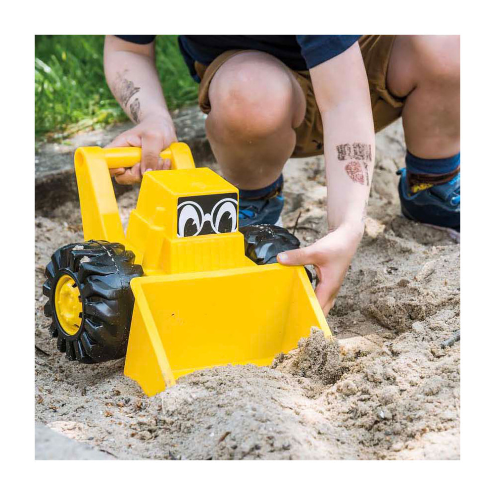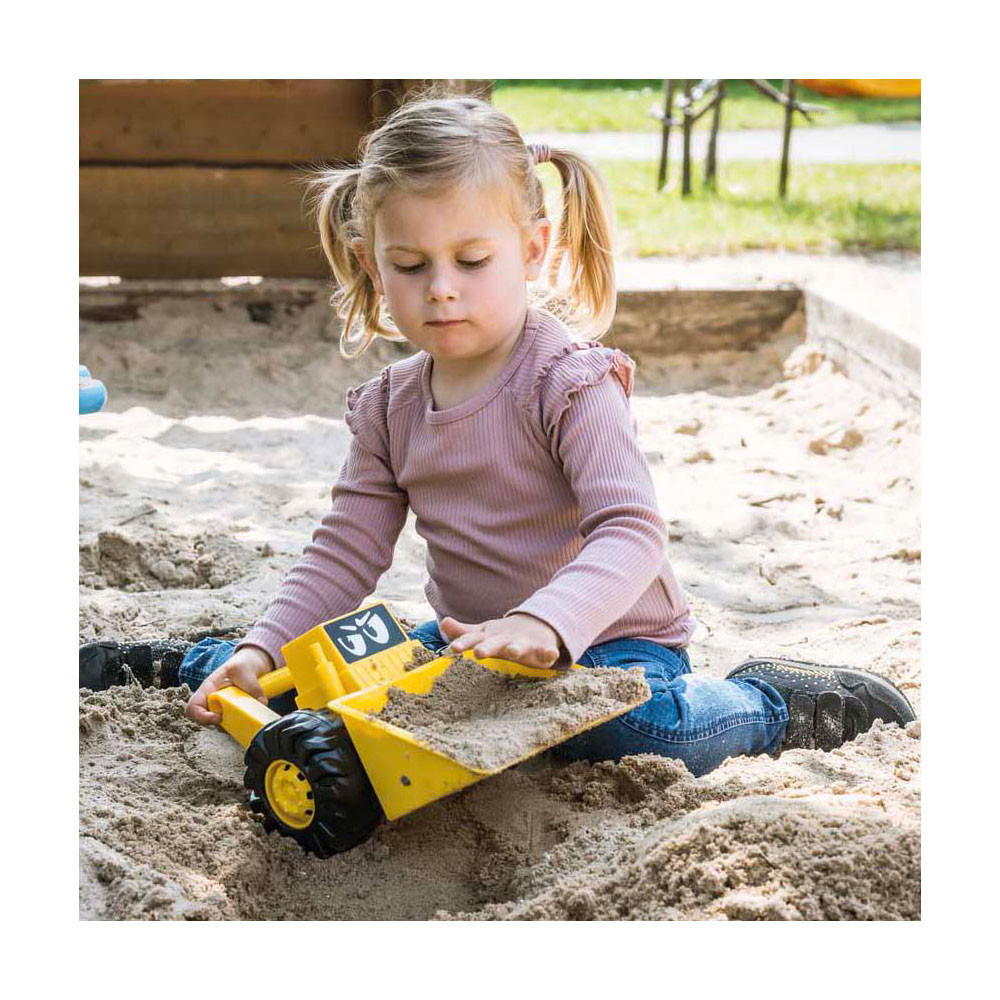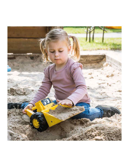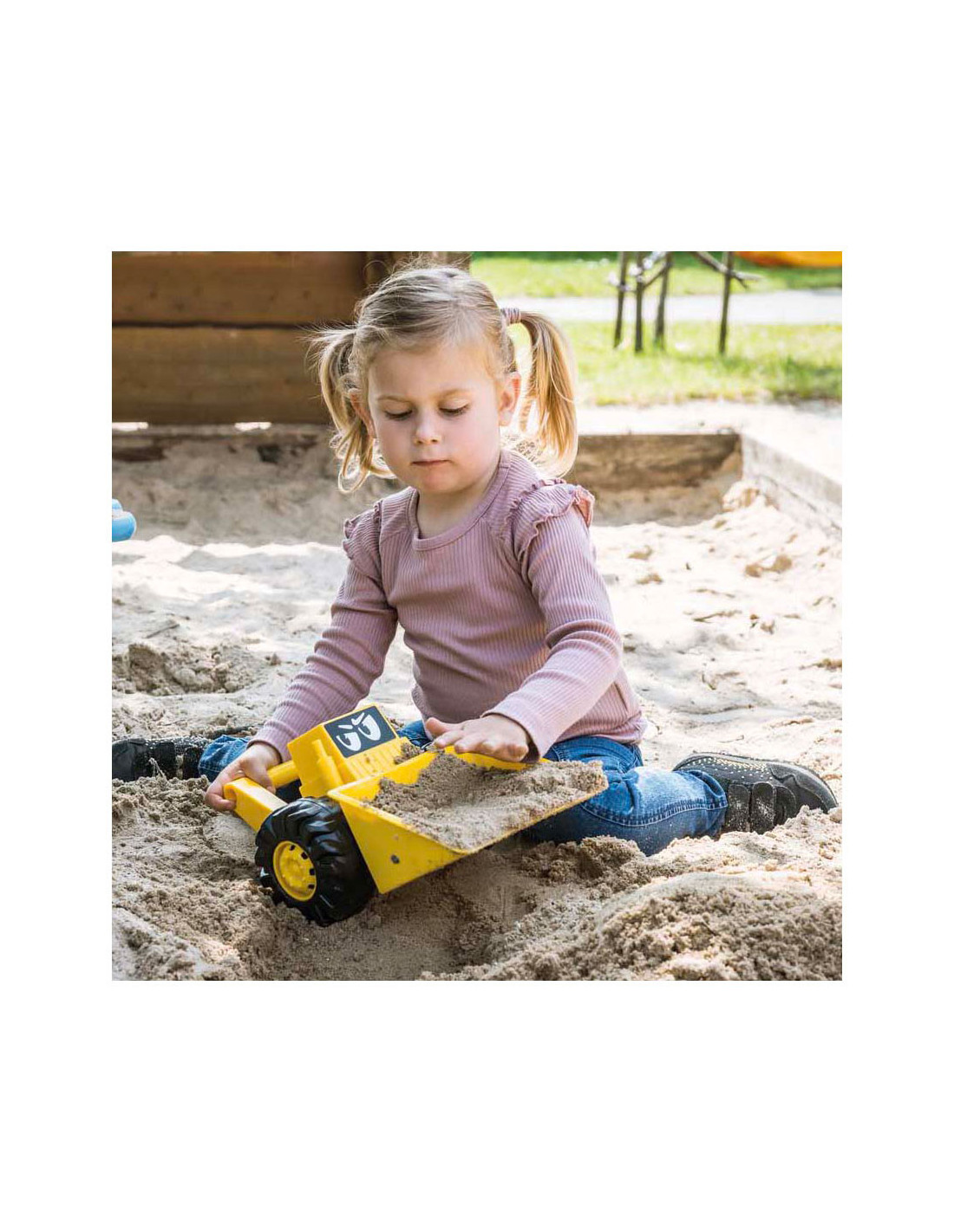 Dantoy bulldozer van ca. 33 cm lang, gemaakt van stevig en kleurrijk geel en zwart kunststof. Vrij van PVC en ftalaten, geschikt voor kinderen vanaf 2 jaar.
