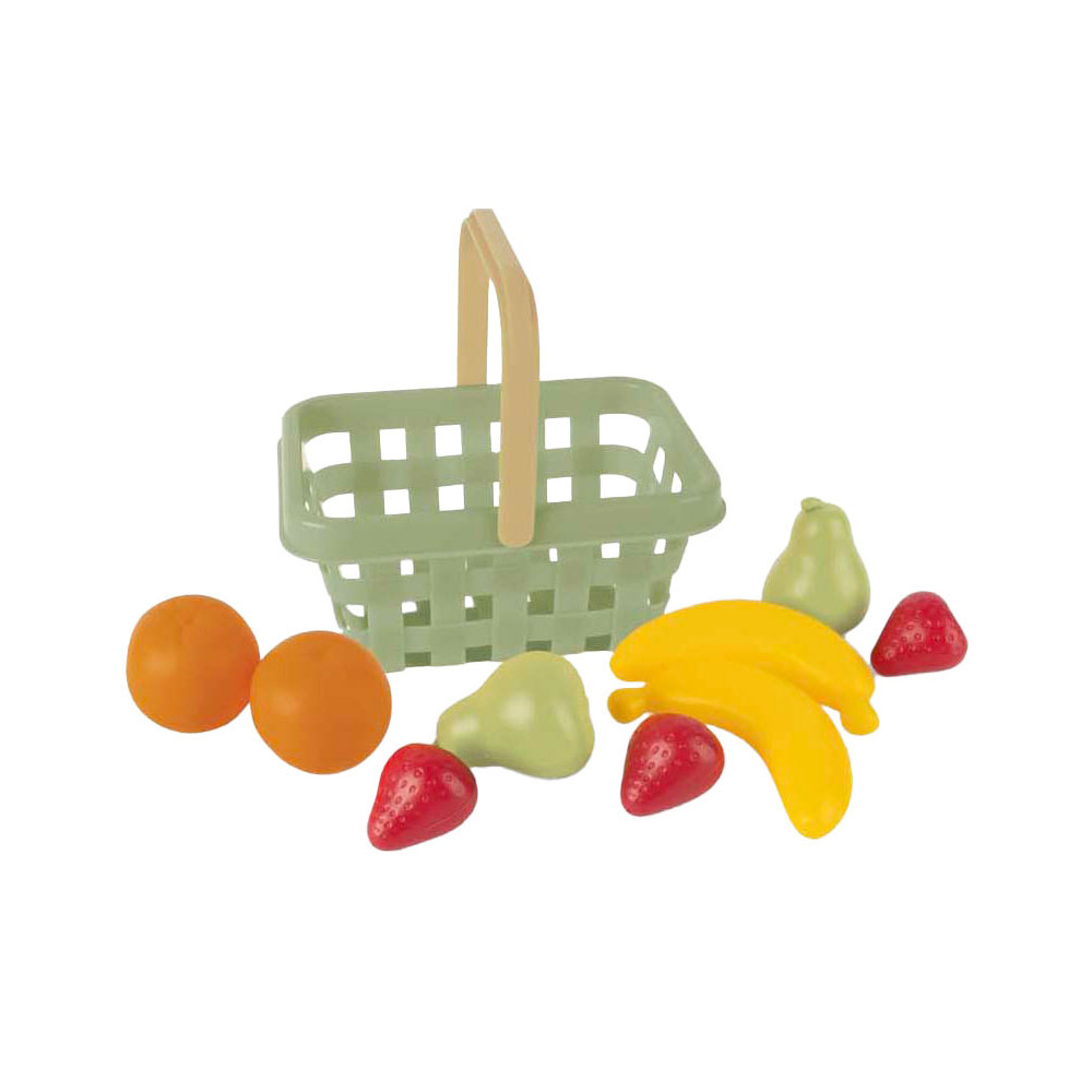 Dantoy fruitmand, 10-delig, gevuld met kleurrijk speelfruit. Lichtgewicht, stevig en vrij van PVC en ftalaten, geschikt voor kinderen vanaf 2 jaar.