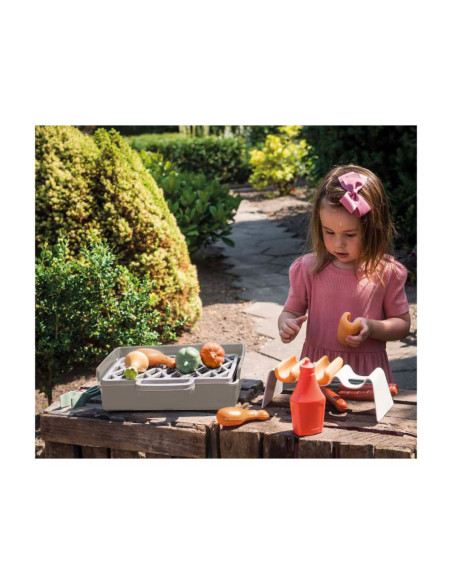 Dantoy grillset met kleurrijk grillrooster en accessoires. Lichtgewicht, stevig en vrij van PVC en ftalaten, geschikt voor kinderen vanaf 2 jaar.