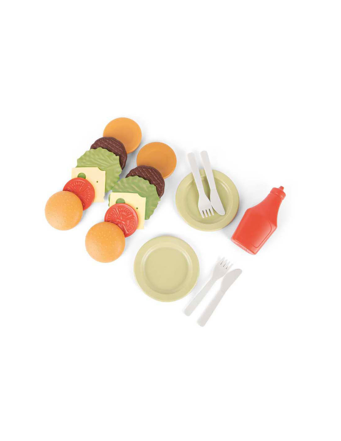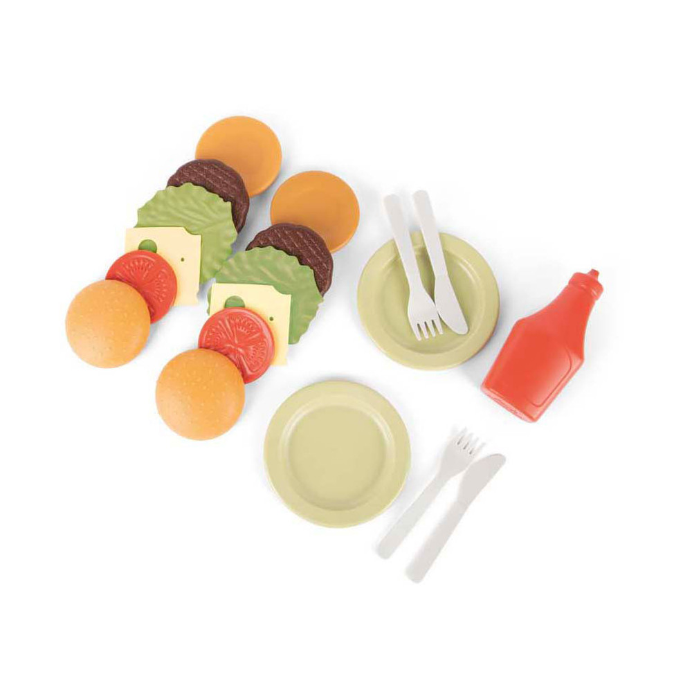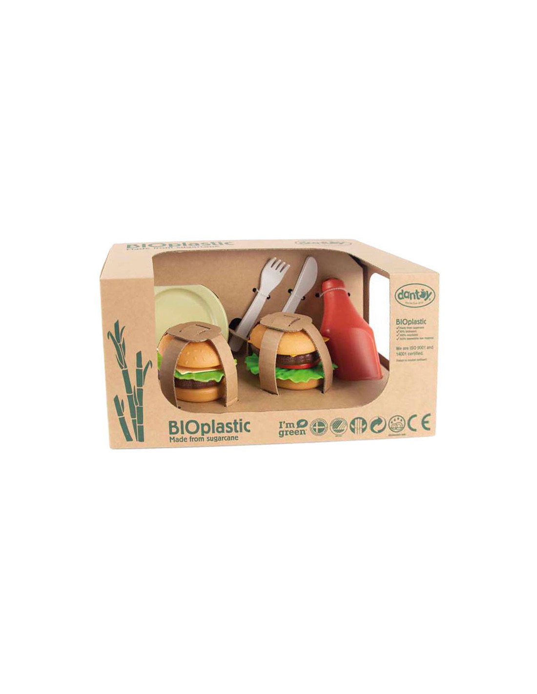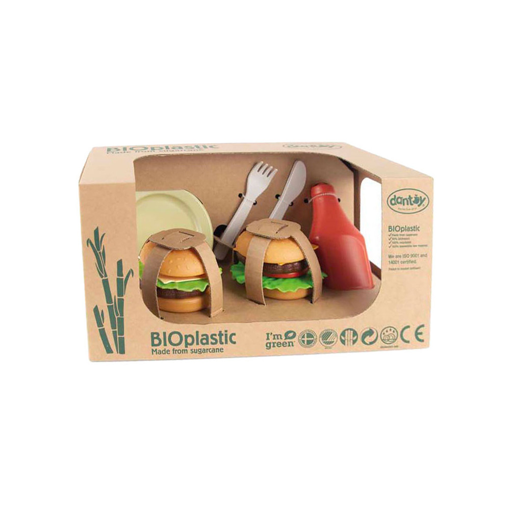 Dantoy hamburgerset, 19-delig, gemaakt van BIOplastic (suikerriet). Lichtgewicht, stevig, bevat geen schadelijke stoffen, geschikt voor kinderen vanaf 2 jaar.