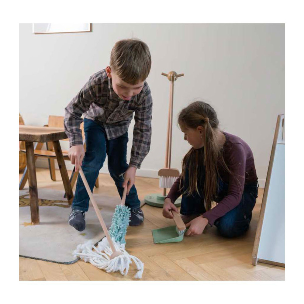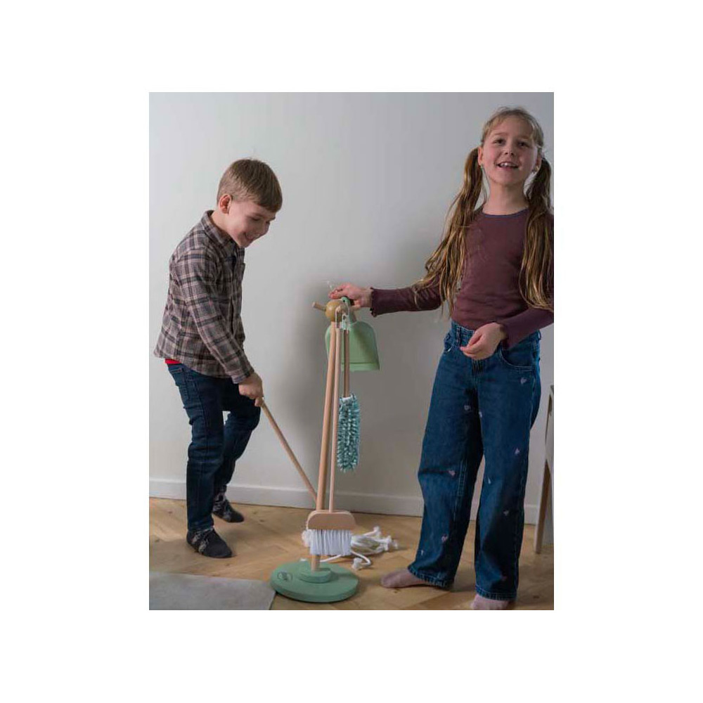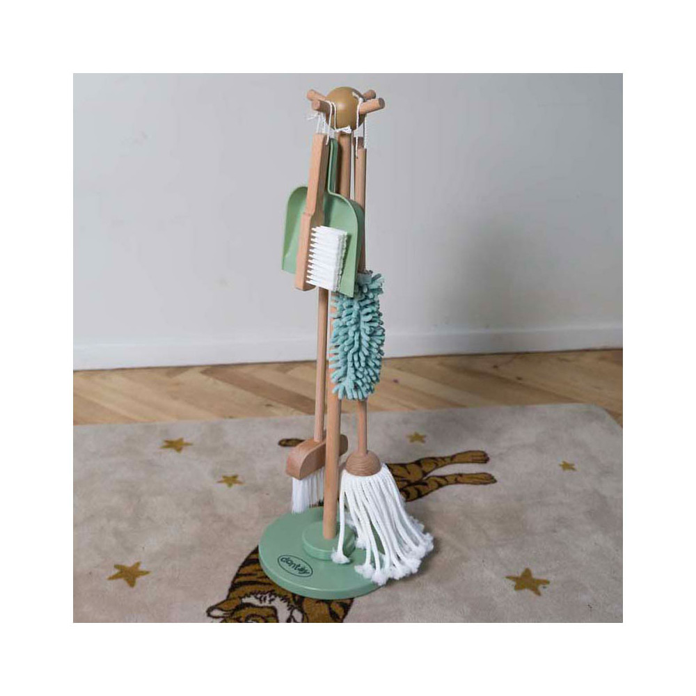 Dantoy houten schoonmaakset, 6-delig, met bezem, dweil, stofblik en accessoires. Gemaakt van hout en kunststof, vrij van PVC en ftalaten, geschikt voor kinderen vanaf 2 jaar.