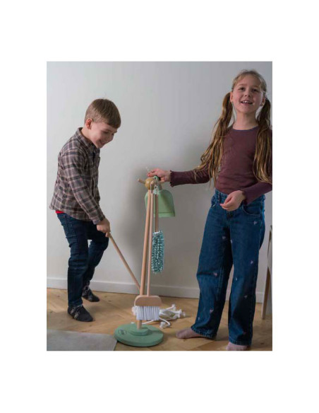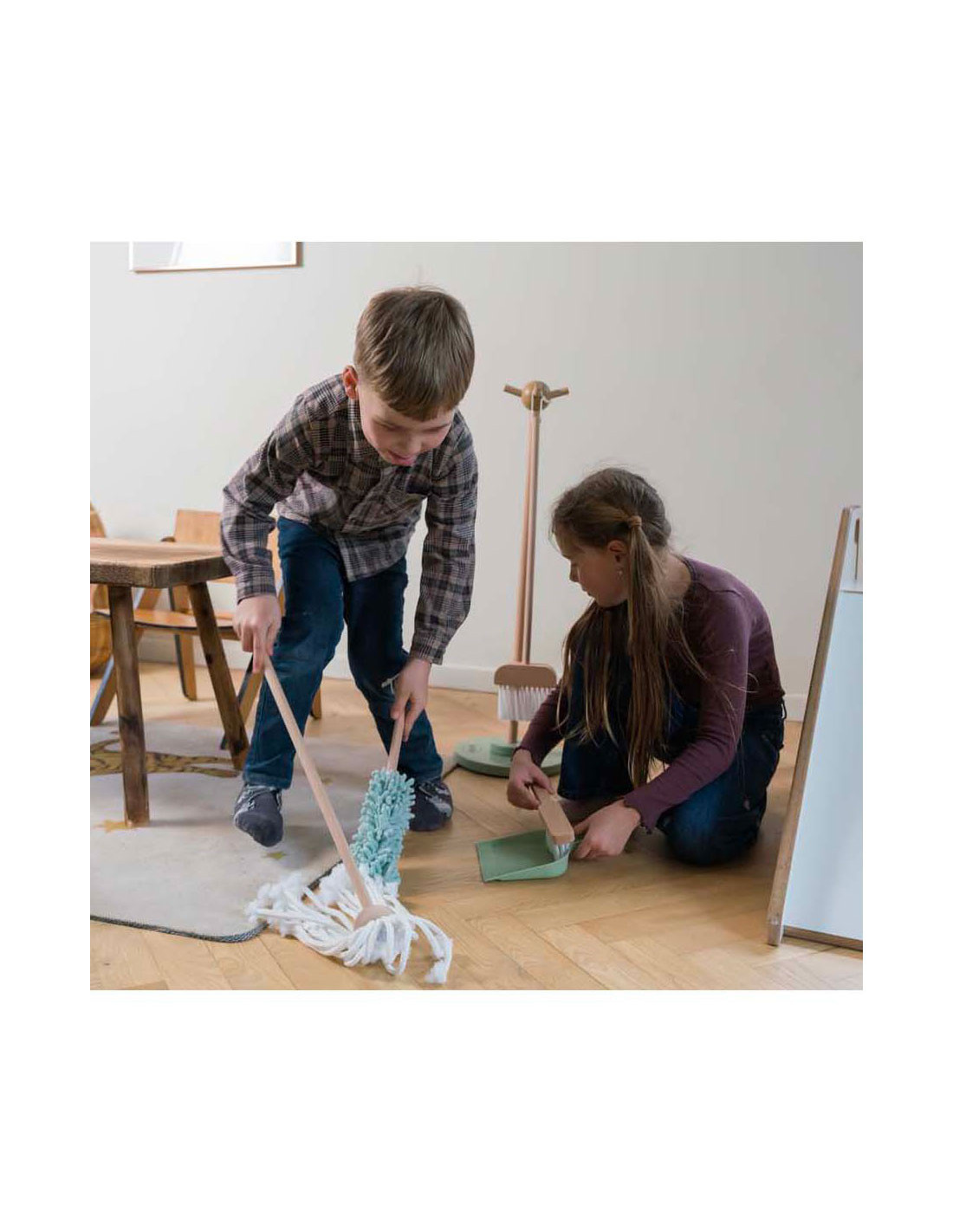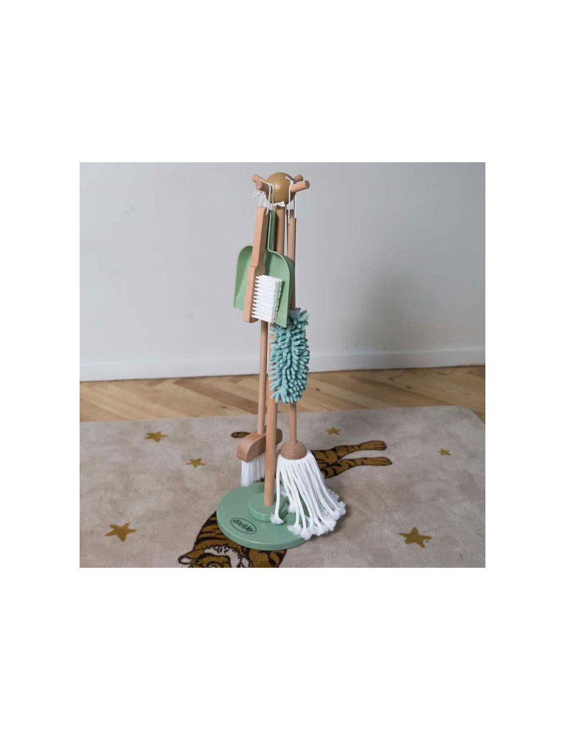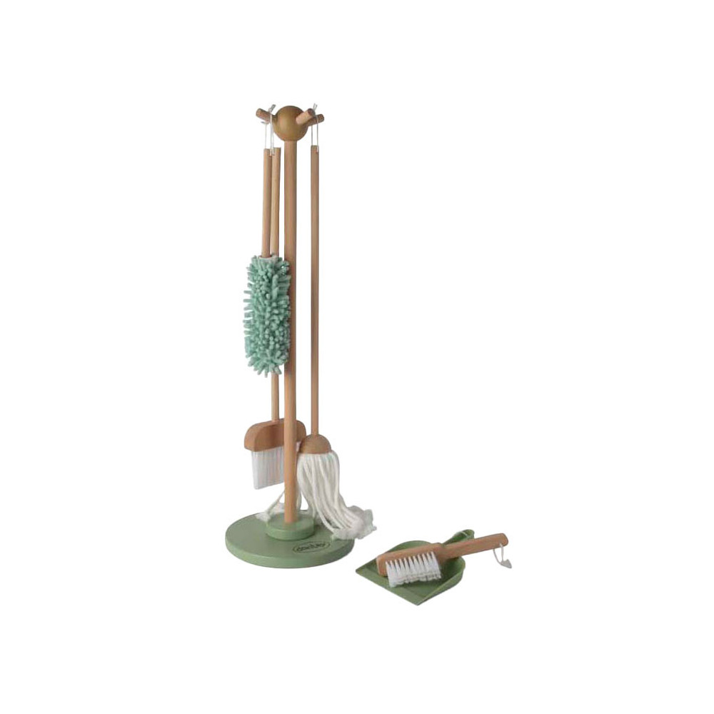 Dantoy houten schoonmaakset, 6-delig, met bezem, dweil, stofblik en accessoires. Gemaakt van hout en kunststof, vrij van PVC en ftalaten, geschikt voor kinderen vanaf 2 jaar.