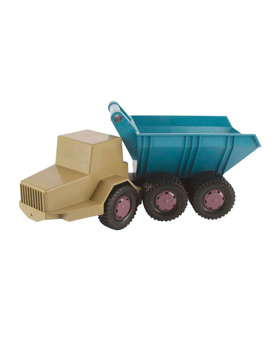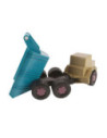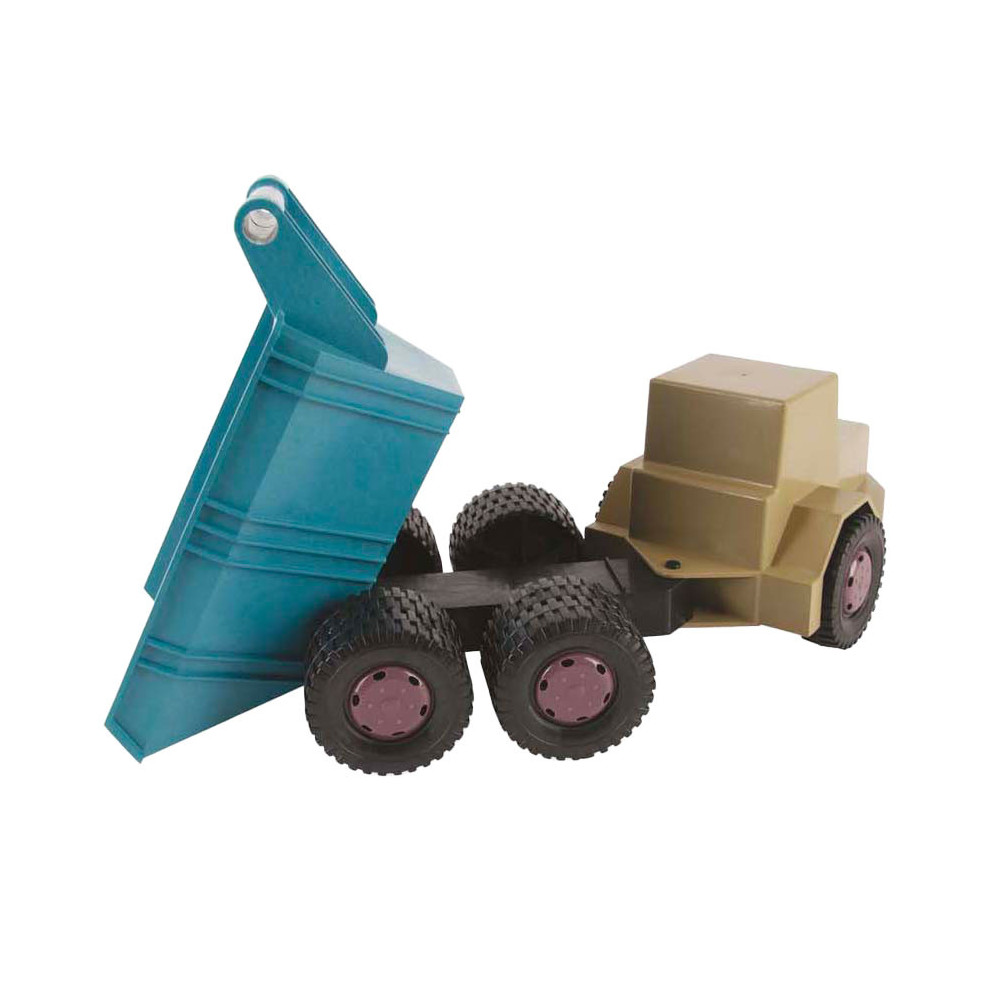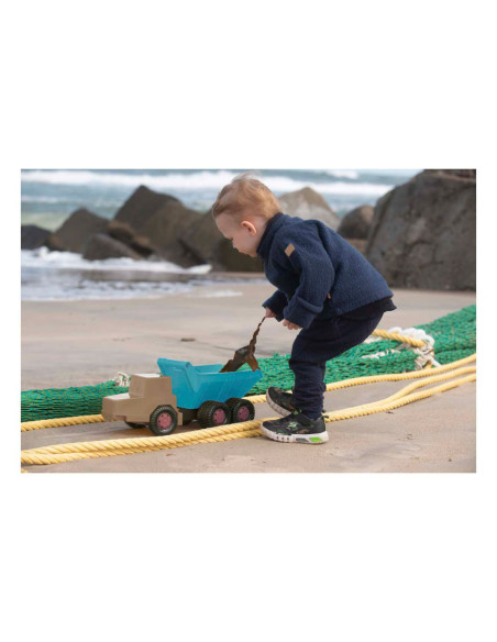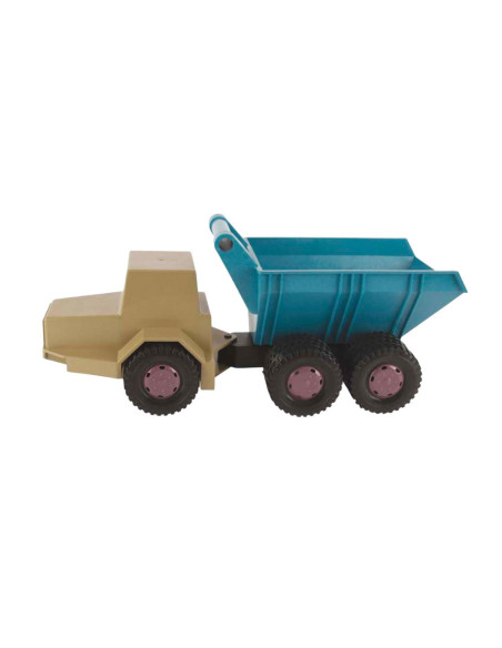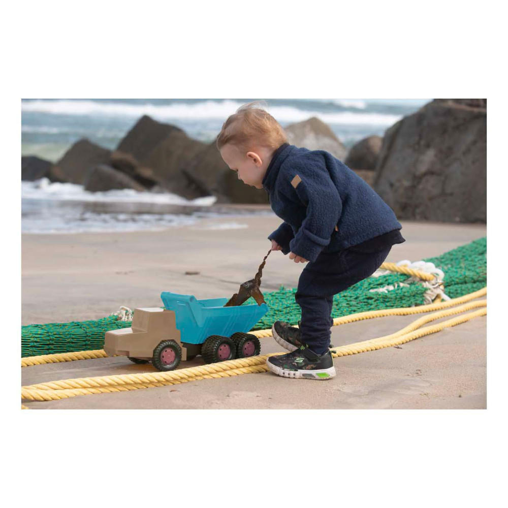 Dantoy kiepwagen van ca. 46 cm lang in blauw en beige. Stevig, lichtgewicht en vrij van PVC en ftalaten, geschikt voor kinderen vanaf 2 jaar.
