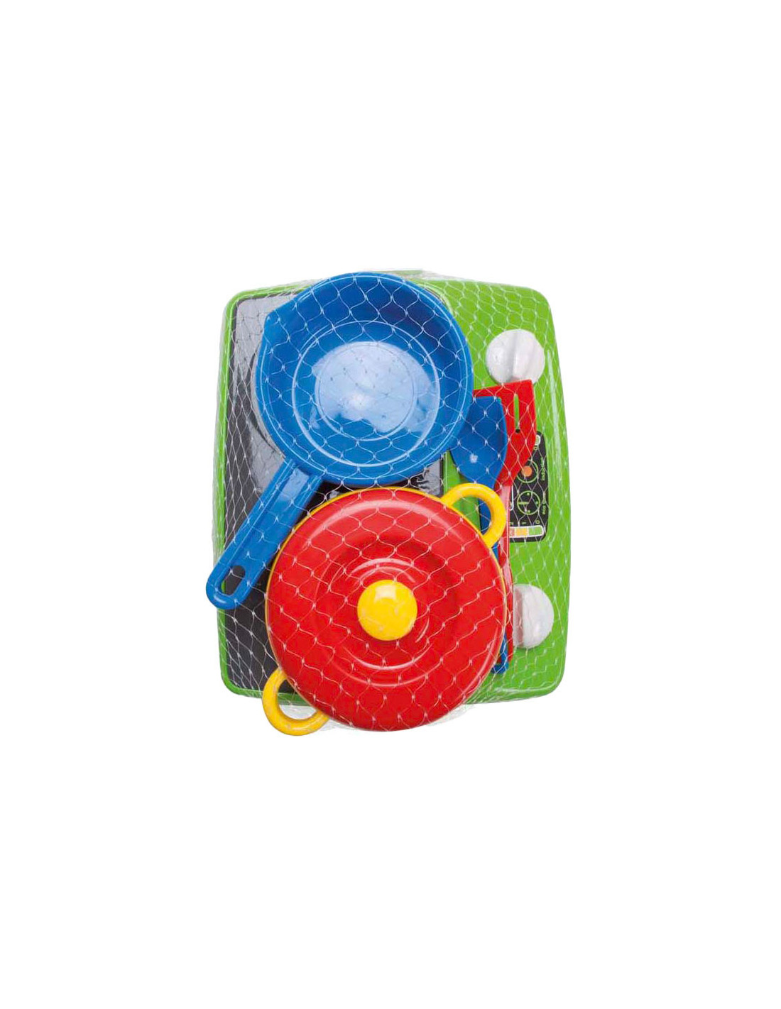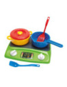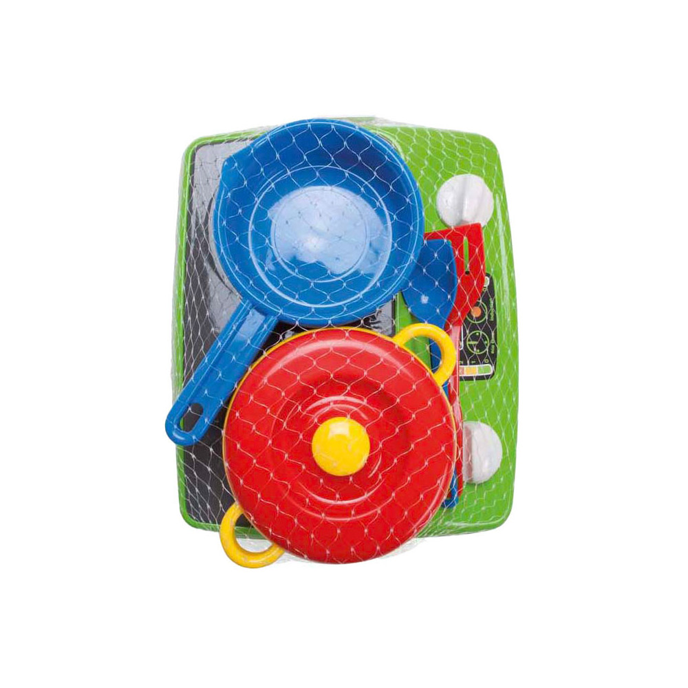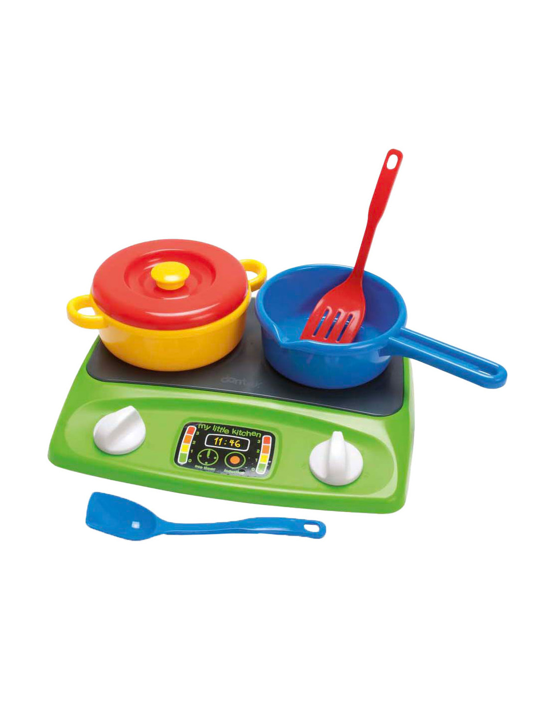 Dantoy kinderkookplaatset, 6-delig, met kleurrijke kookplaat en accessoires. Lichtgewicht, stevig en vrij van PVC en ftalaten, geschikt voor kinderen vanaf 2 jaar.