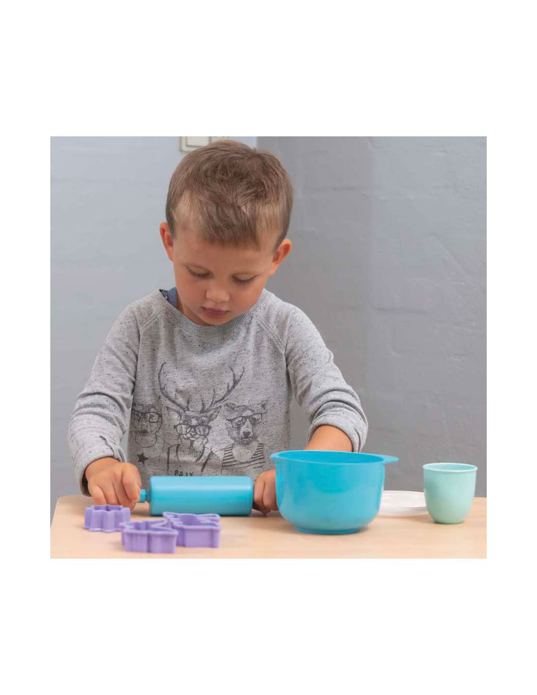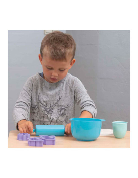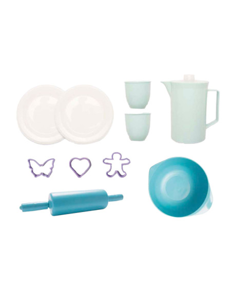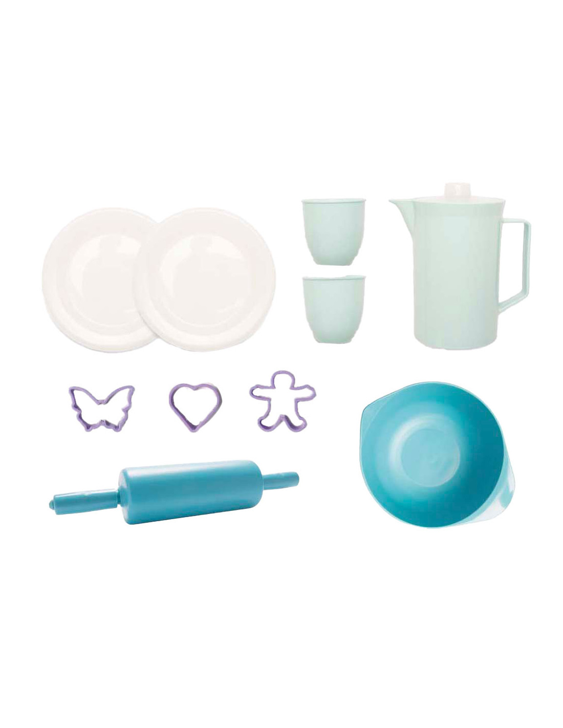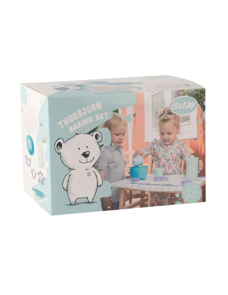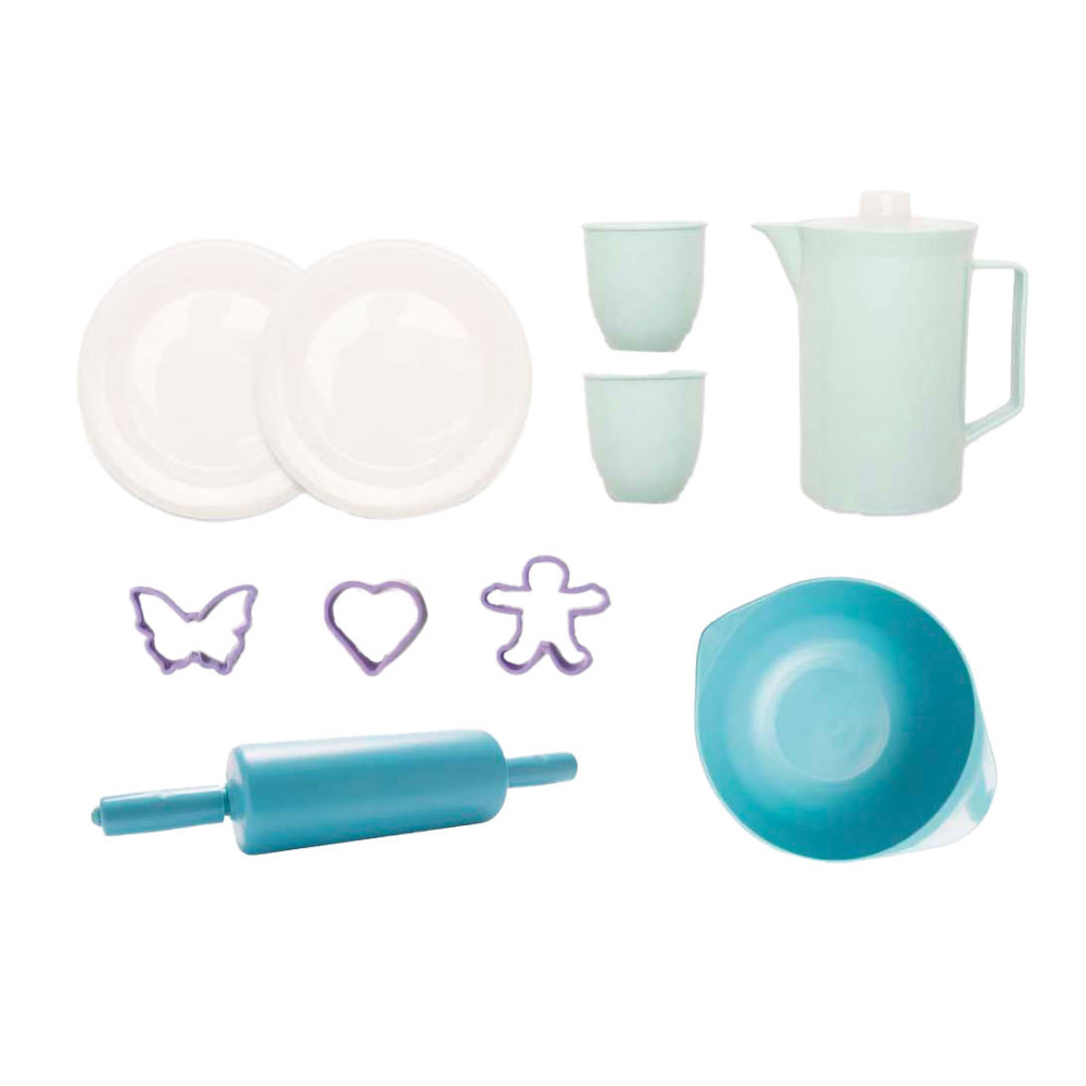 Dantoy koffie- en bakset met kleurrijke accessoires zoals kopjes, koffiepot en keukengerei. Lichtgewicht, stevig en veilig in gebruik, geschikt voor kinderen vanaf 2 jaar.