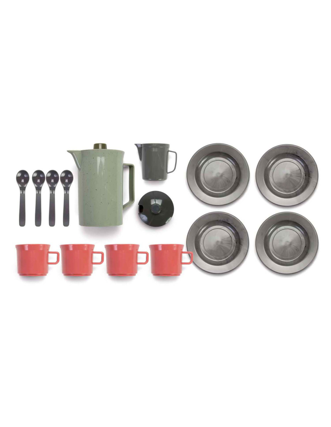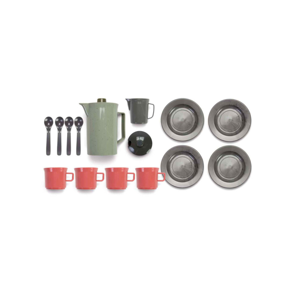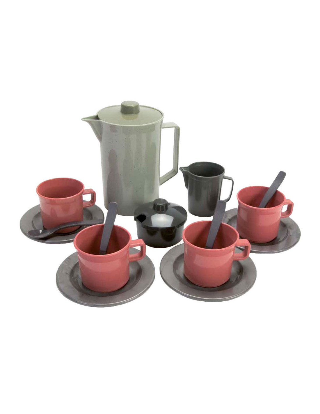 Dantoy koffieset, 17-delig, bestaande uit kleurrijke kopjes, schoteltjes en accessoires. Lichtgewicht, stevig en vrij van PVC en ftalaten, geschikt voor kinderen vanaf 2 jaar.