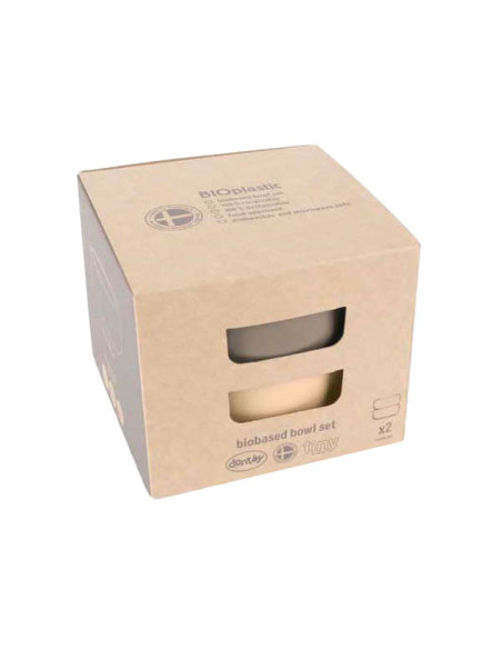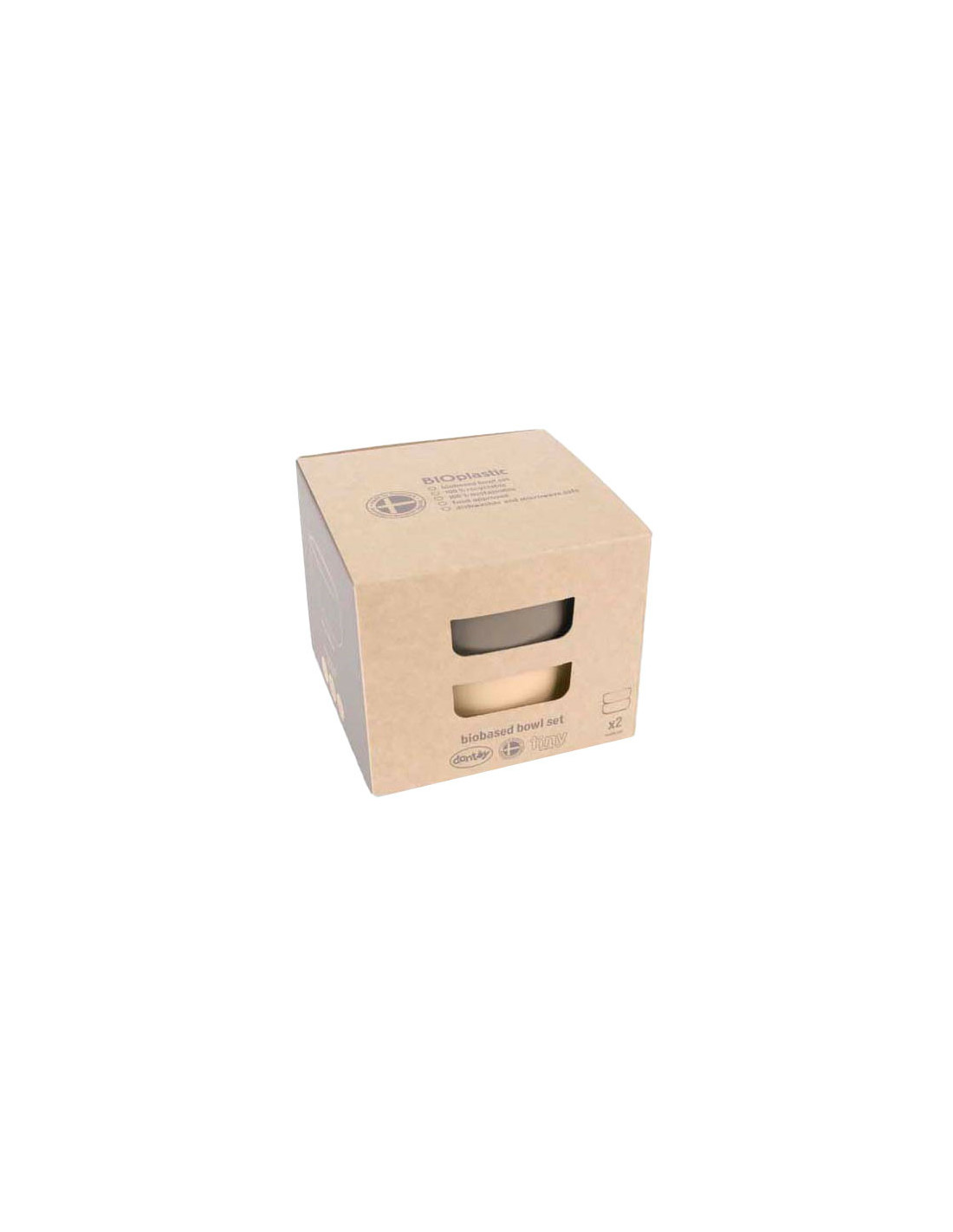 Dantoy kommenset in beige en mokka, 2-delig. Gemaakt van BIOplastic (suikerriet), ca. 11 × 4,5 cm. Vanaf 6 maanden, voedselveilig en geschikt voor de vaatwasser.