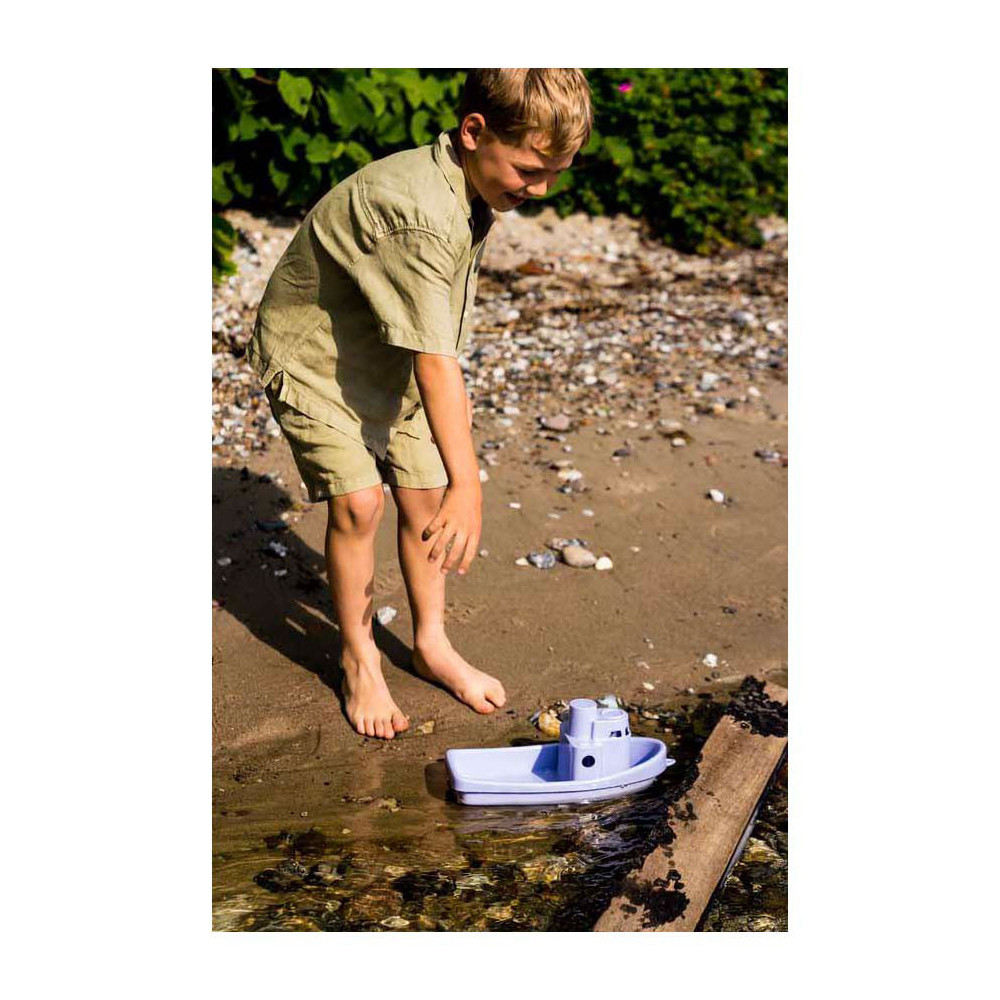 Dantoy pastel speelgoedboot van ca. 33 cm lang, gemaakt van stevig kunststof. Lichtgewicht, drijvend en vrij van PVC en ftalaten, geschikt voor kinderen vanaf 2 jaar.