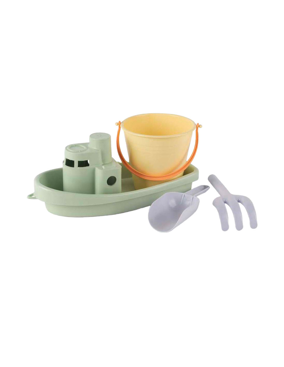 Dantoy pastel boot- en zandspeelset, 4-delig, bestaande uit bootje, schepje en zandvormpjes. Lichtgewicht, stevig en vrij van PVC en ftalaten, geschikt voor kinderen vanaf 2 jaar.