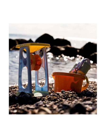 Dantoy zand-/watermolen van ca. 30 cm hoog in zachte pastelkleuren. Stevig, lichtgewicht en vrij van PVC en ftalaten, geschikt voor kinderen vanaf 2 jaar.