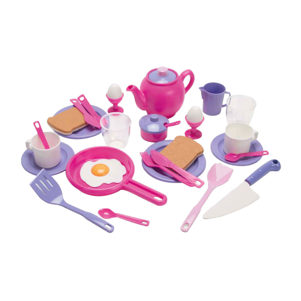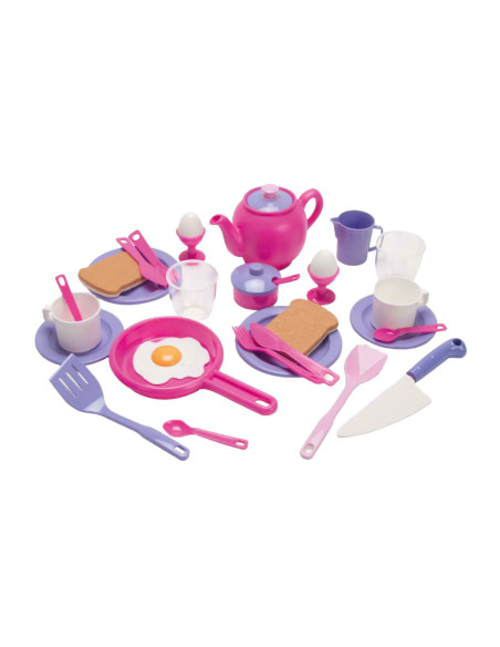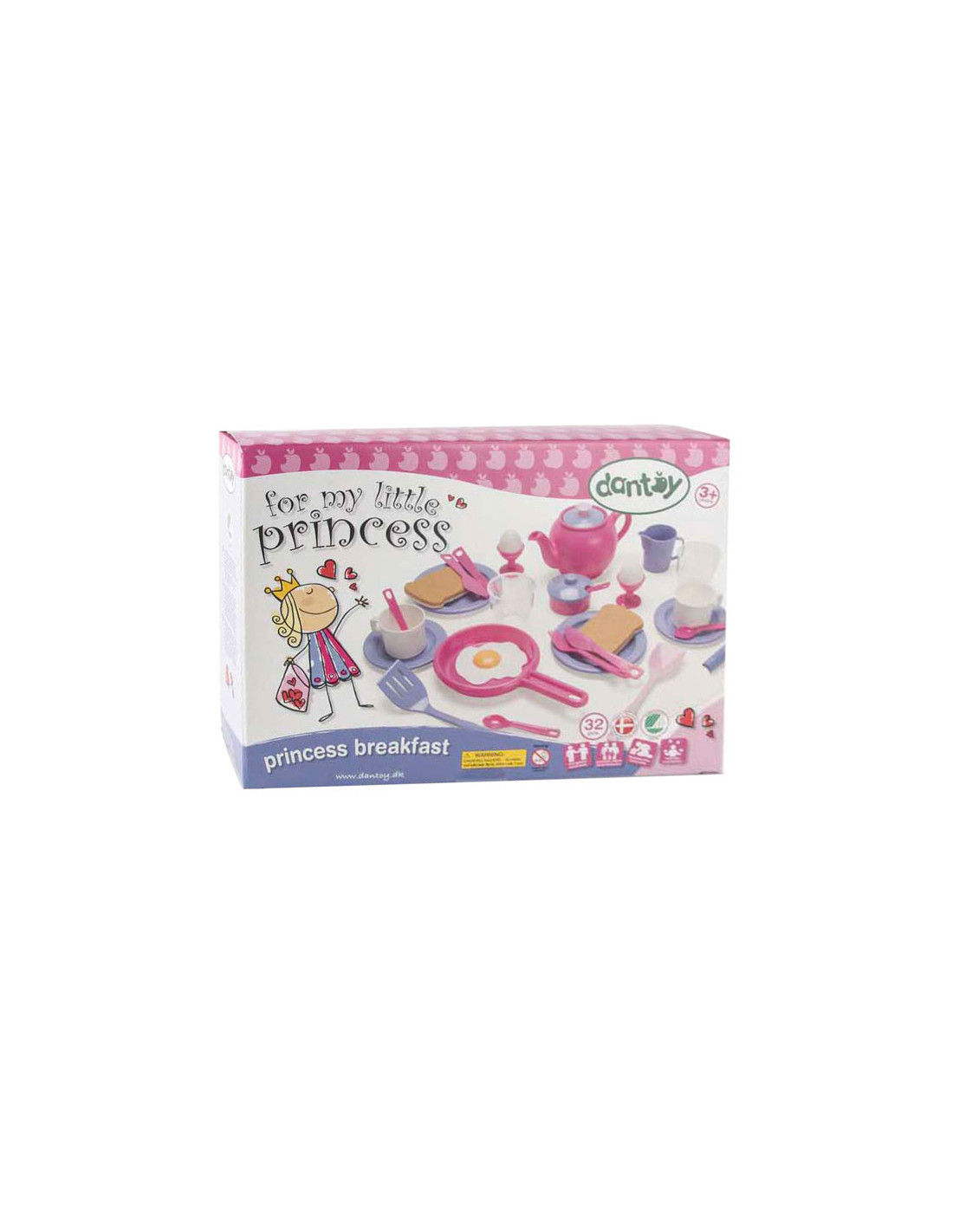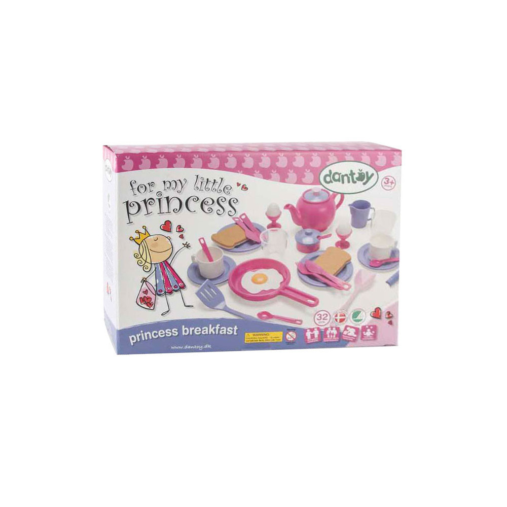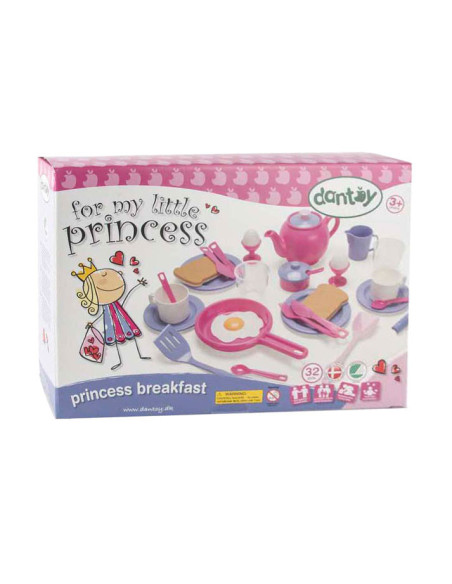 Dantoy prinsessen serviesset, 32-delig, met kleurrijke borden, kopjes, bestek en schalen. Lichtgewicht, stevig en vrij van PVC en ftalaten, geschikt voor kinderen vanaf 2 jaar.