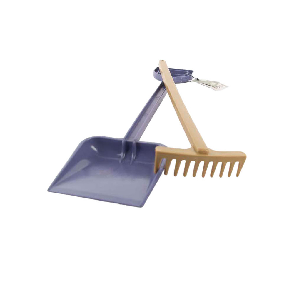 Dantoy set met schep (ca. 50 cm) en hark (ca. 42 cm), gemaakt van stevig, kleurrijk kunststof. Veilig en vrij van PVC en ftalaten, geschikt voor kinderen vanaf 2 jaar.